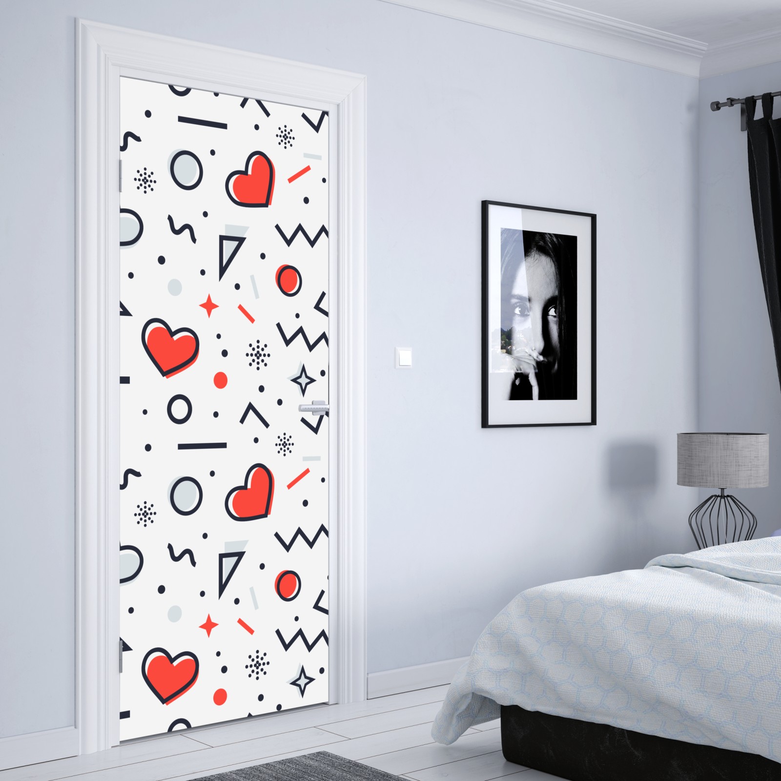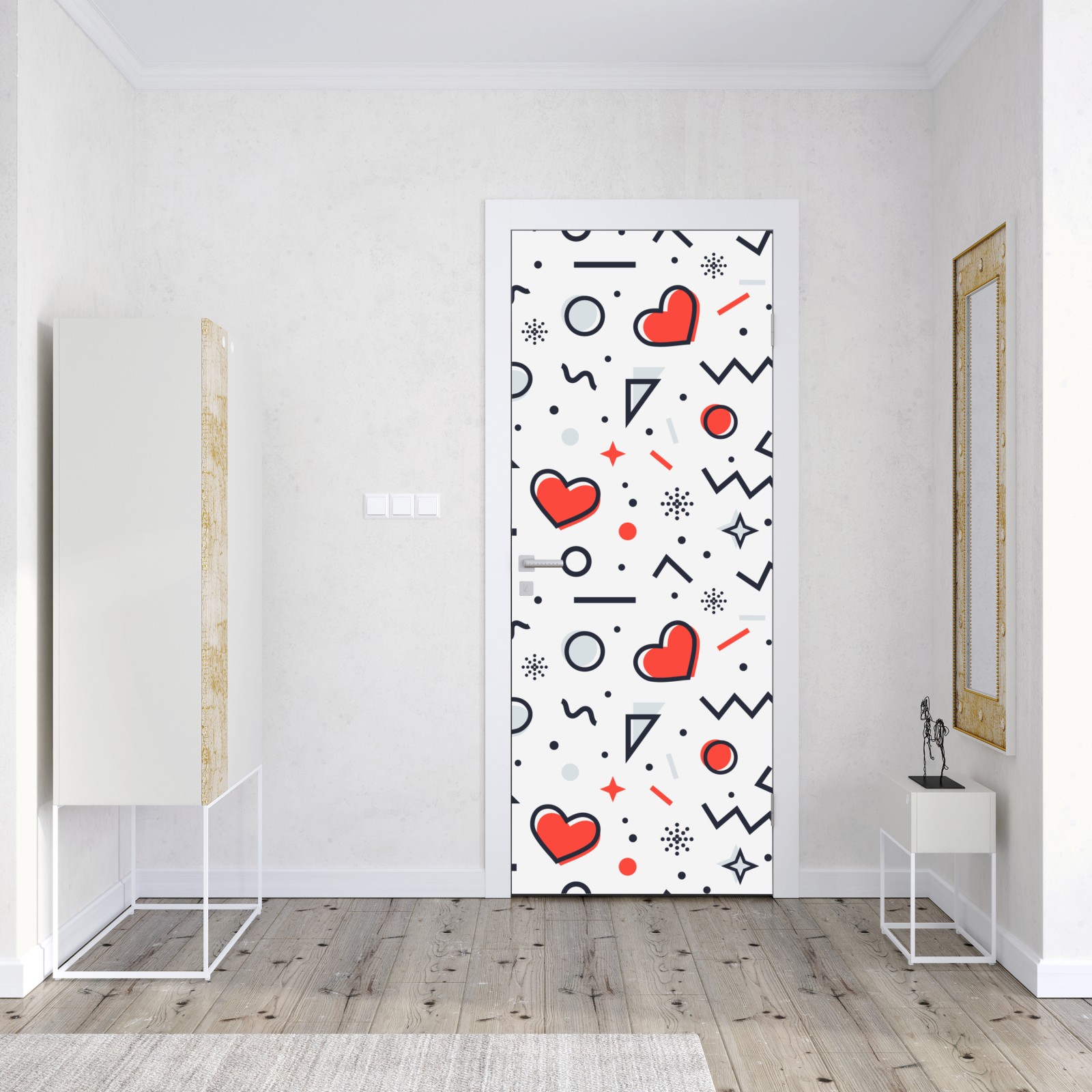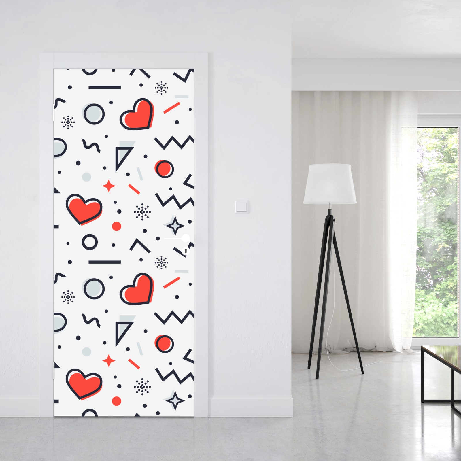 Türaufkleber verspieltes herzenmuster auf weißem hintergrund
