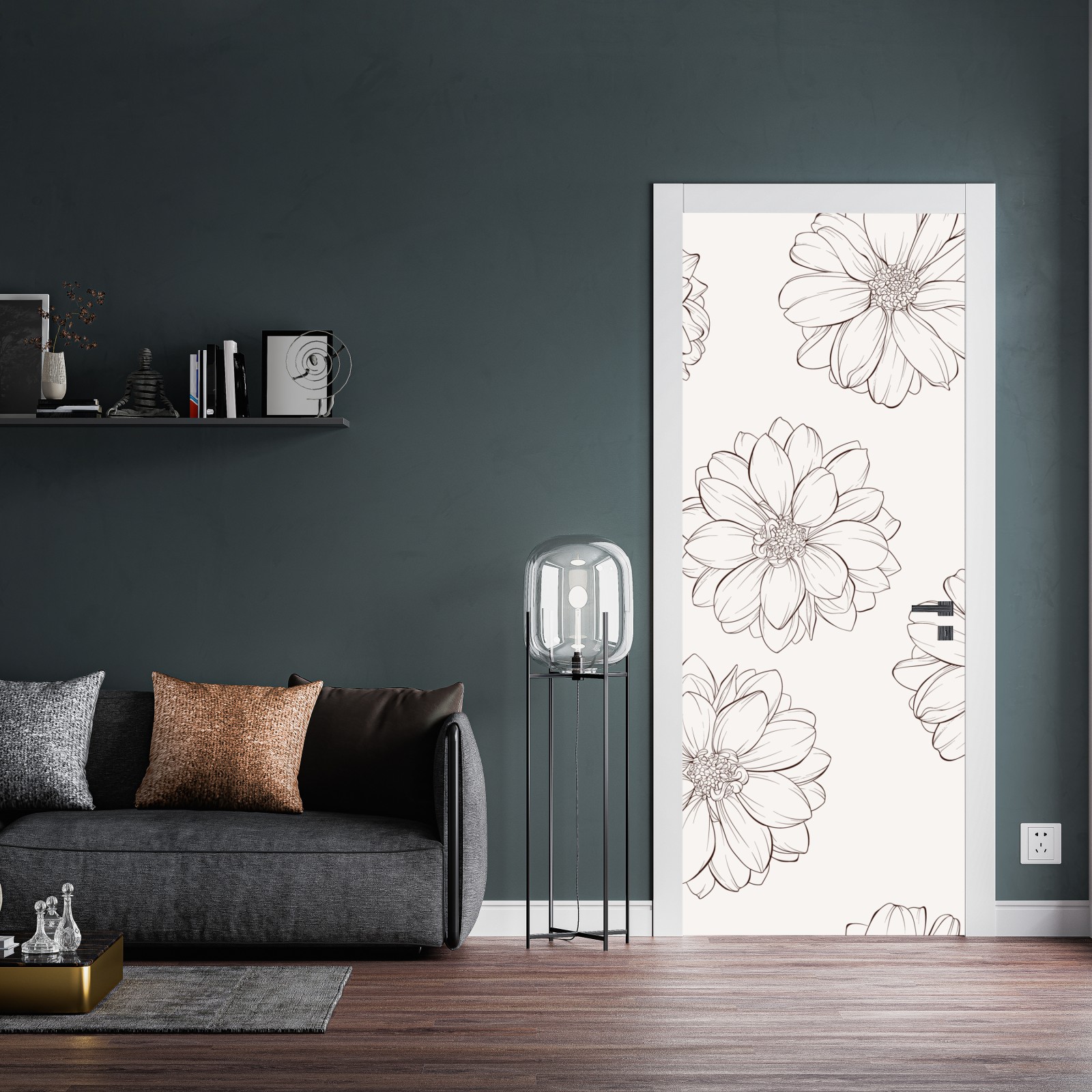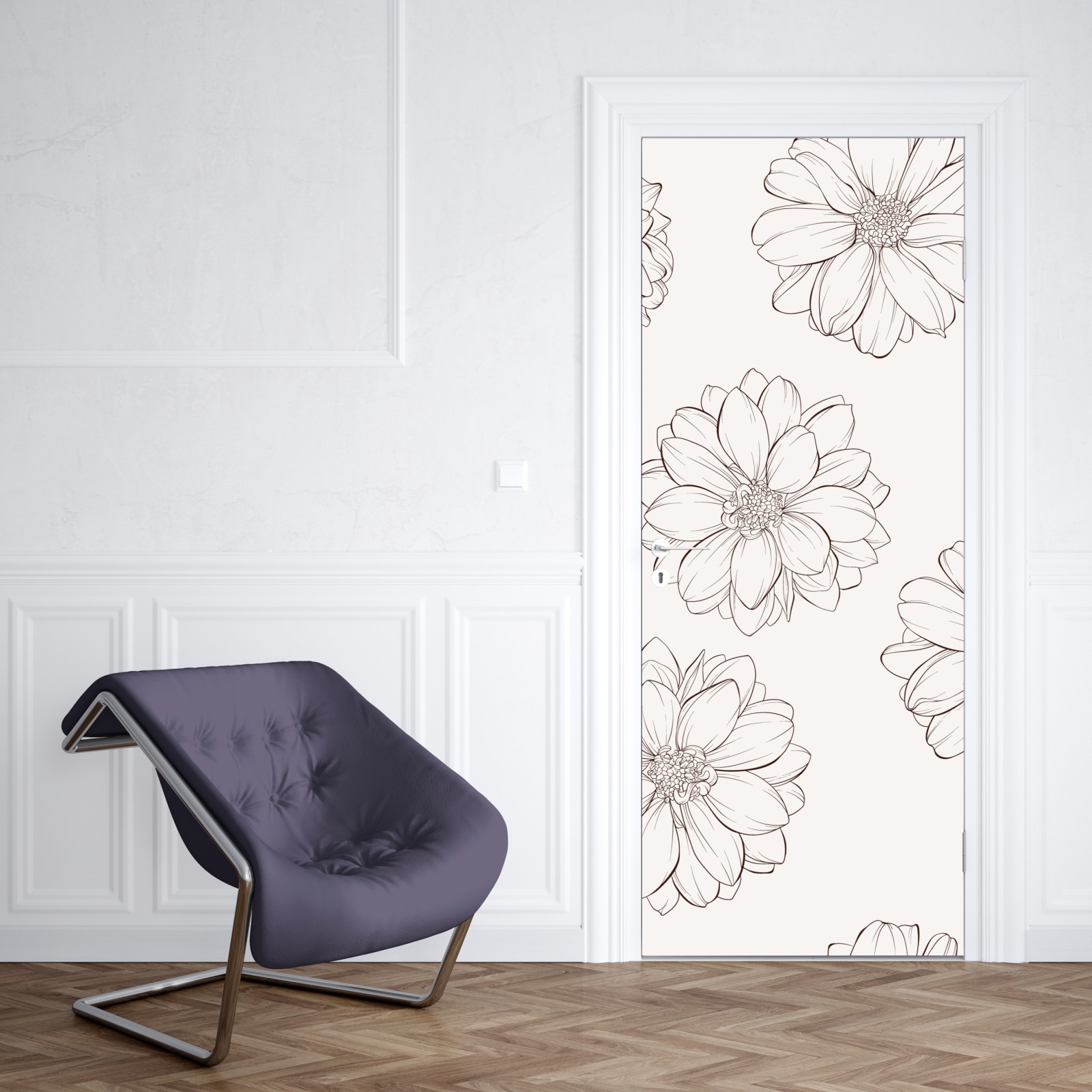 Türaufkleber zartes blumenmuster in beige