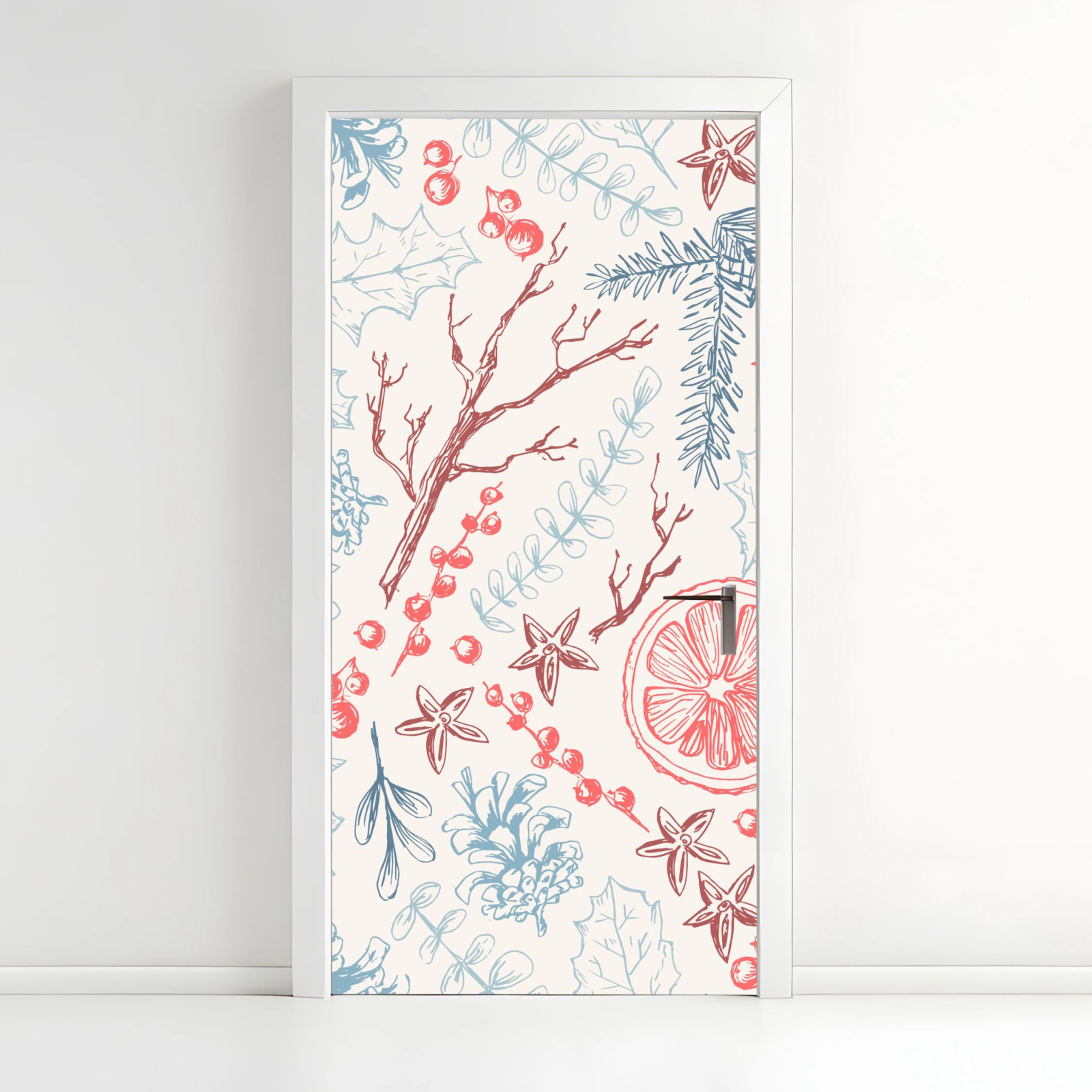 Türaufkleber Handgezeichnetes winterliches botanisches muster