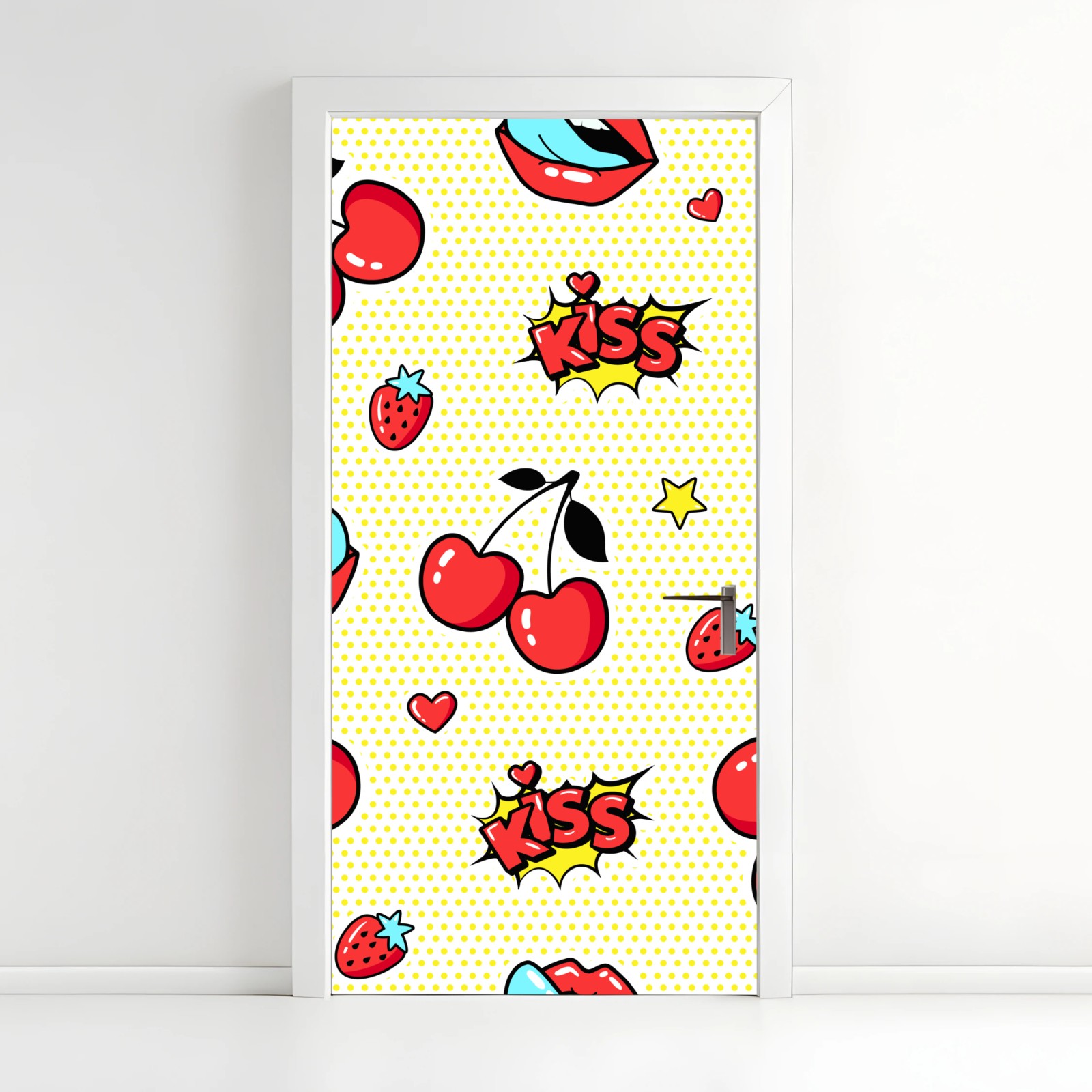 Türaufkleber Verspieltes pop-art kirschen-kuss muster