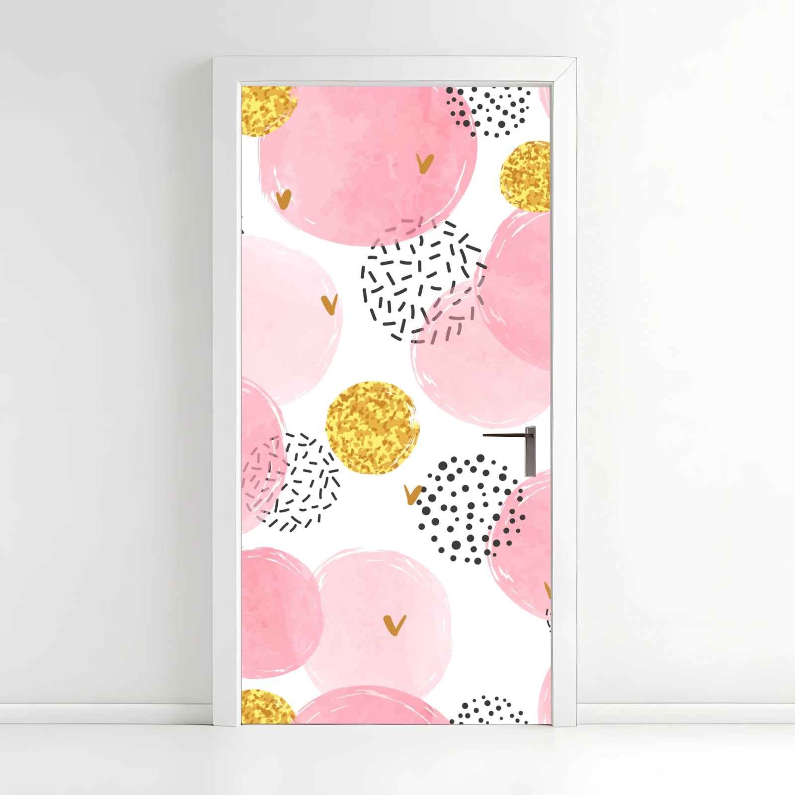 Türaufkleber Rosa aquarellkreise mit goldenen akzenten