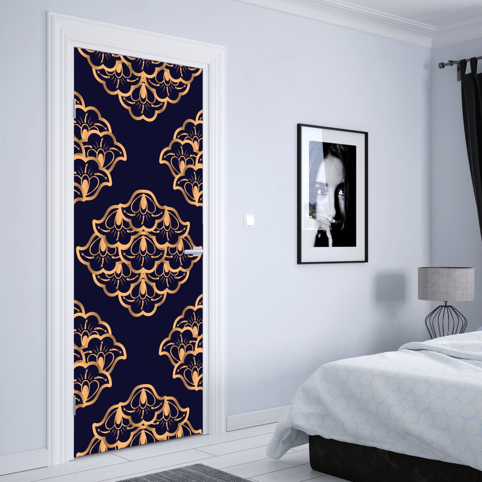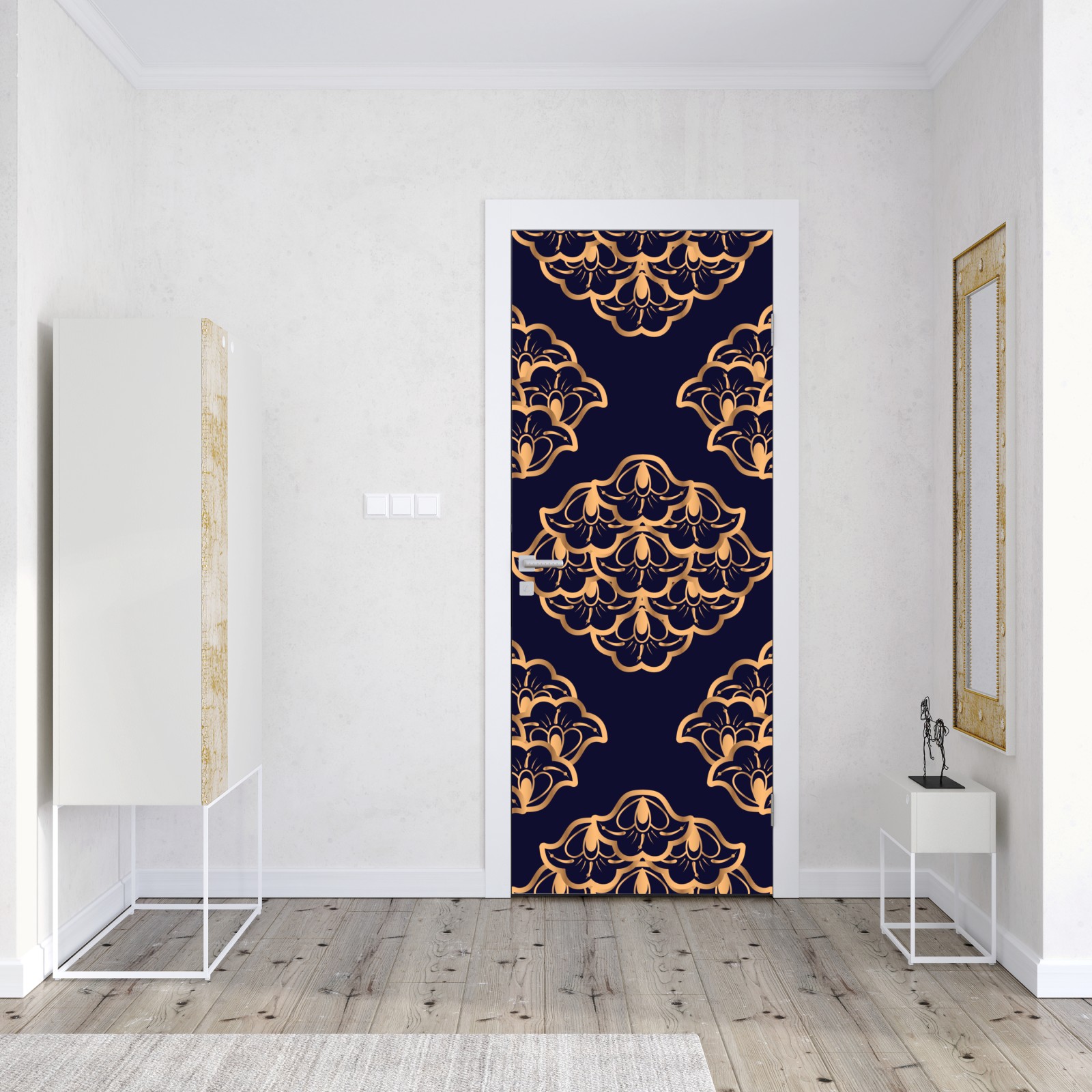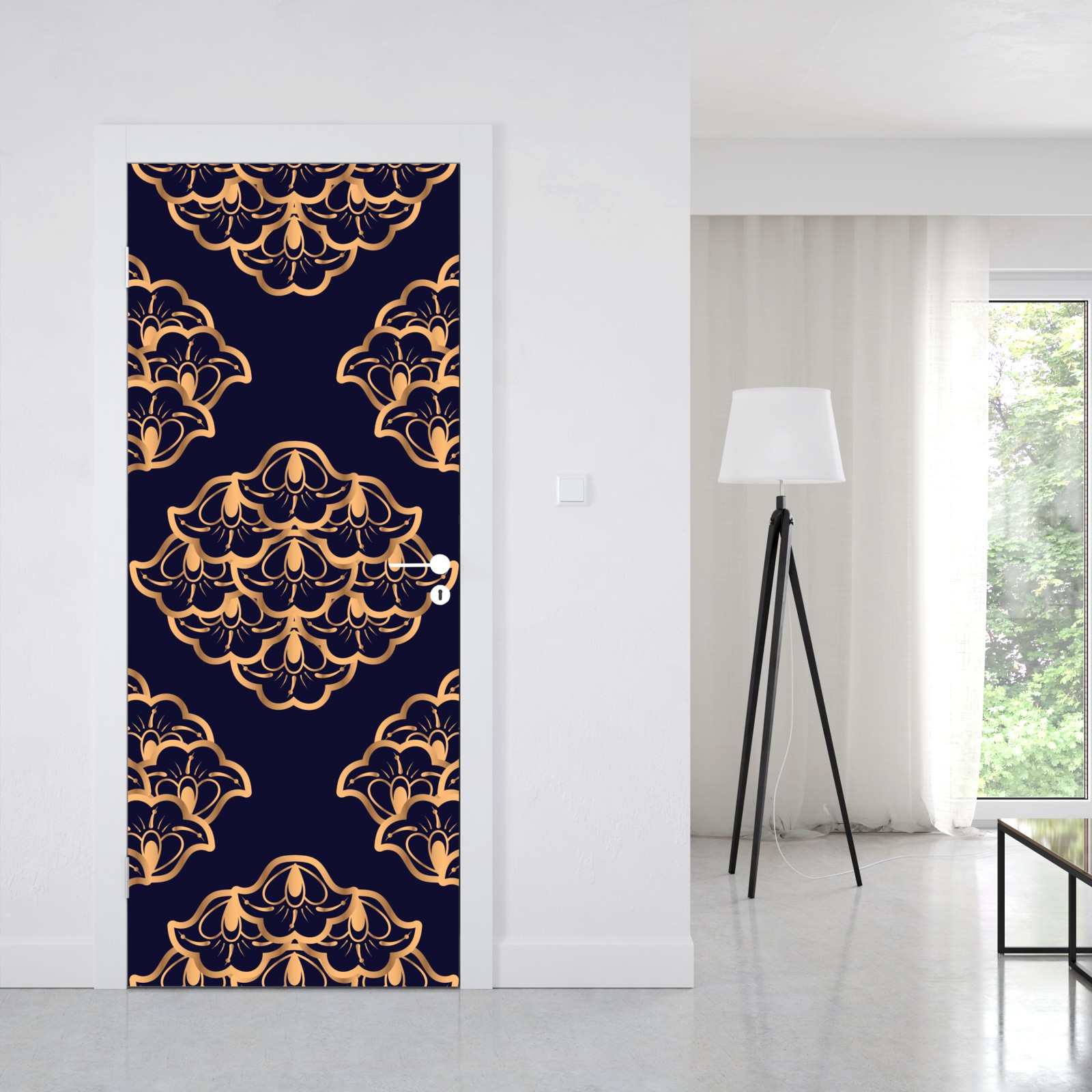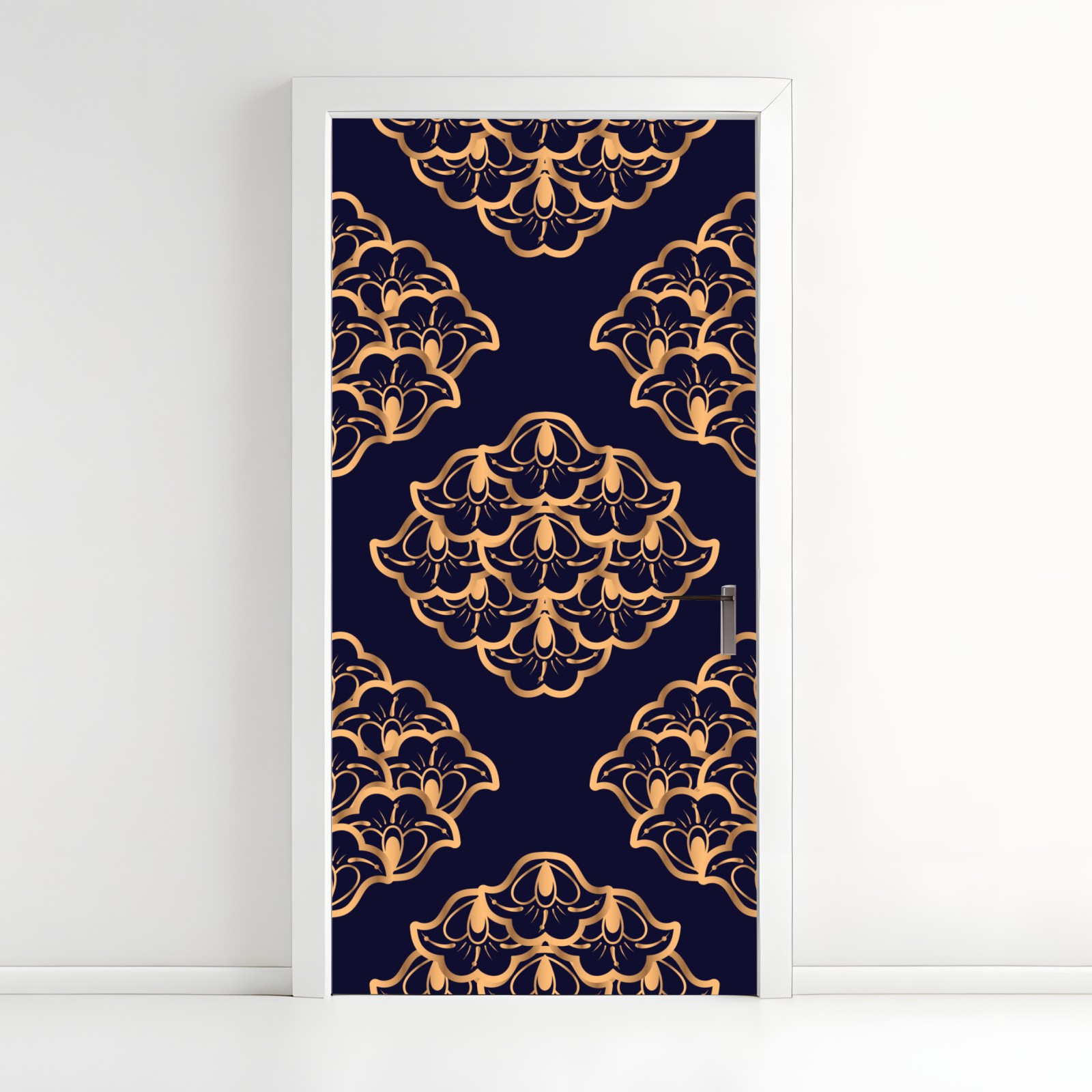 Türaufkleber goldenes damastmuster auf marineblauem hintergrund