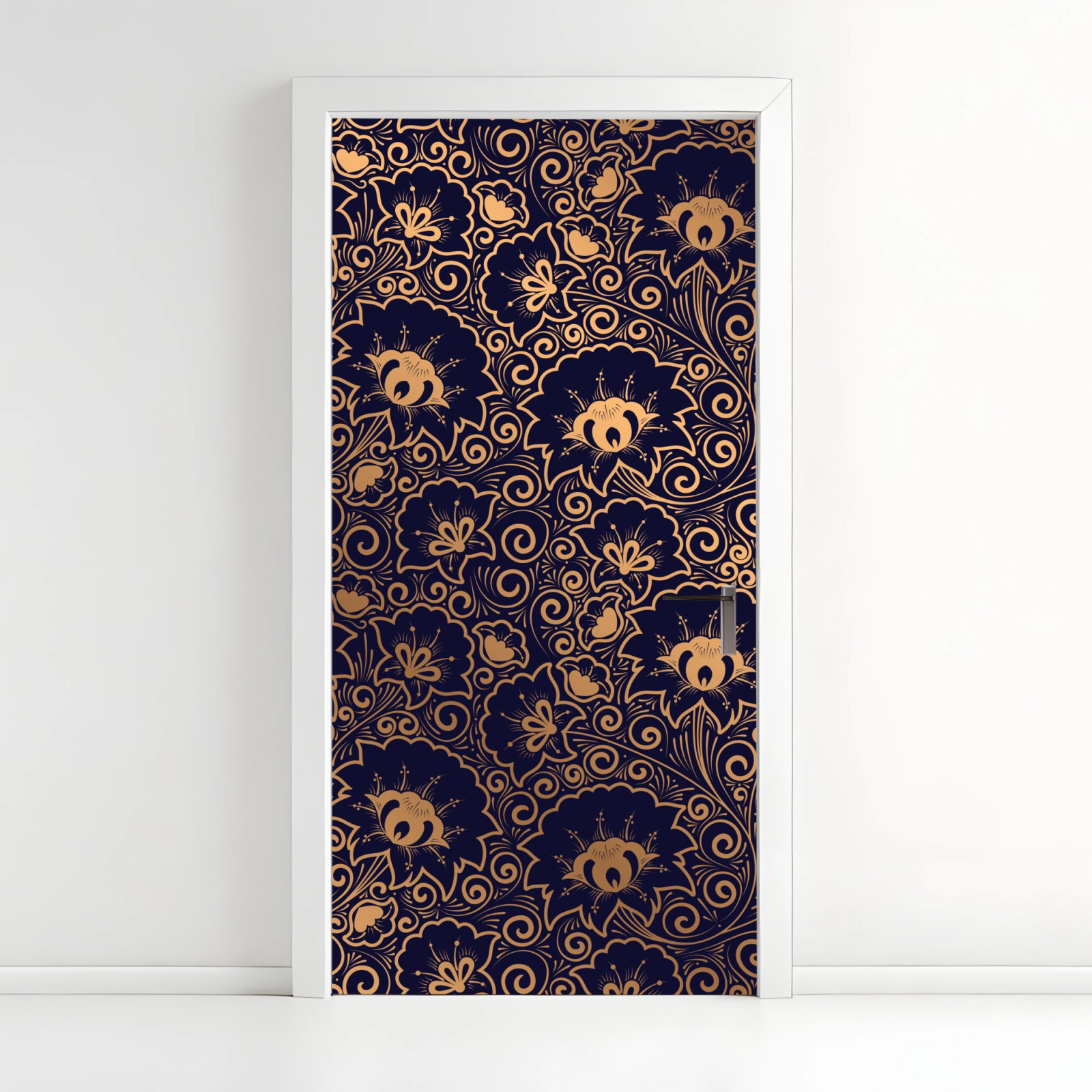 Türaufkleber Luxuriöses goldenes blumenmuster auf dunklem hintergrund