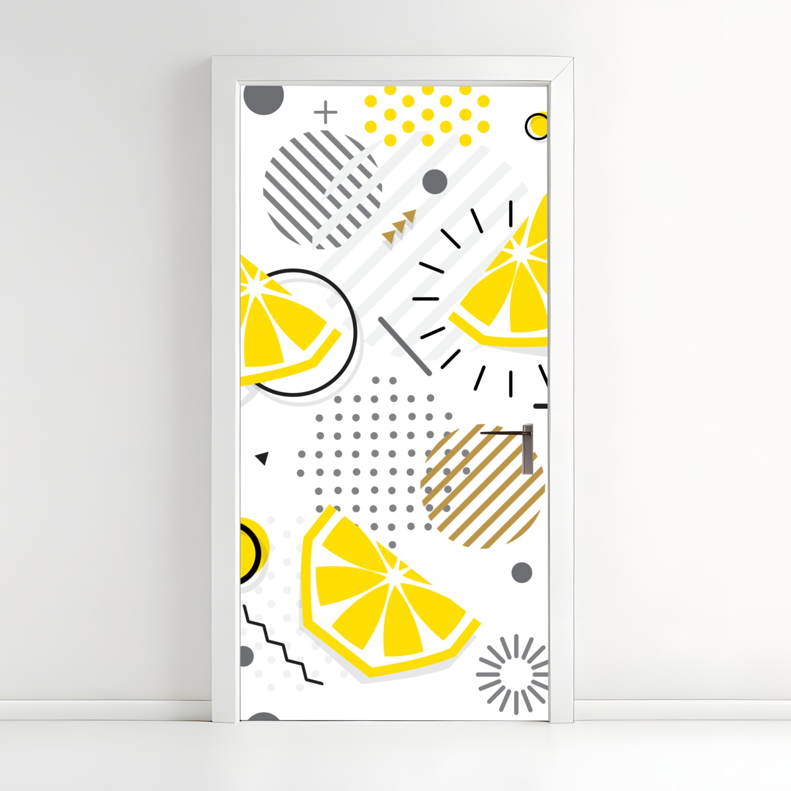 leuchtende zitronenscheiben und geometrische formen ergeben ein modernes, fröhliches design, das küche oder essbereich aufhellt.