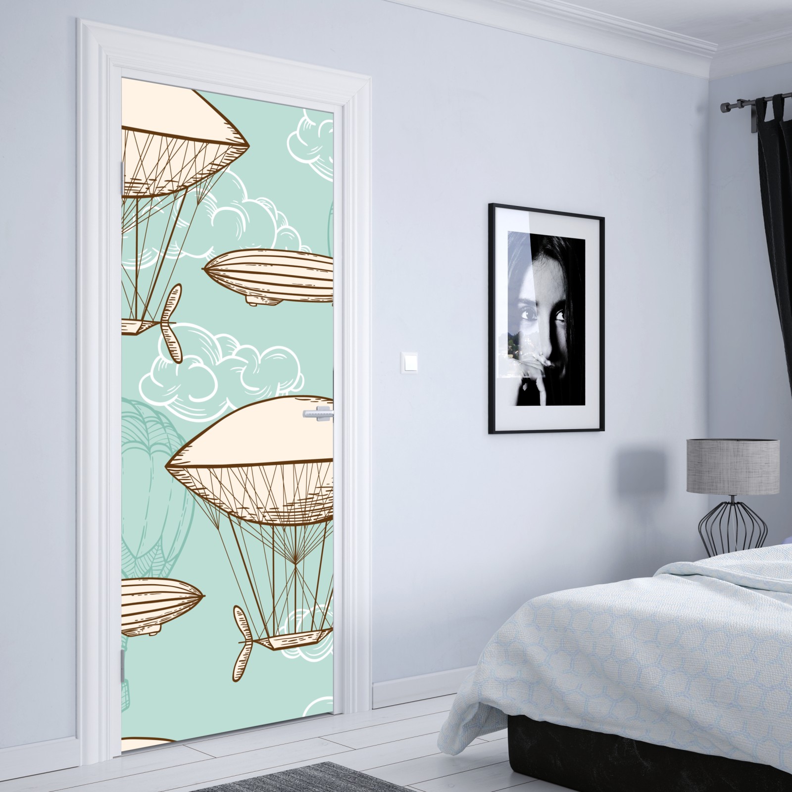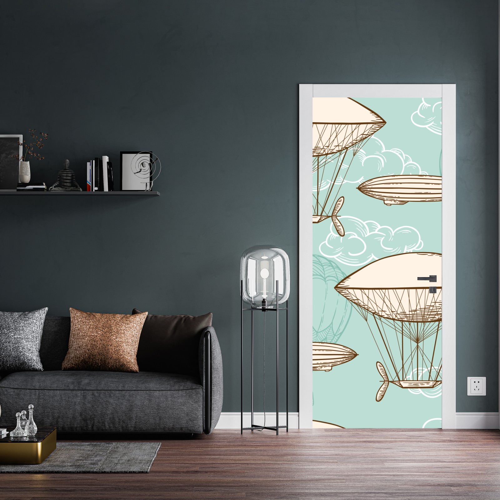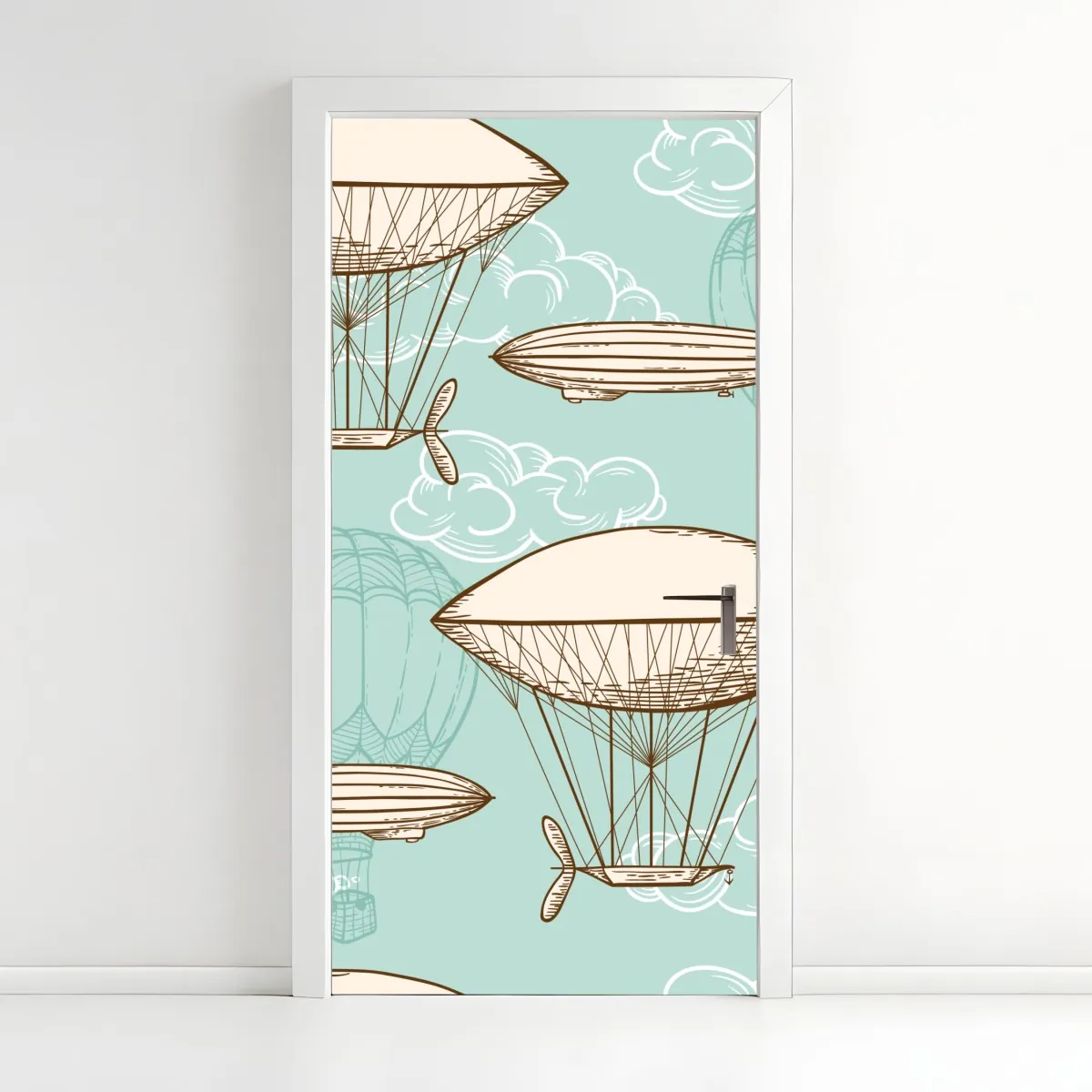 Türaufkleber vintage-motiv mit luftschiffen und ballons