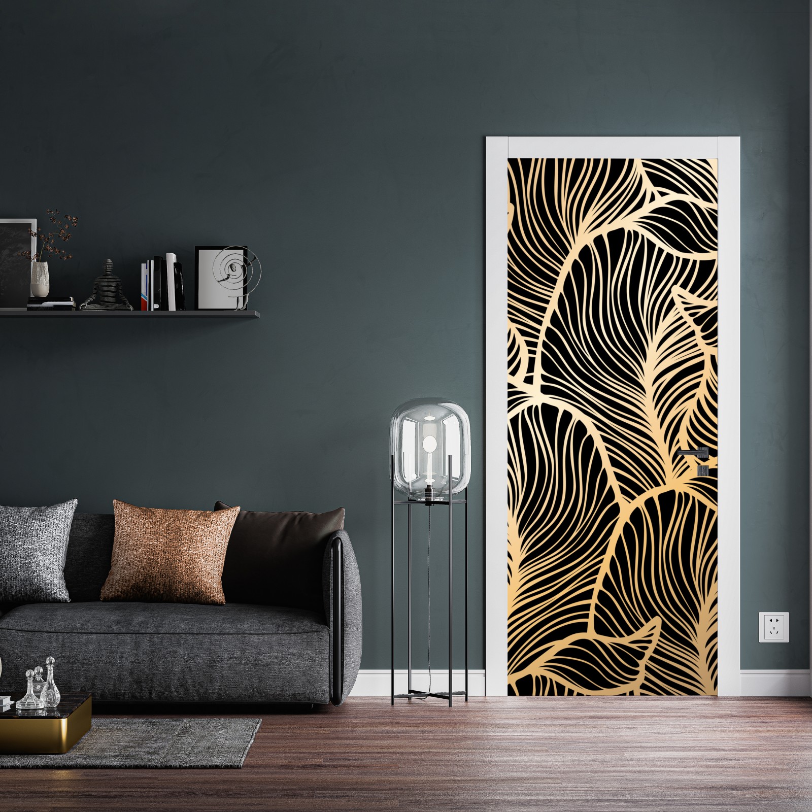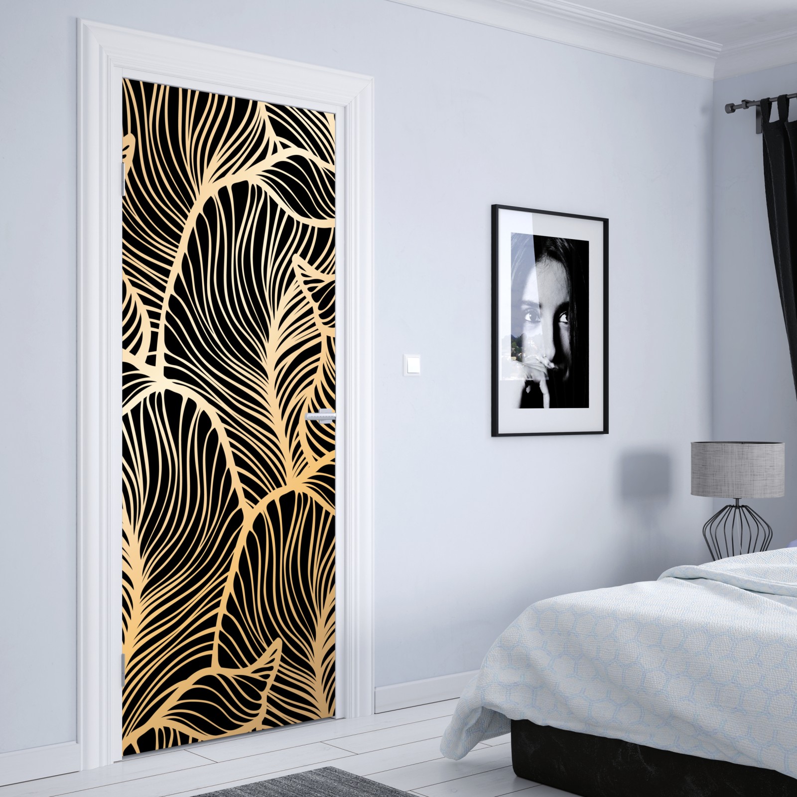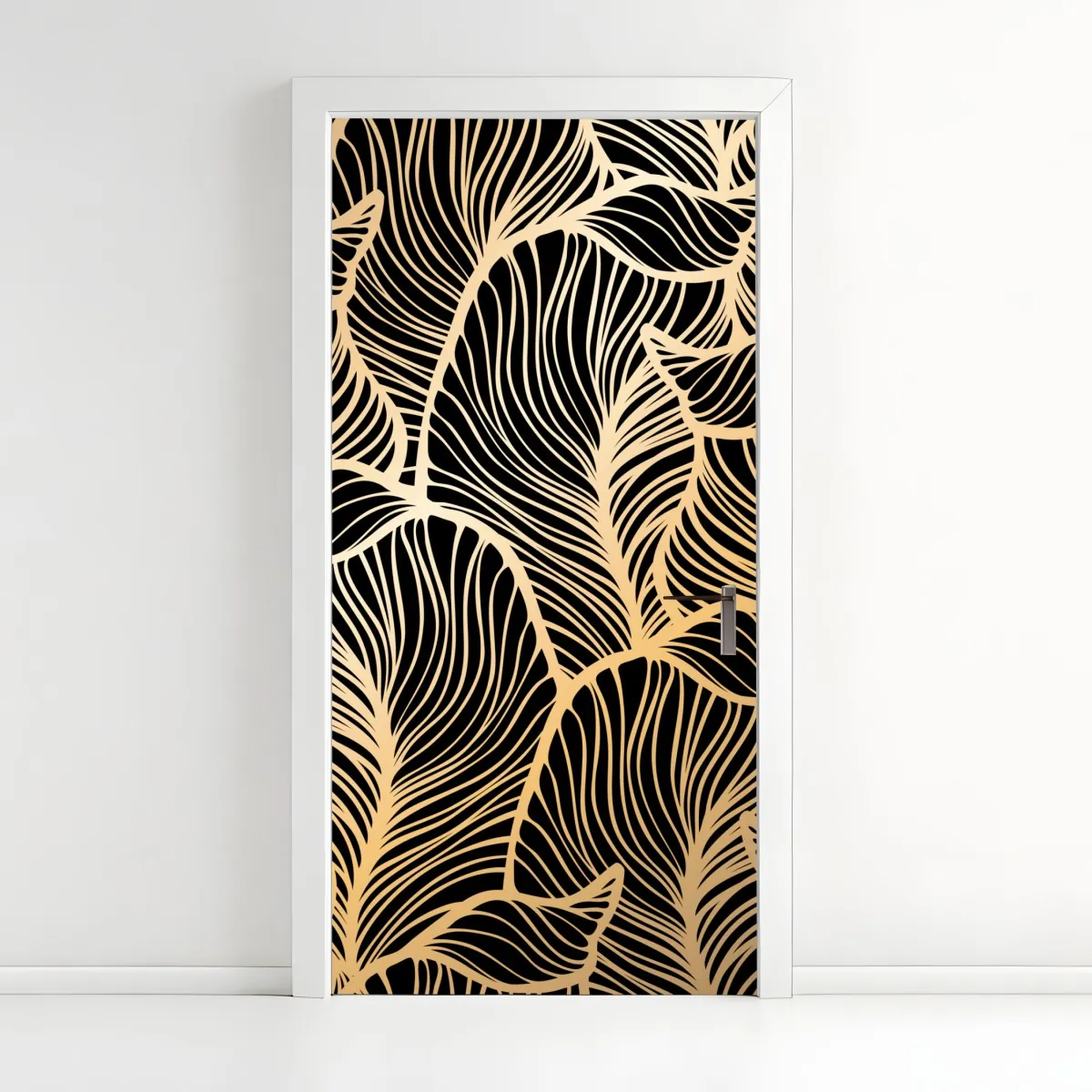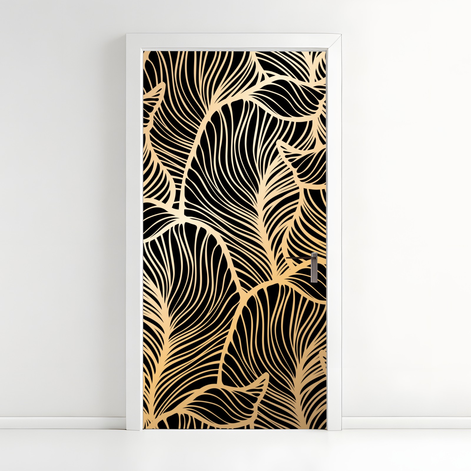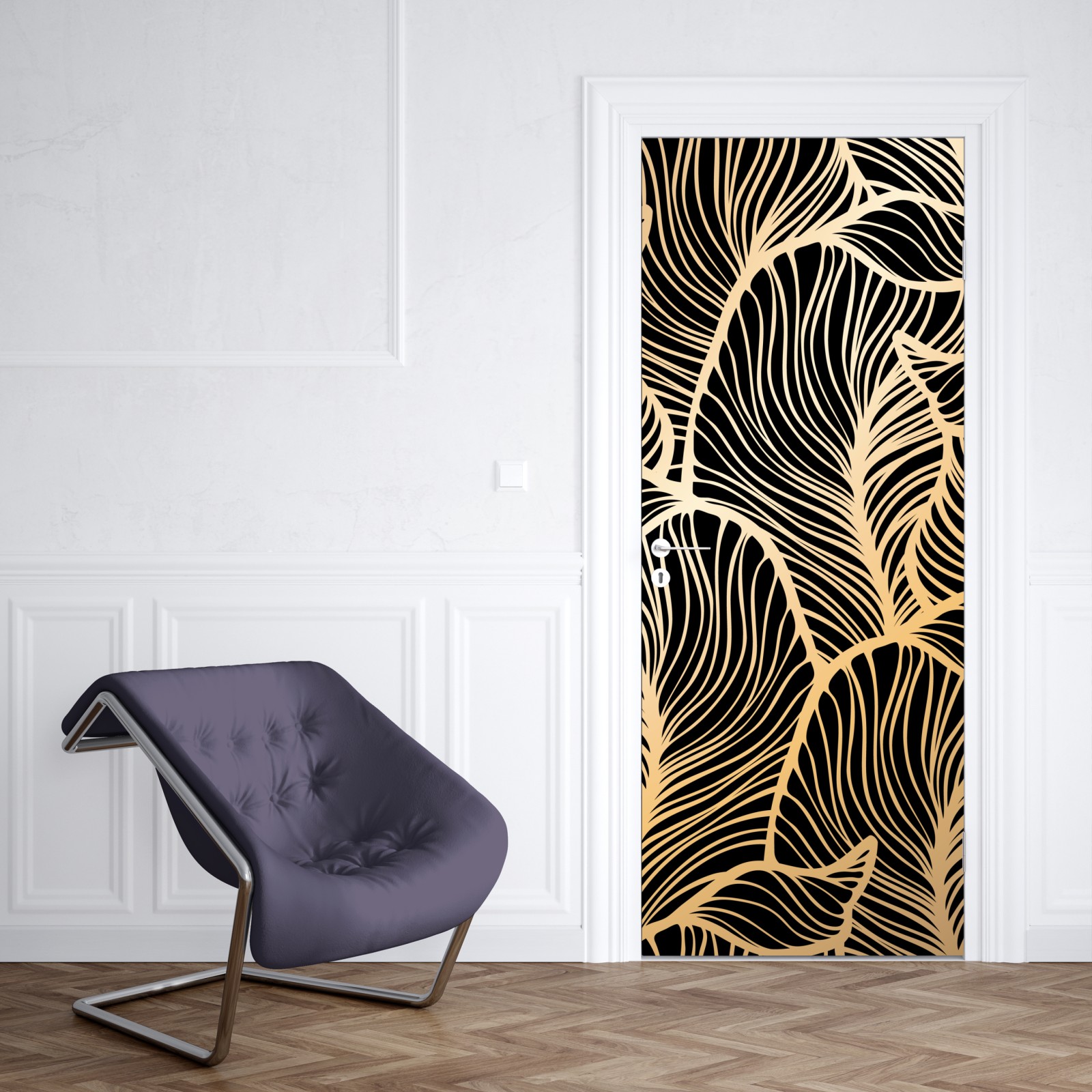 Türaufkleber goldenes blattmuster auf schwarzem hintergrund