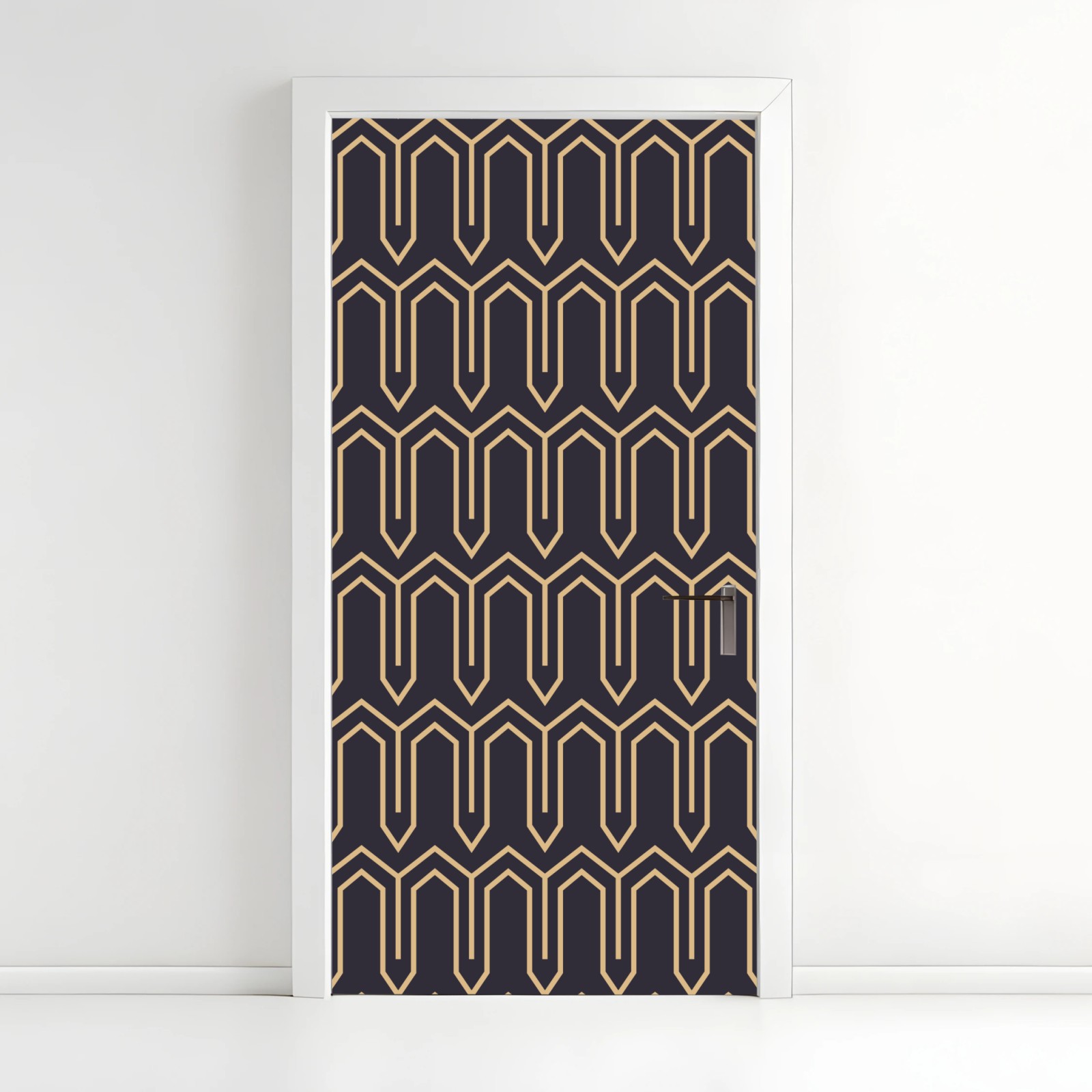 Türaufkleber Art deco geometrisches muster in gold und schwarz