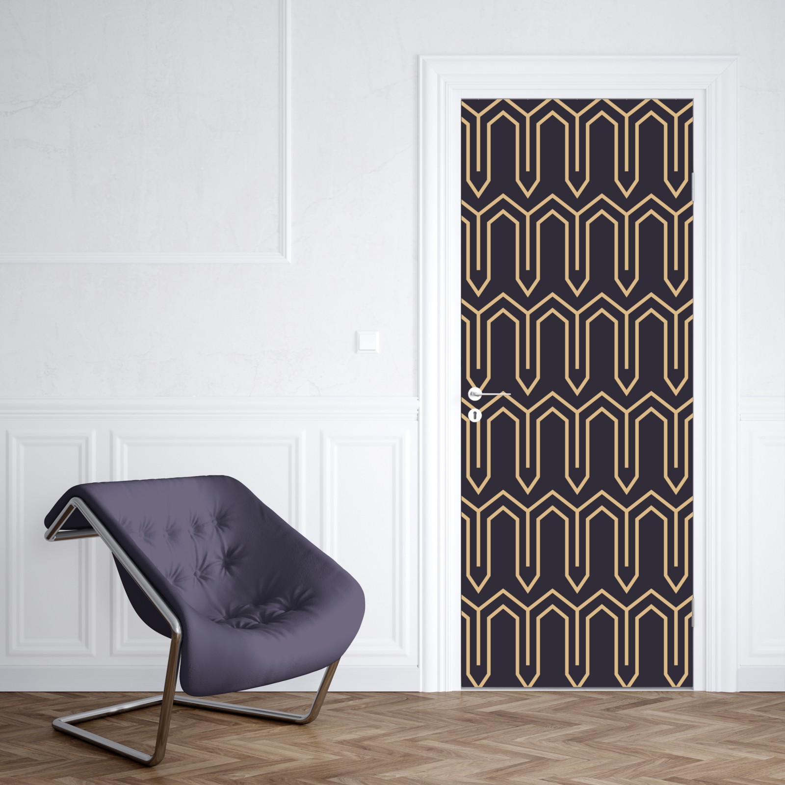 Türaufkleber art deco geometrisches muster in gold und schwarz