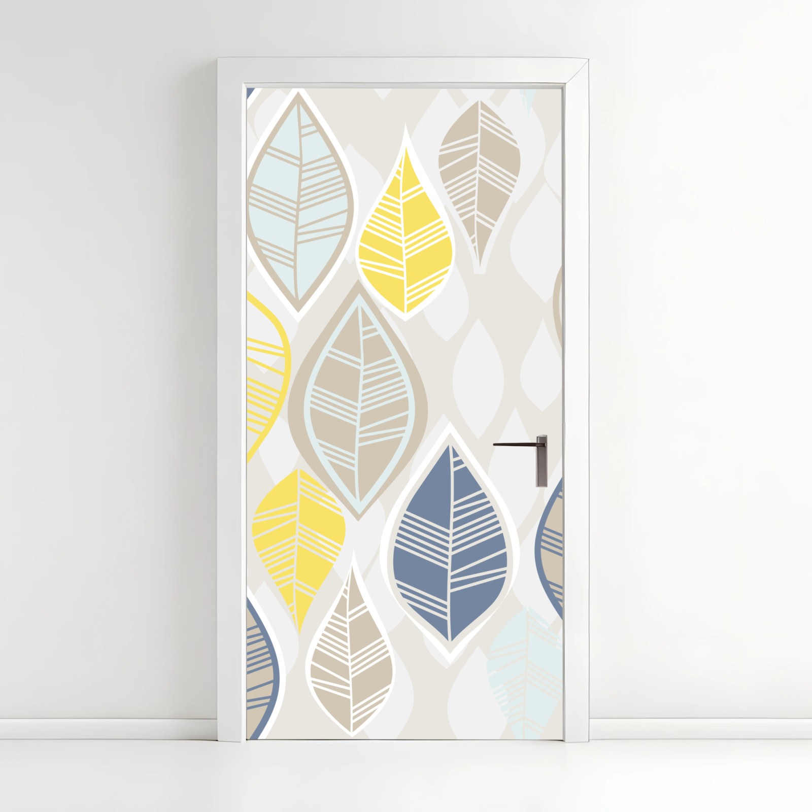 Türaufkleber Skandinavisches blättermuster in sanften neutralen tönen