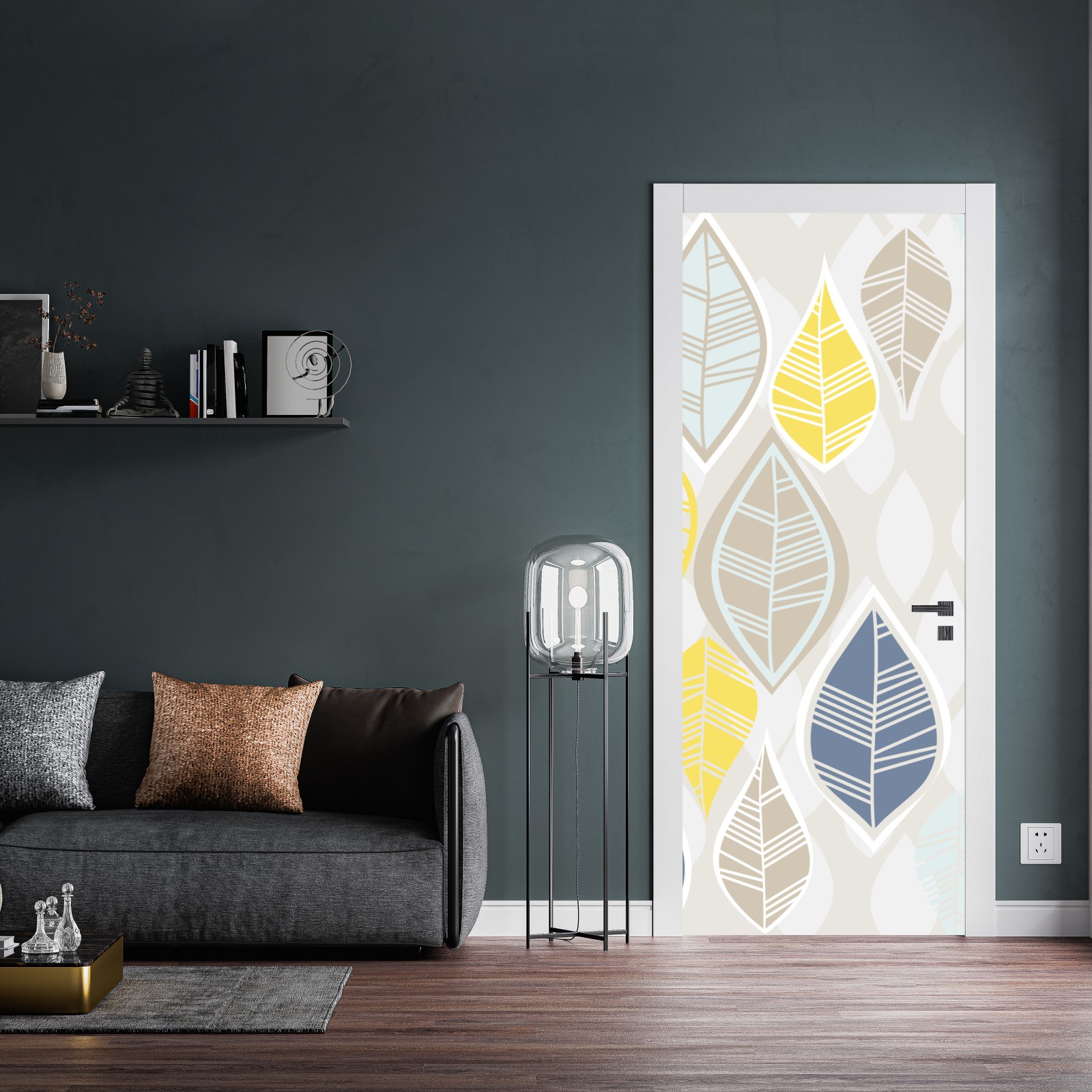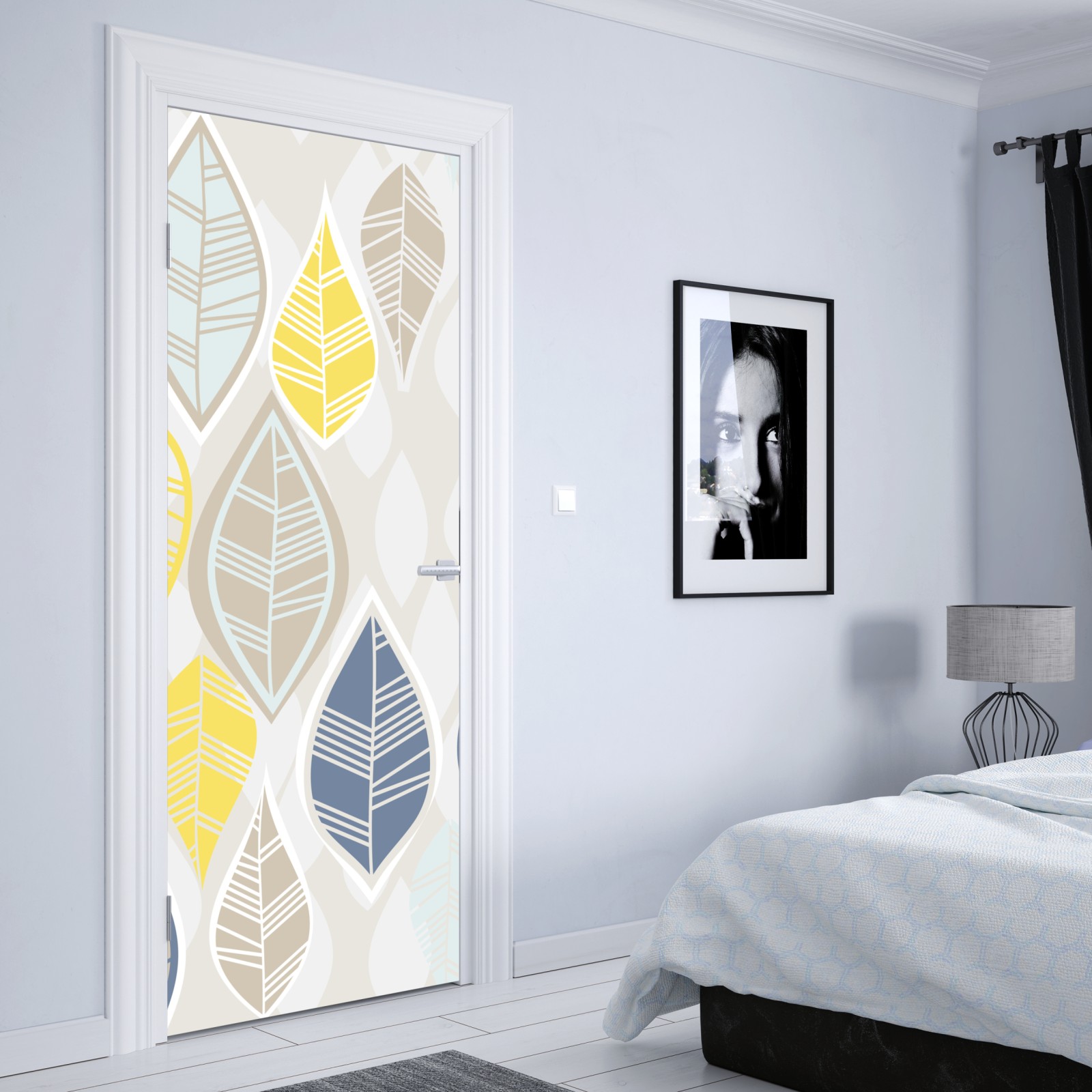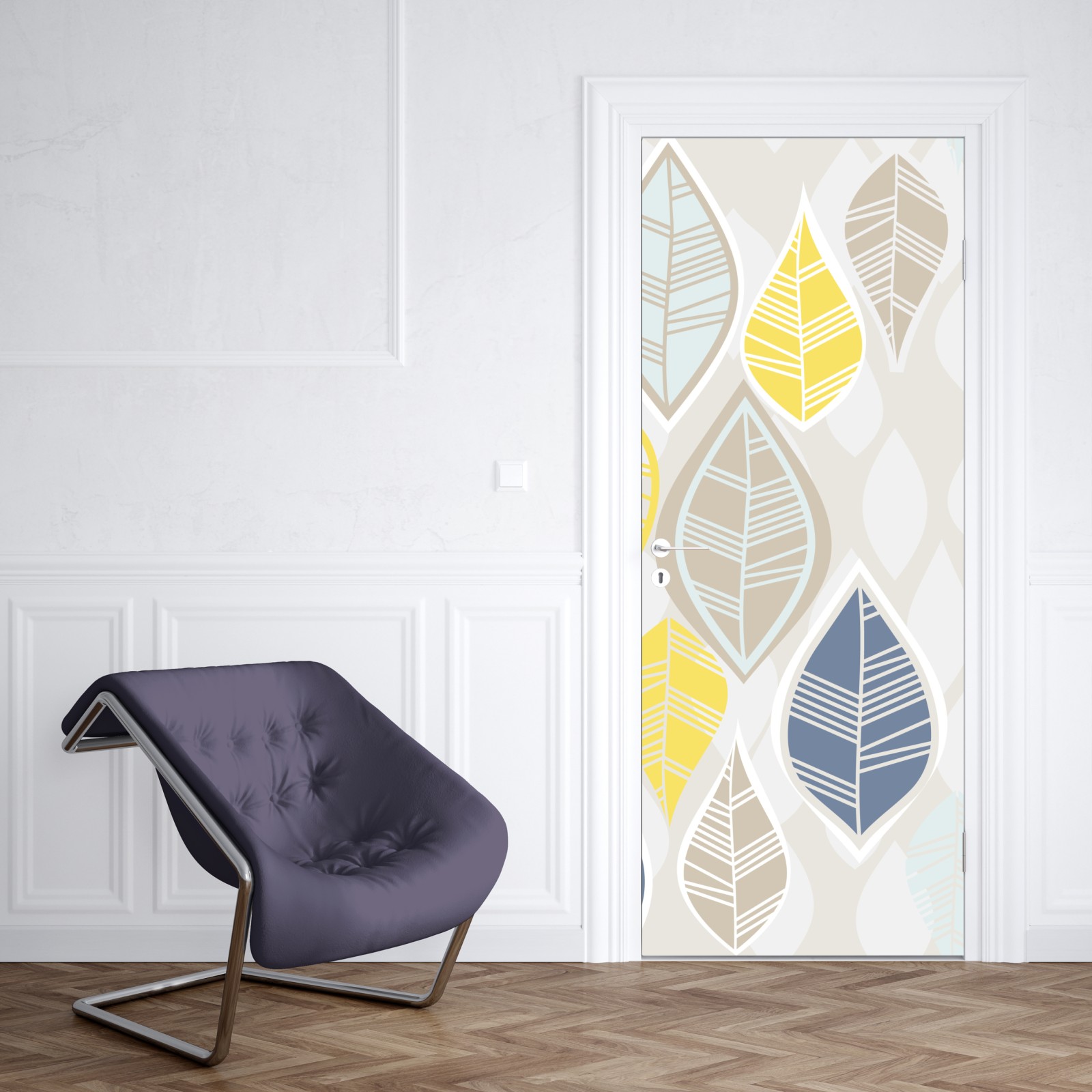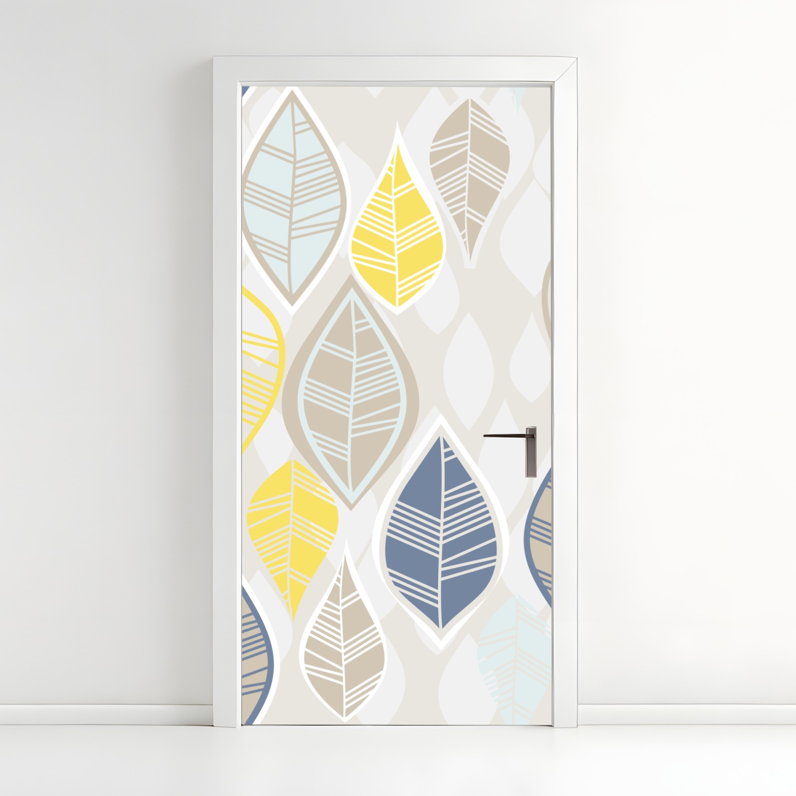 Türaufkleber skandinavisches blättermuster in sanften neutralen tönen