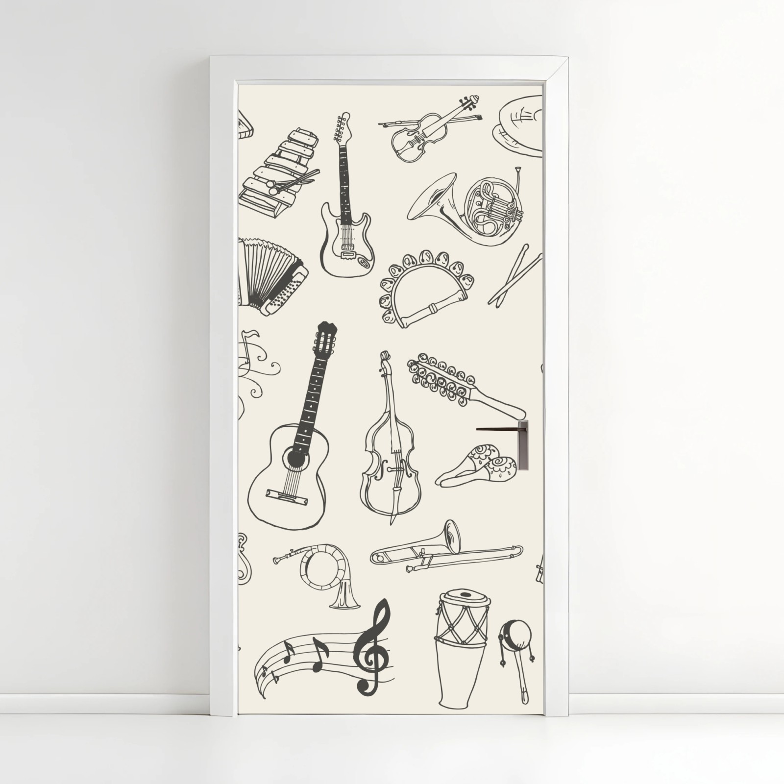 Türaufkleber Handgezeichnete musikinstrumente collage