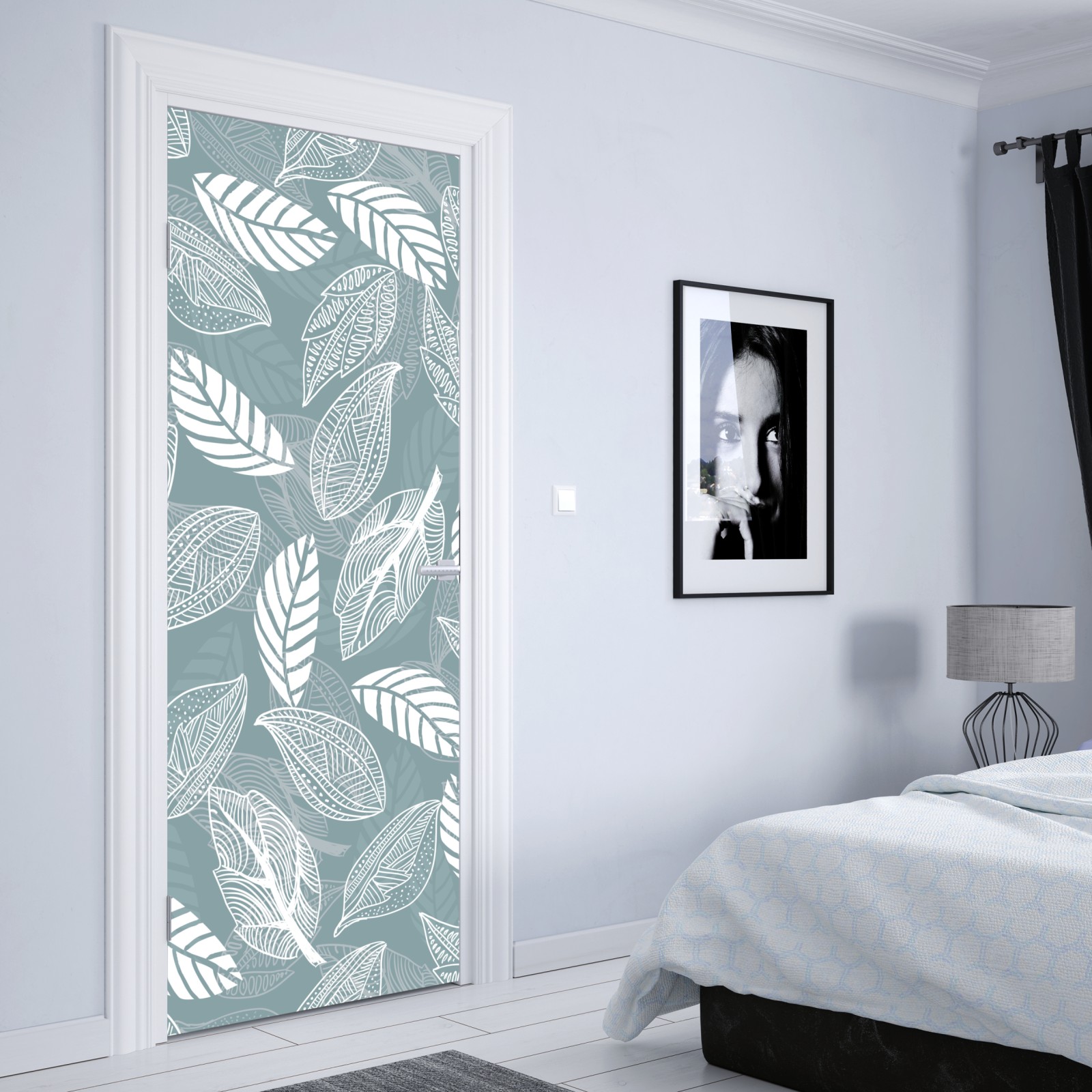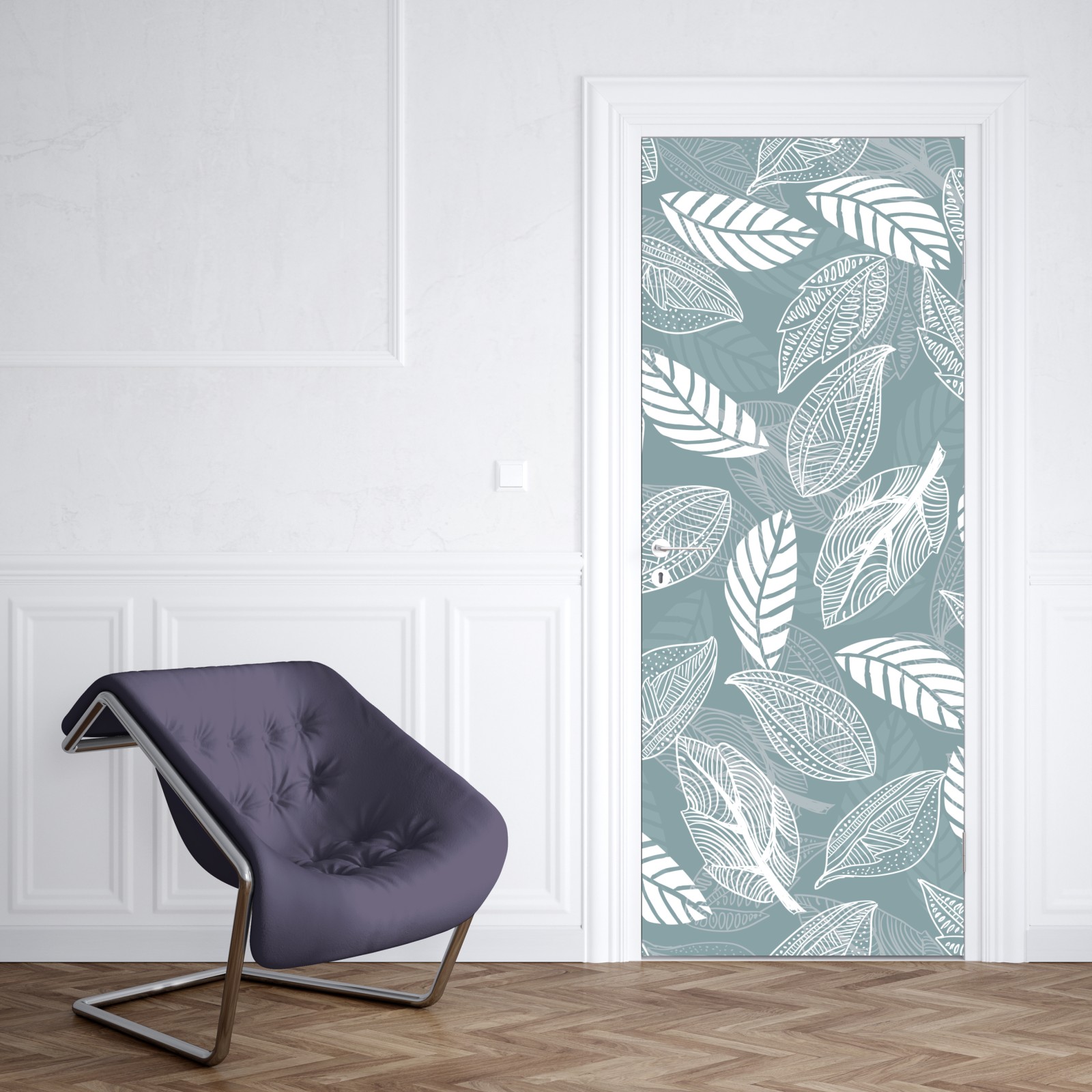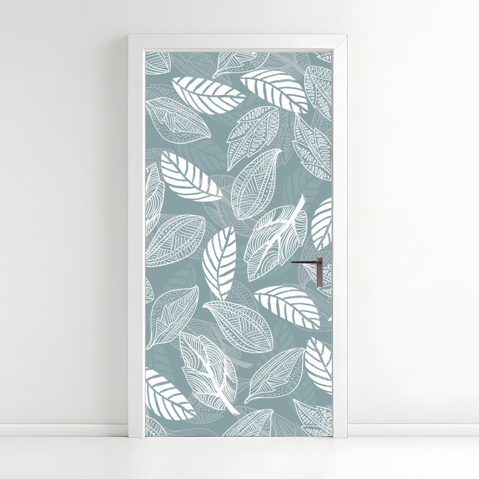 Türaufkleber handgezeichnetes blättermuster auf türkisfarbenem hintergrund