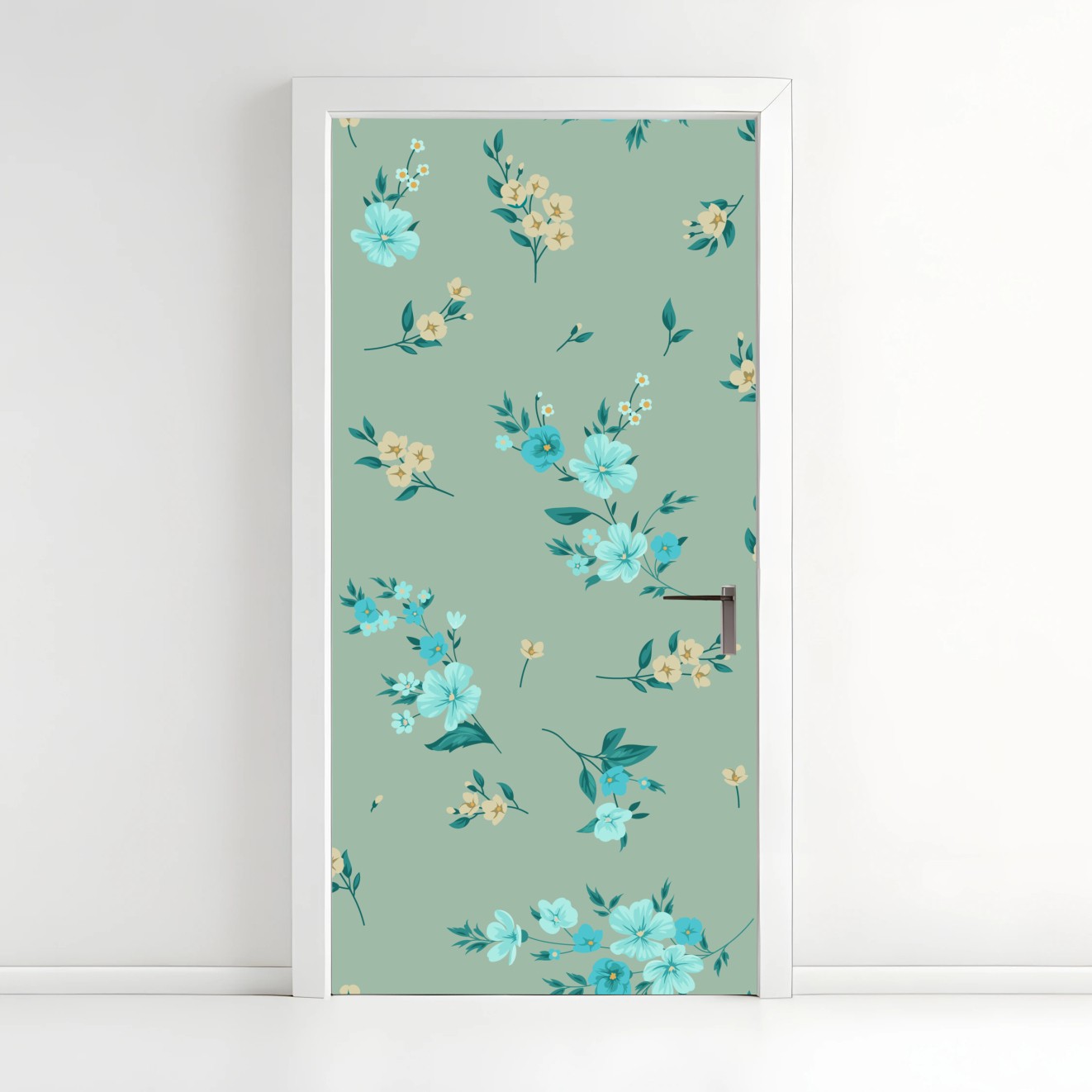 Türaufkleber Pastell türkis blumenmuster auf salbeigrünem hintergrund