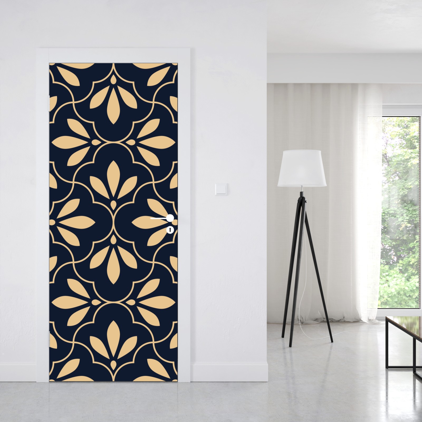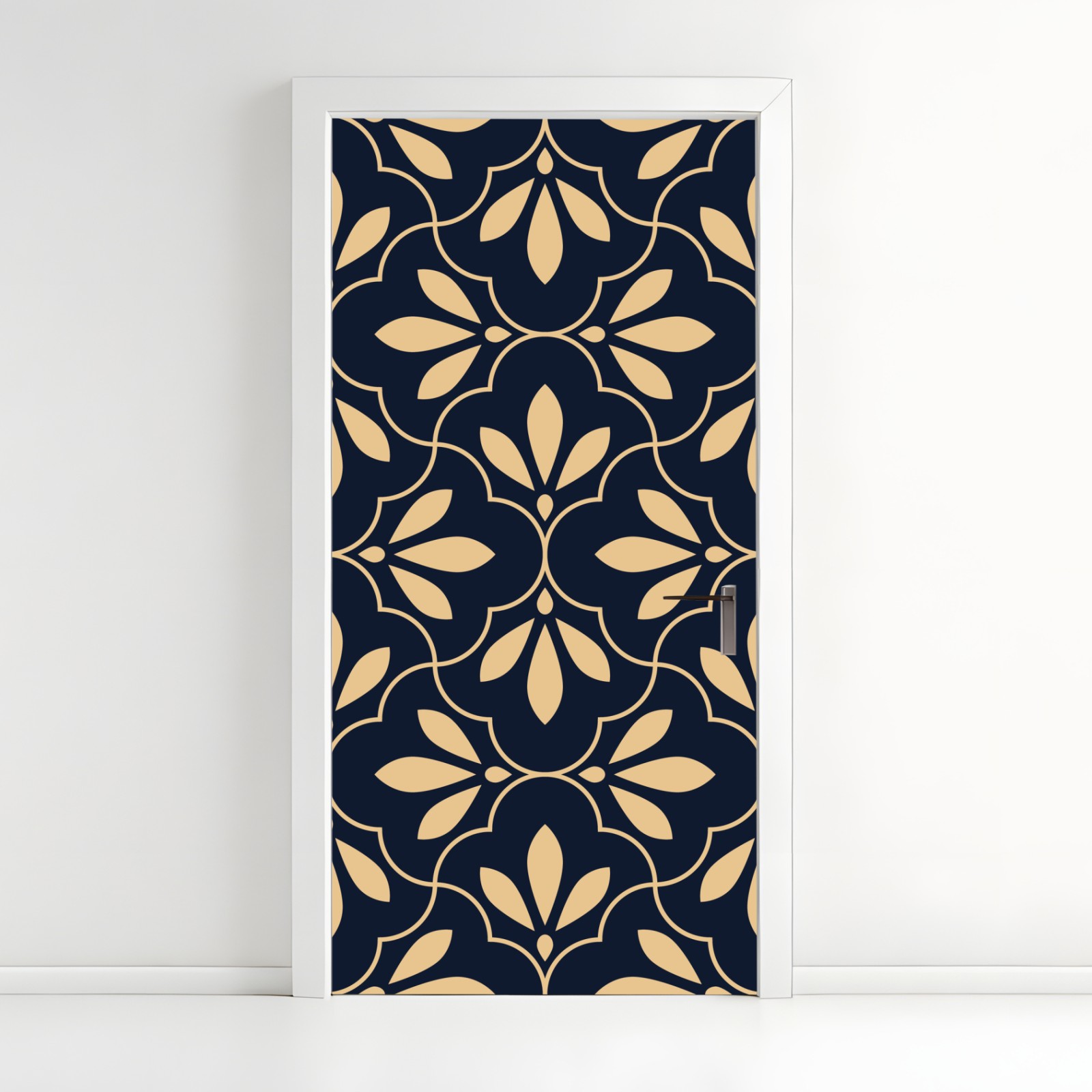 Elegantes marineblau-beiges Ornament, das jedem Innenraum zeitlose Eleganz und Wärme verleiht, ideal für Akzentwände und dekorative Drucke.