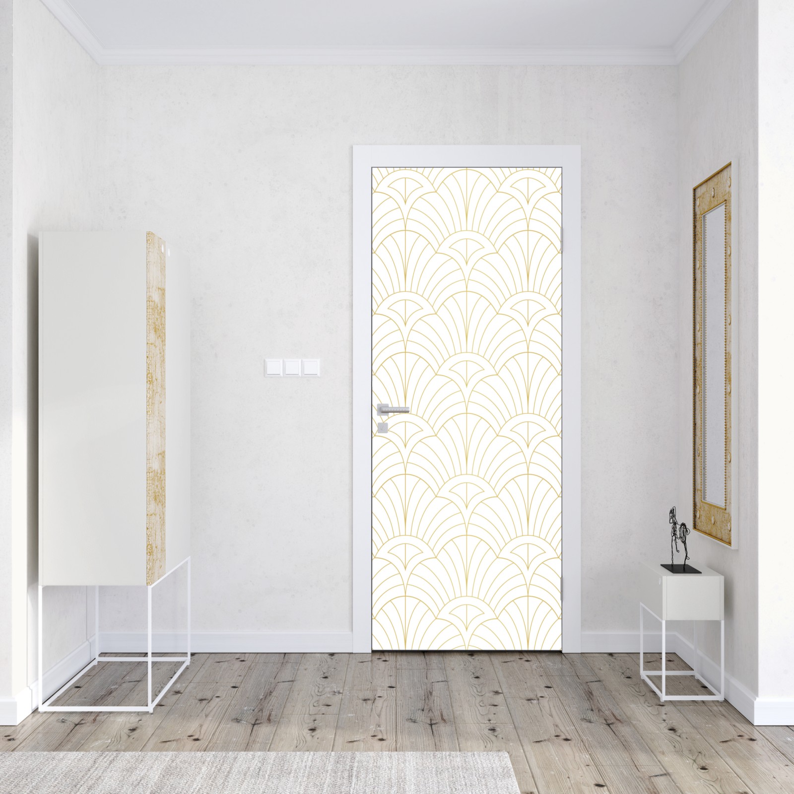 Goldenes Art-Deco-Muster auf weißem Hintergrund verleiht jedem Raum zeitlose Eleganz und dezenten Luxus.