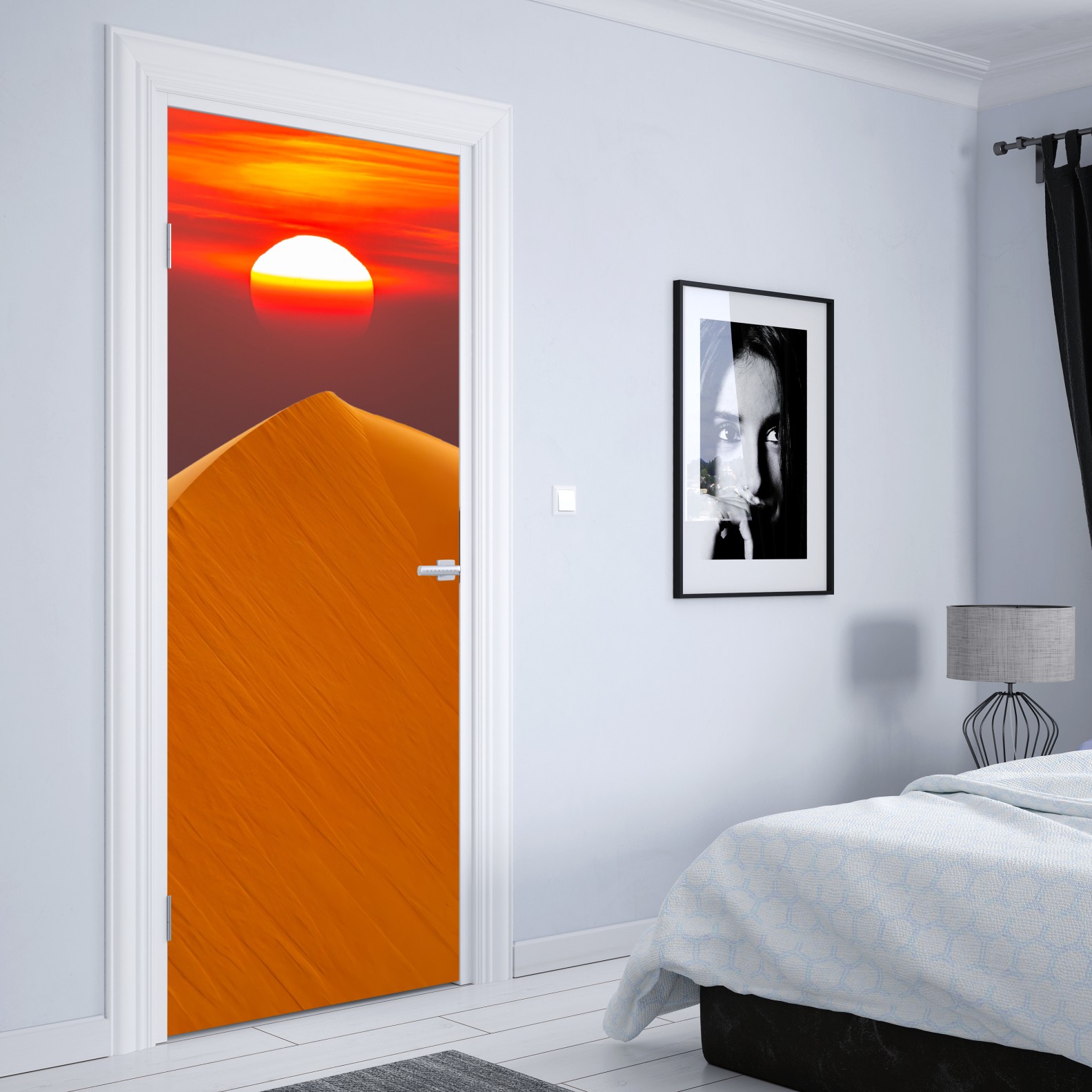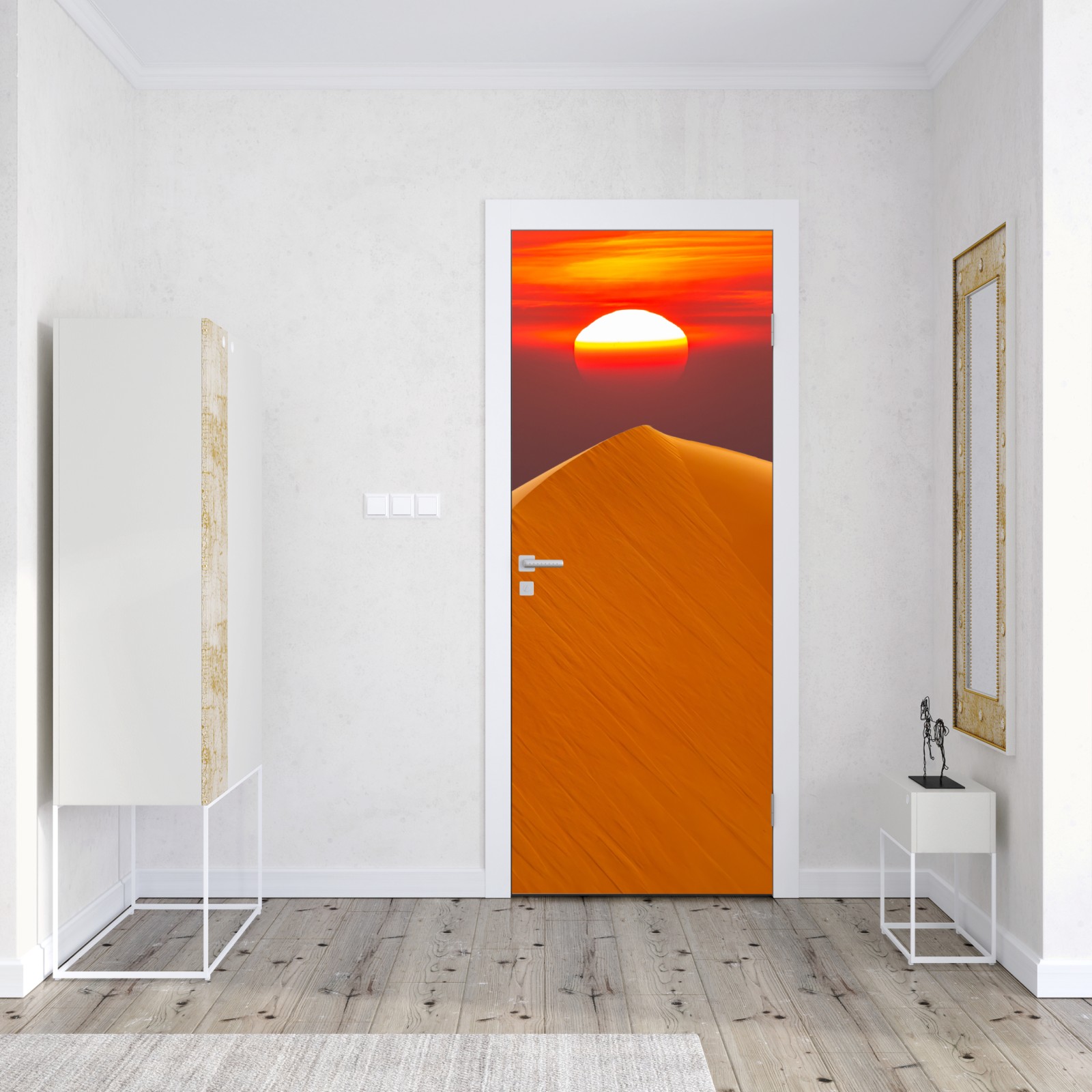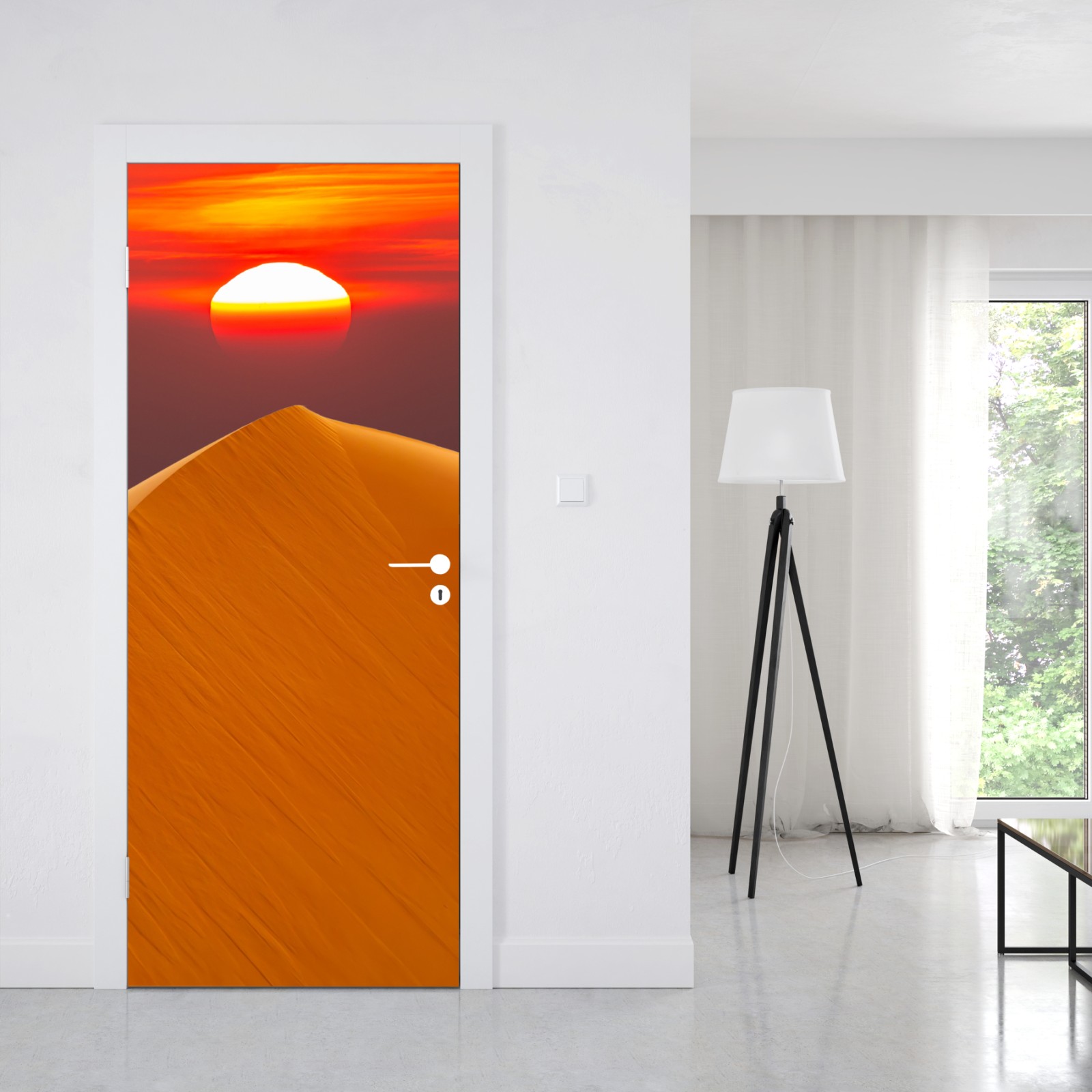 Türaufkleber goldener sonnenuntergang über sanddünen