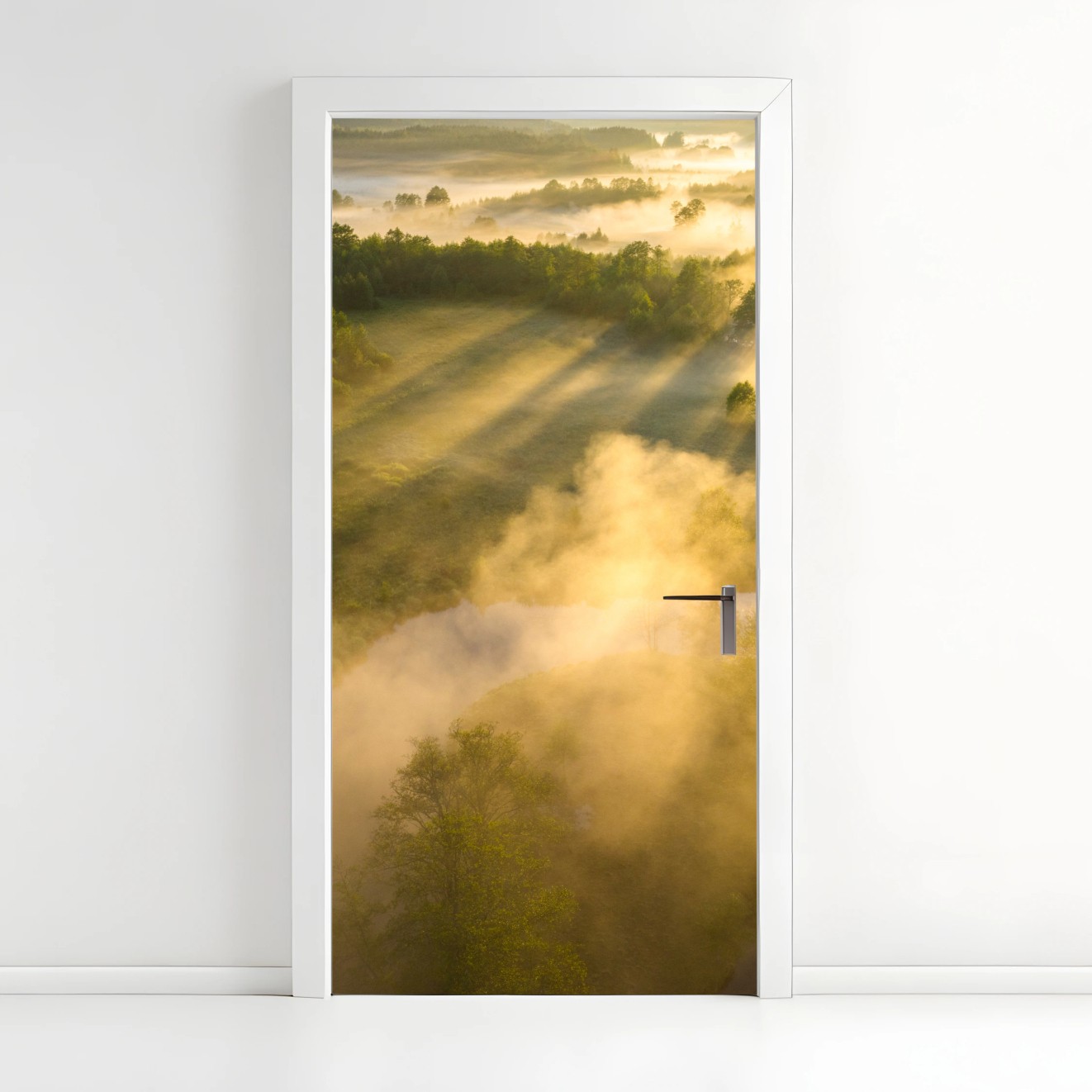 Türaufkleber Goldener morgen über nebligem fluss