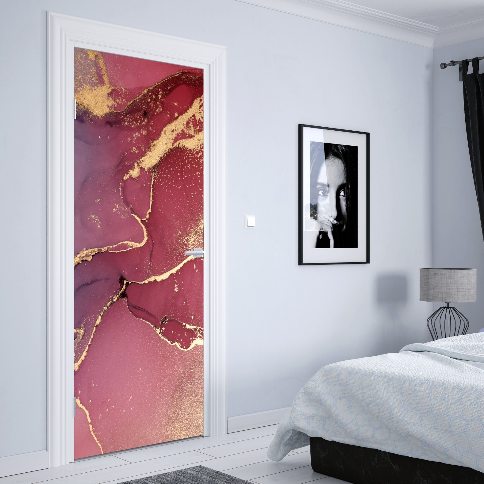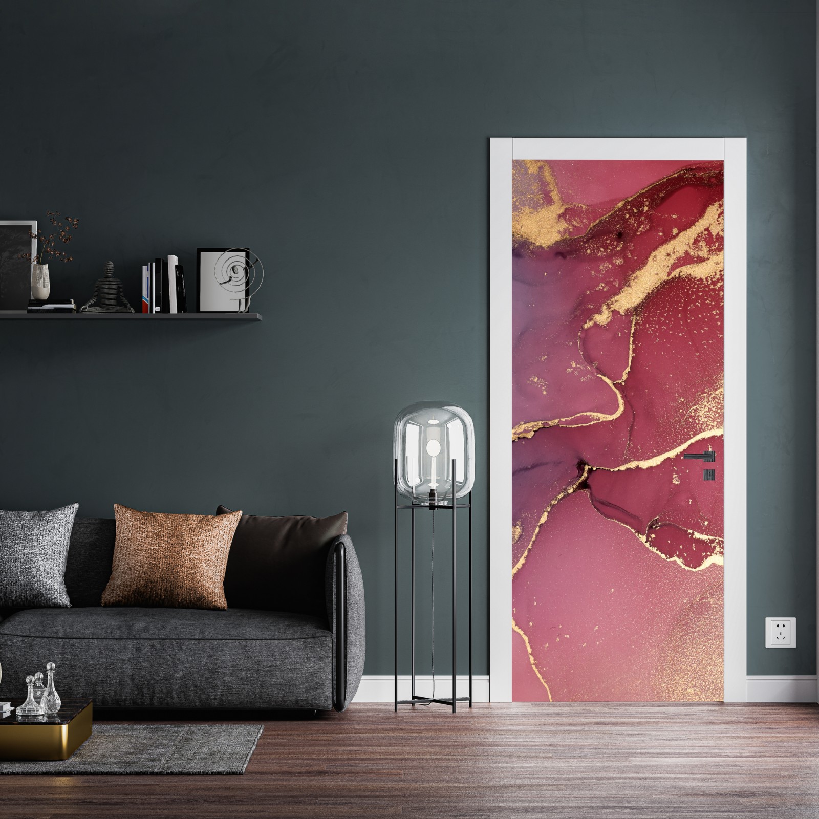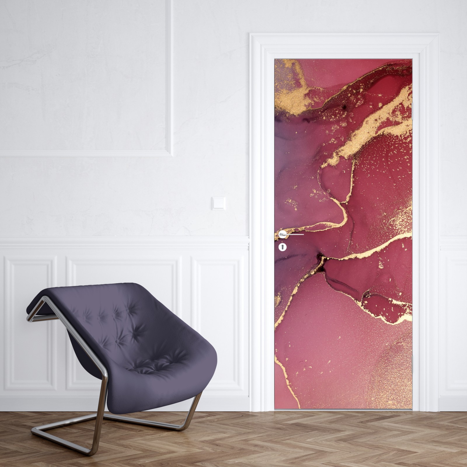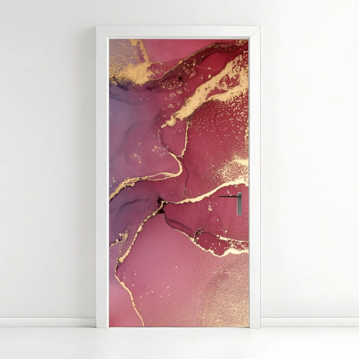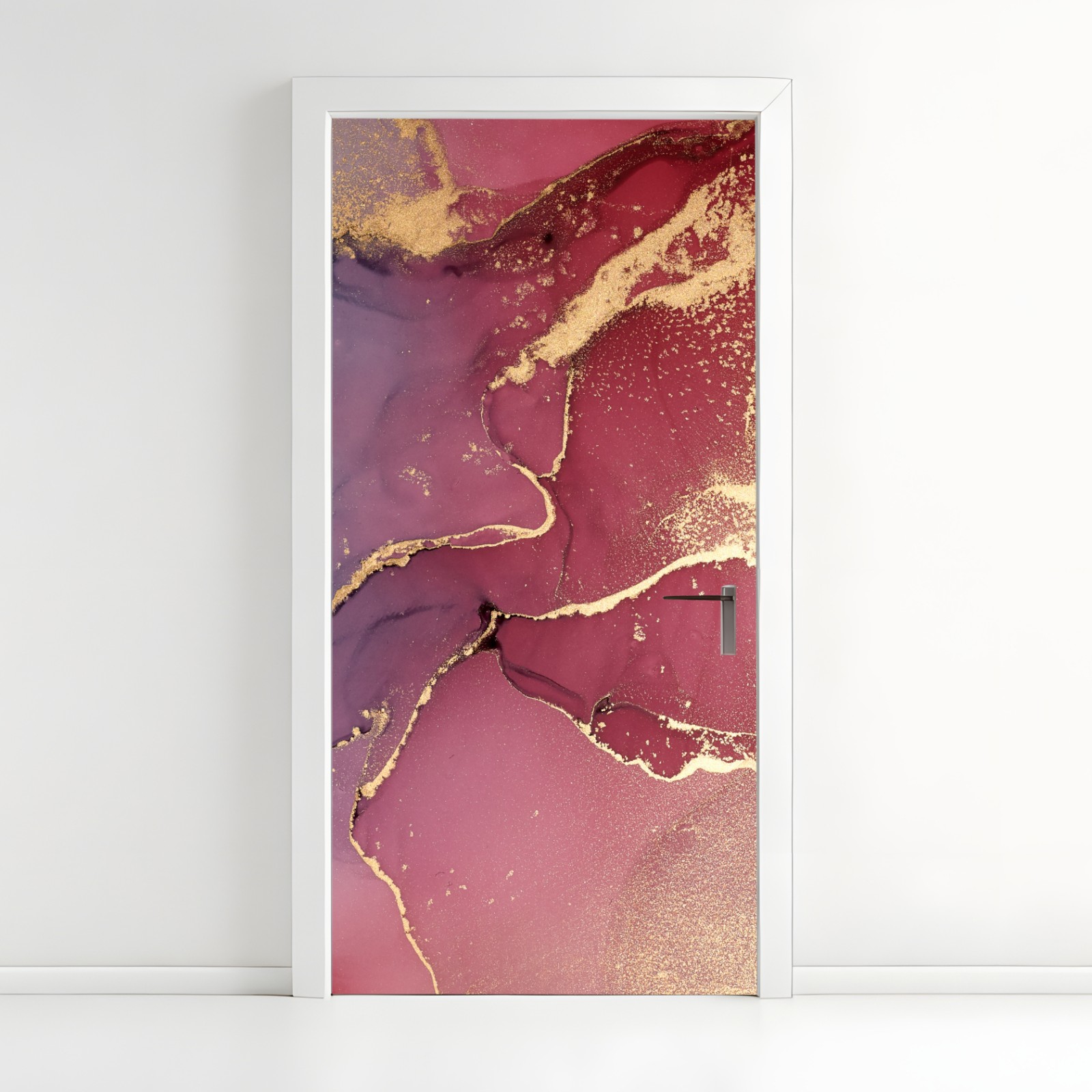 Türaufkleber abstraktes marmoriertes bild in türkis und lila mit gold