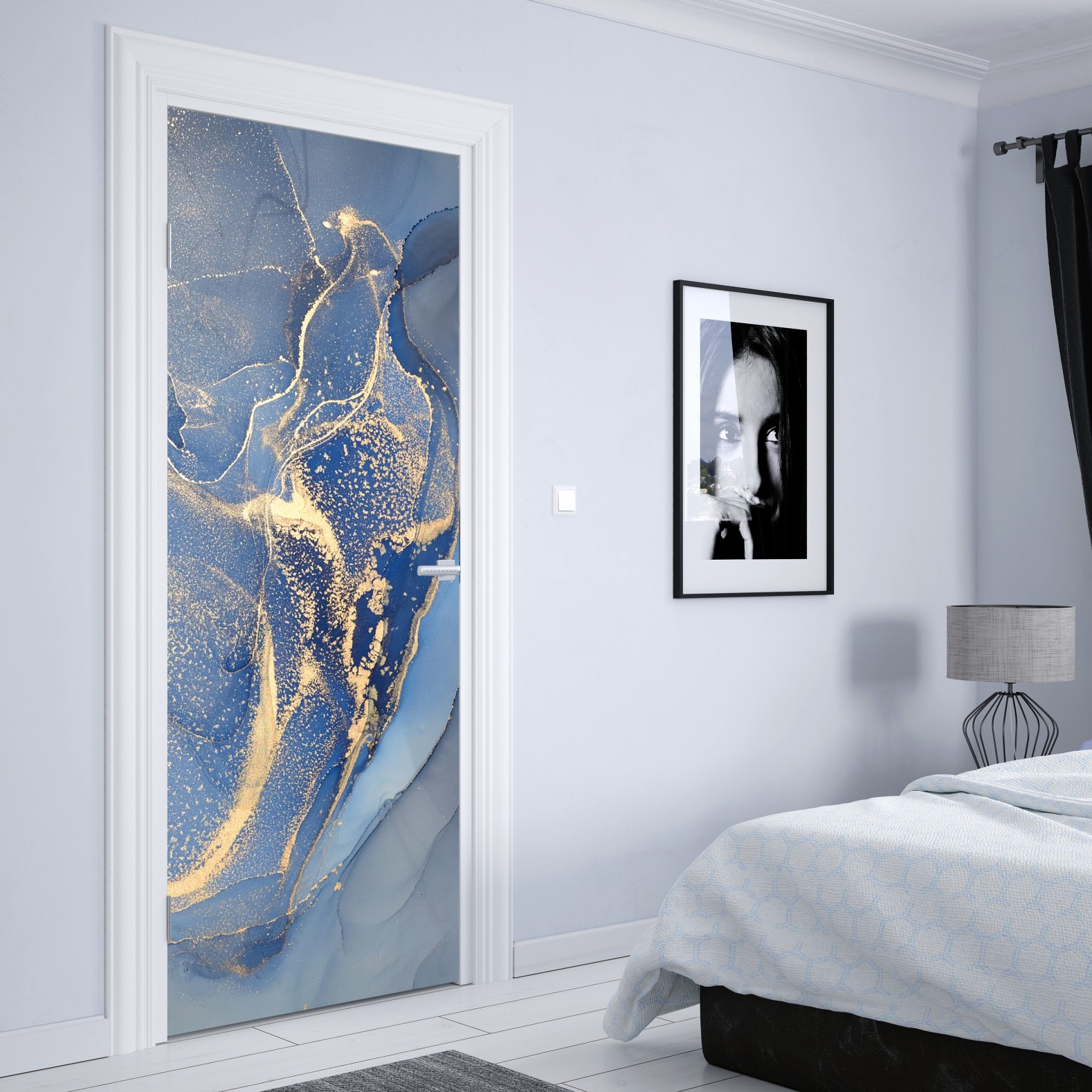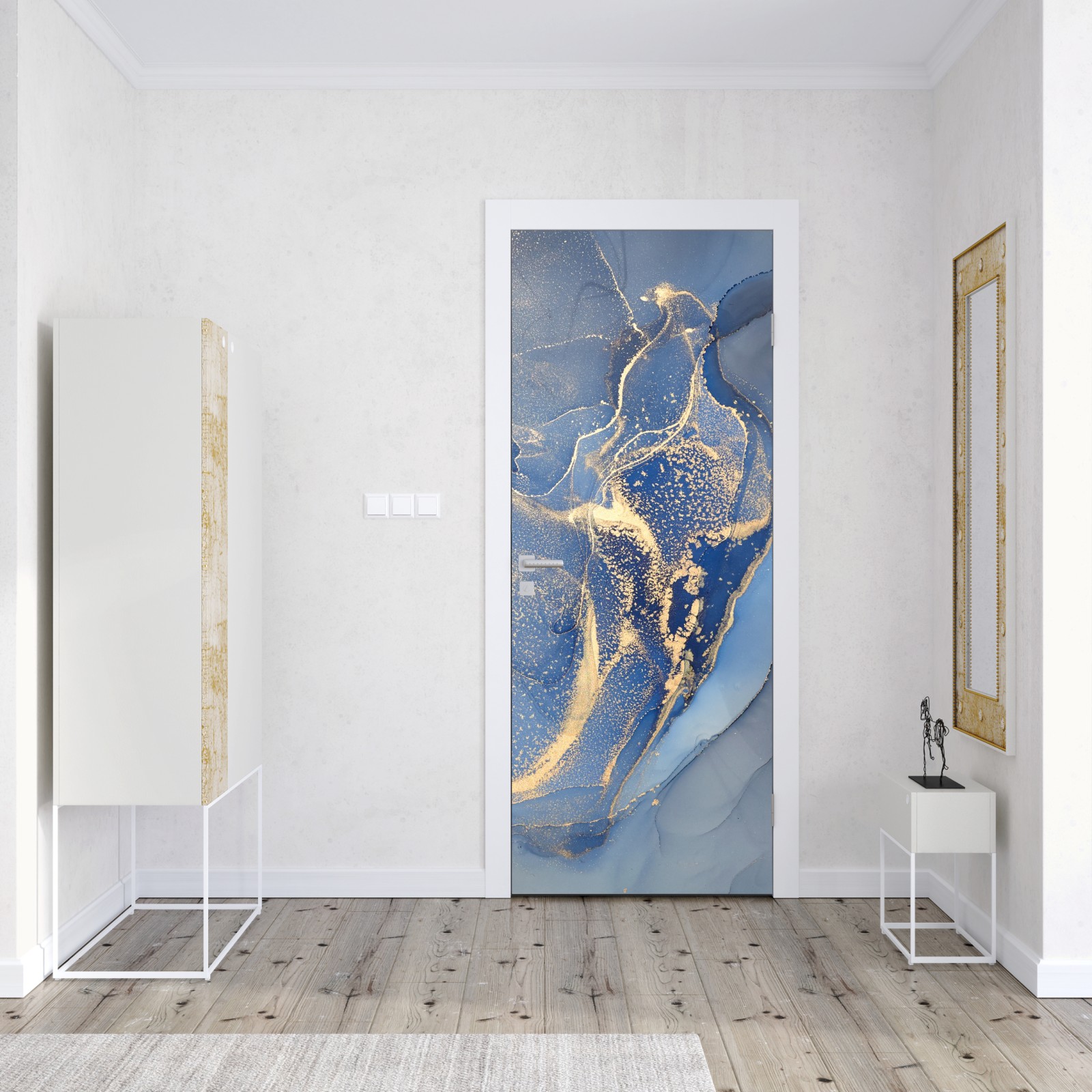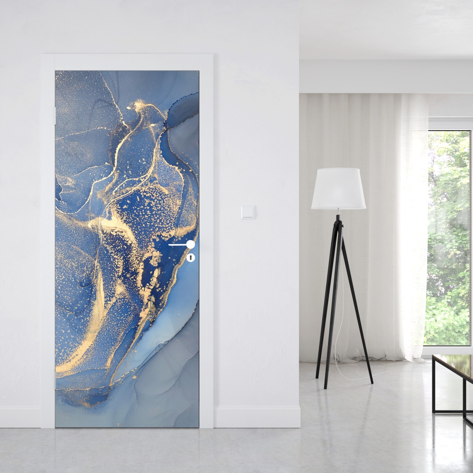 Türaufkleber ozeanblauer marmor mit goldenen adern