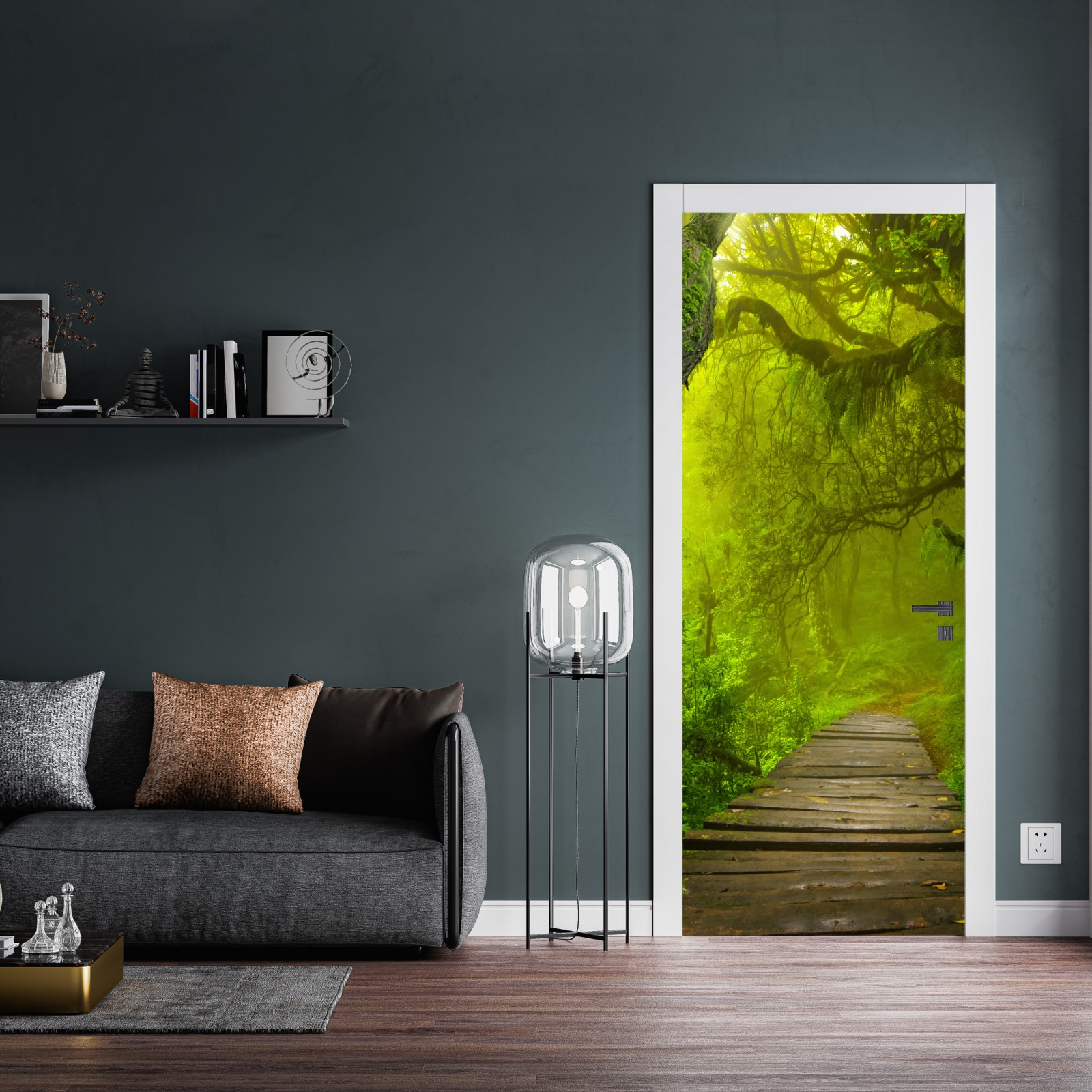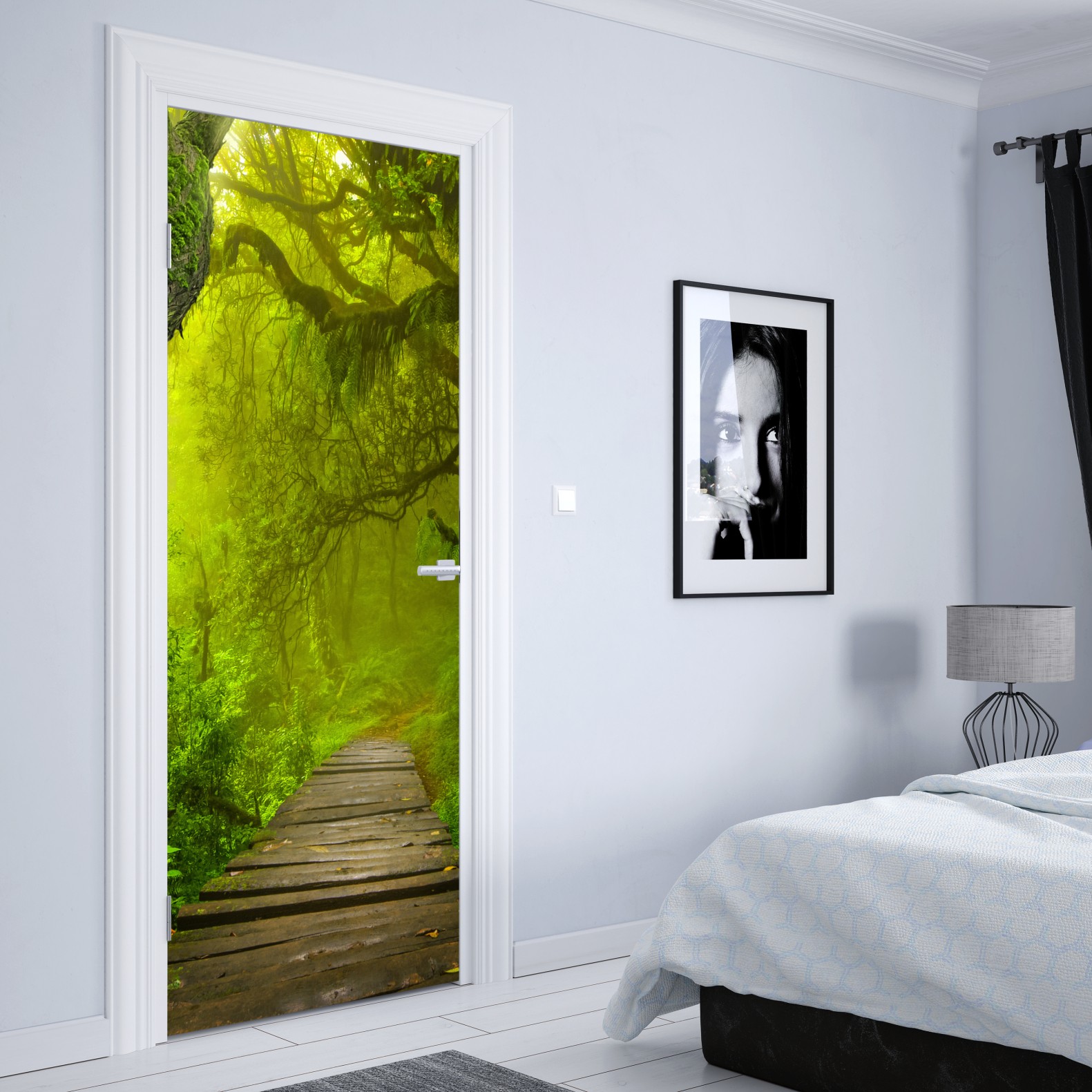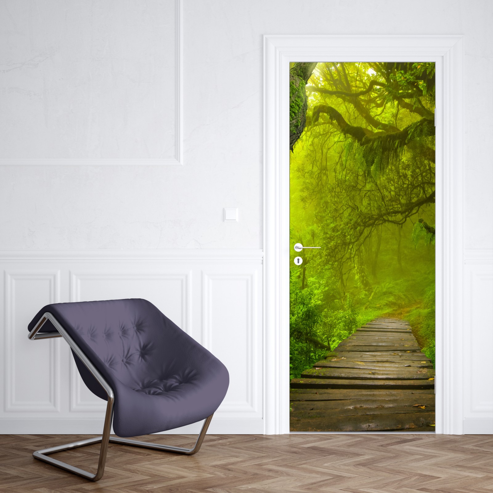 Türaufkleber mystischer grüner waldpfad