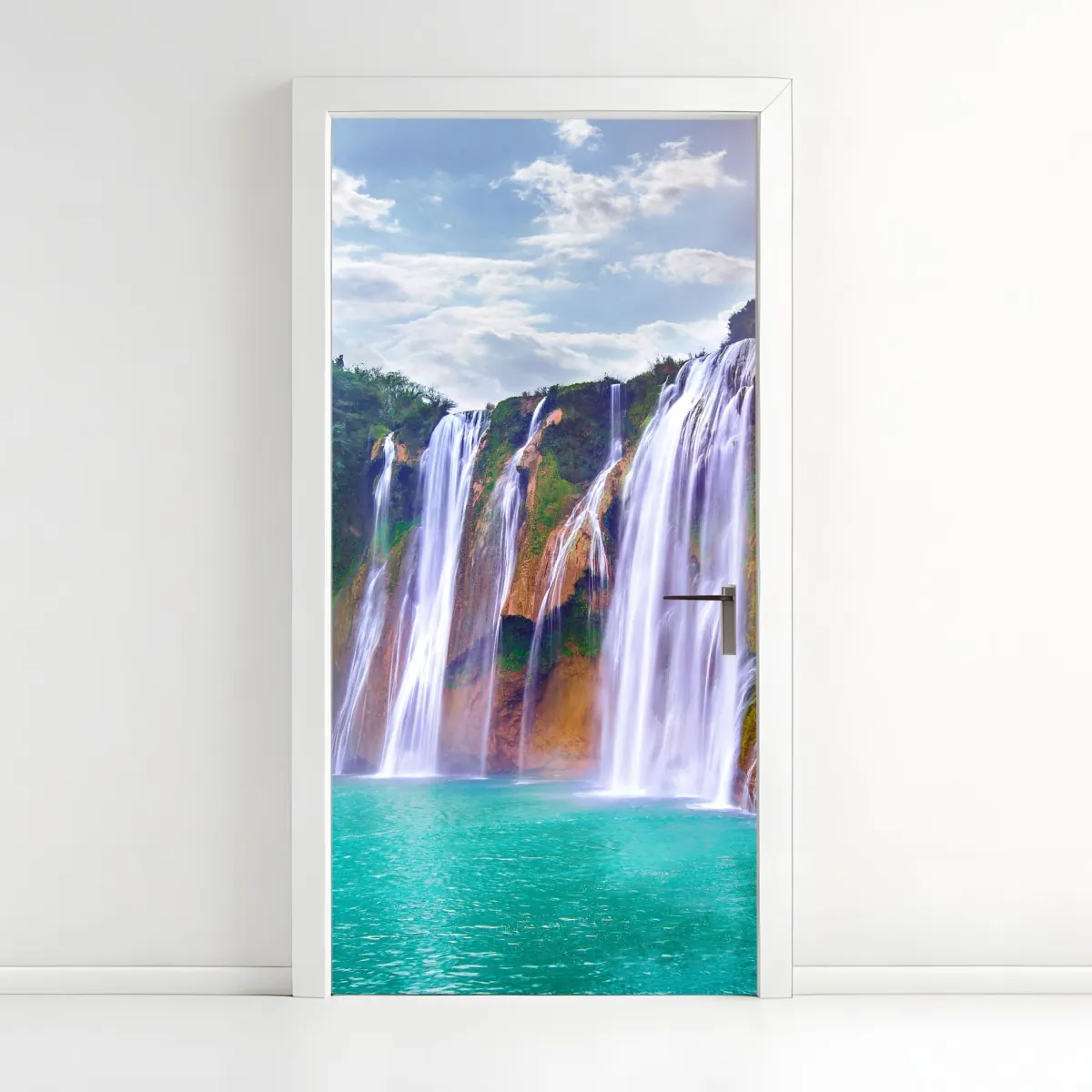 Türaufkleber Jiulong wasserfall türkis kaskade in Luoping, China
