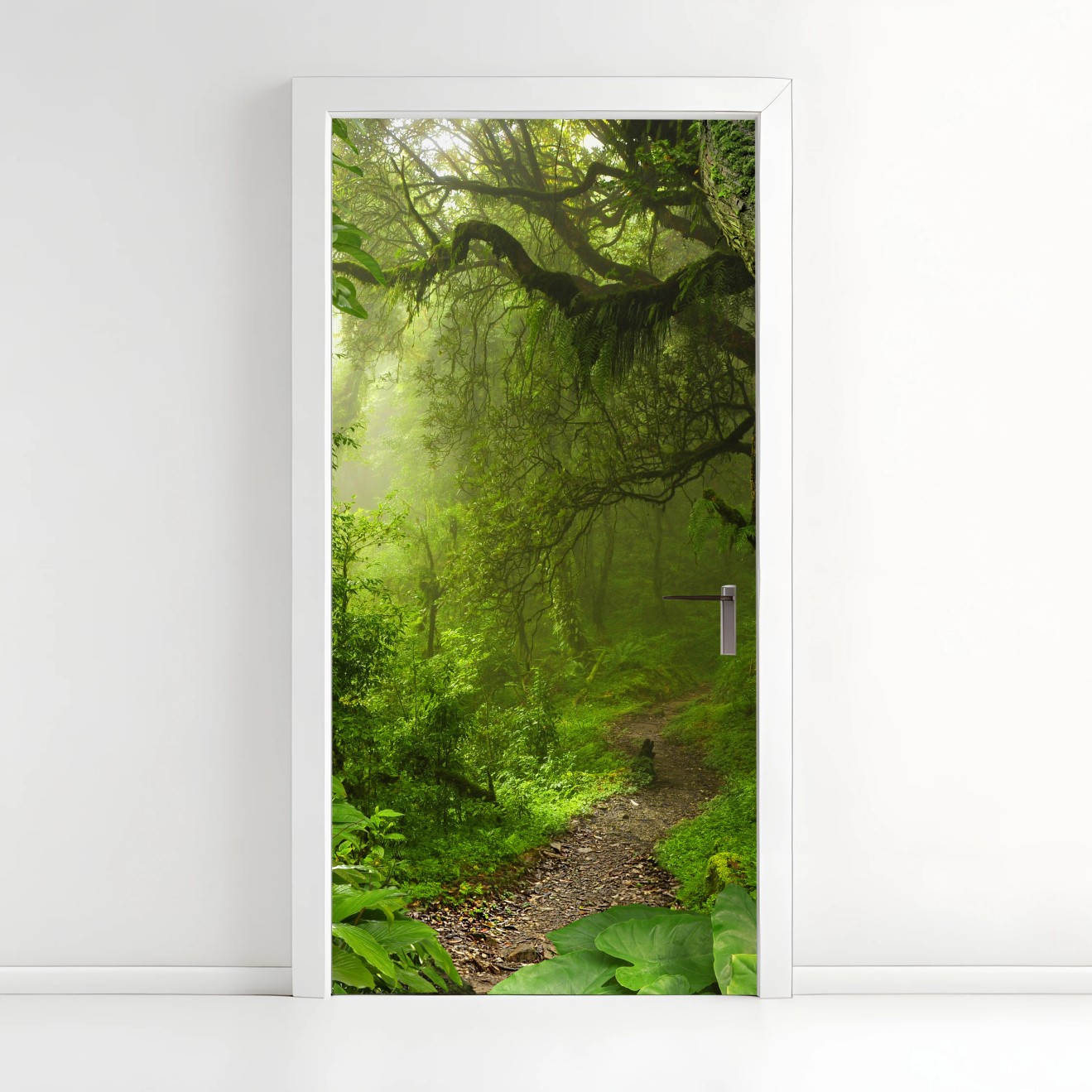 Türaufkleber Üppiger nebliger waldpfad