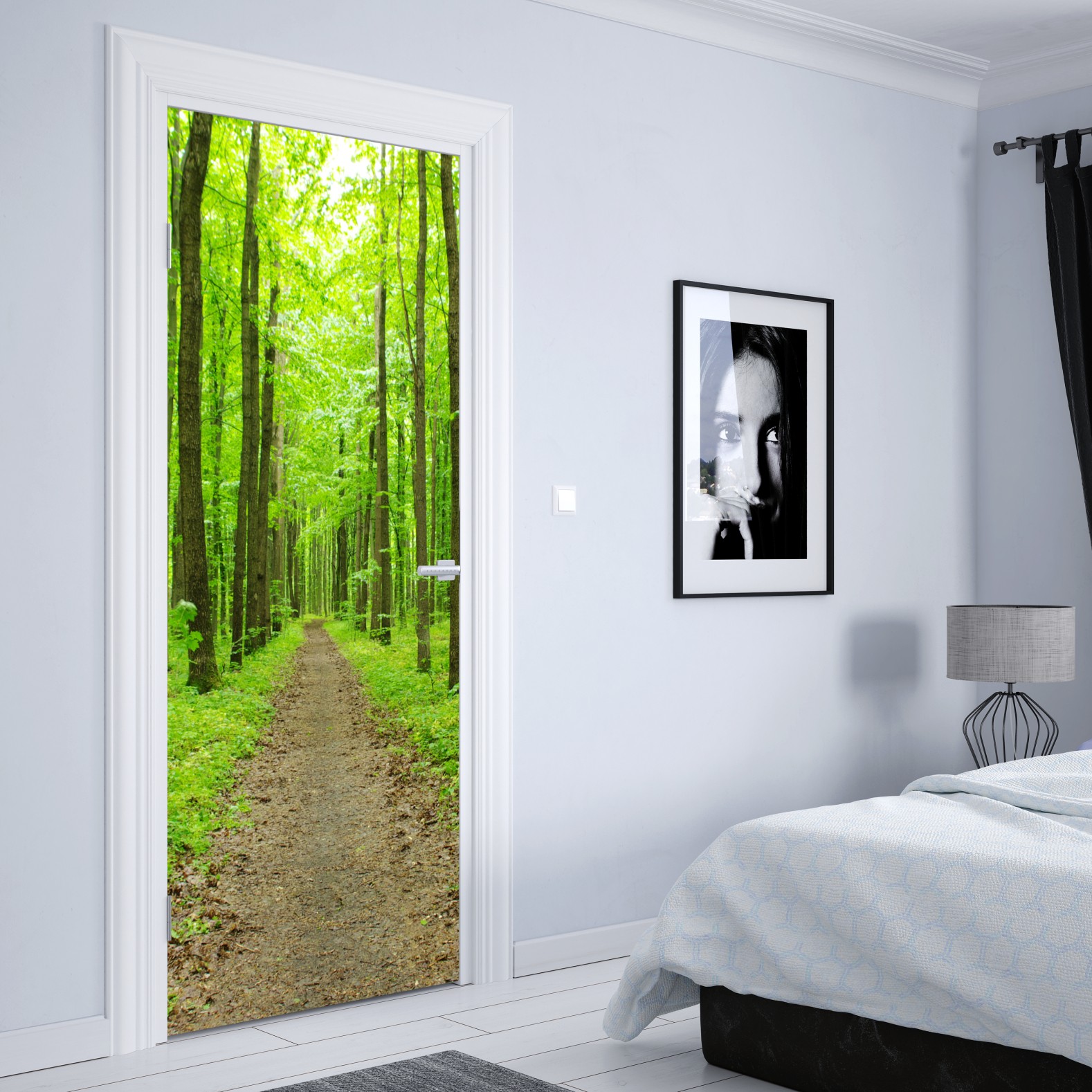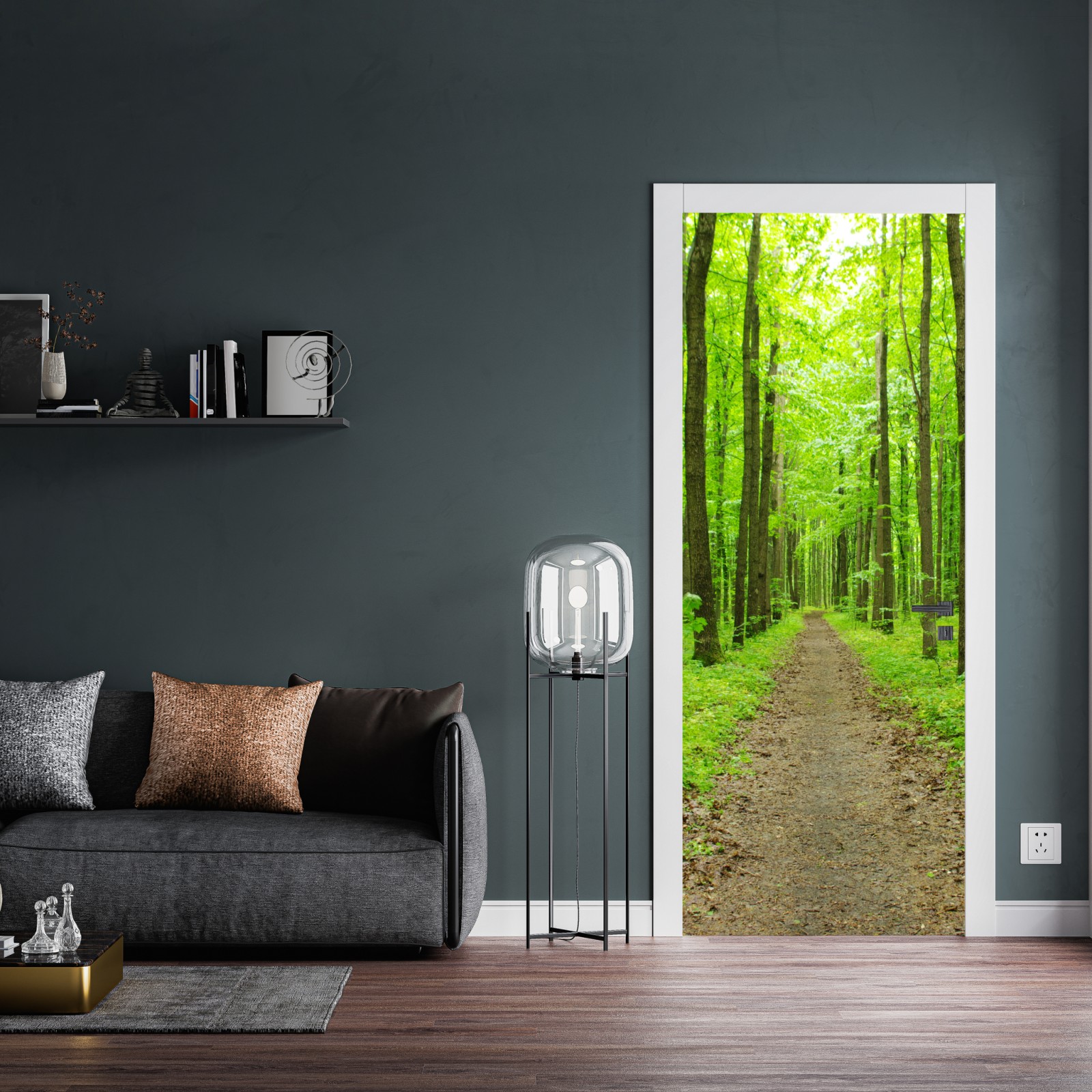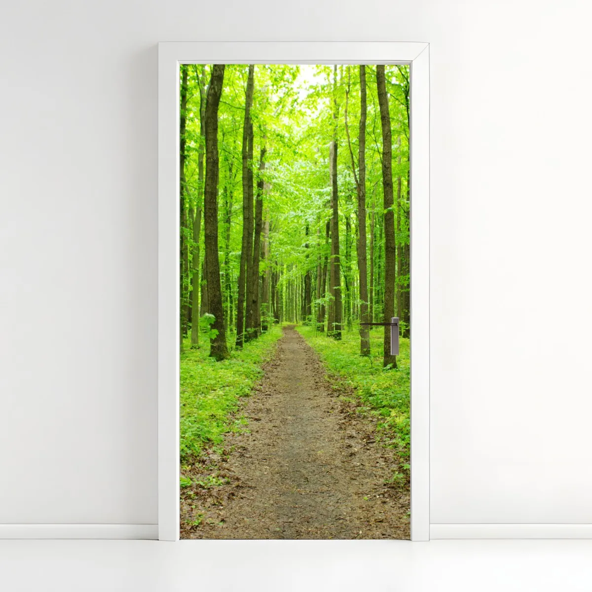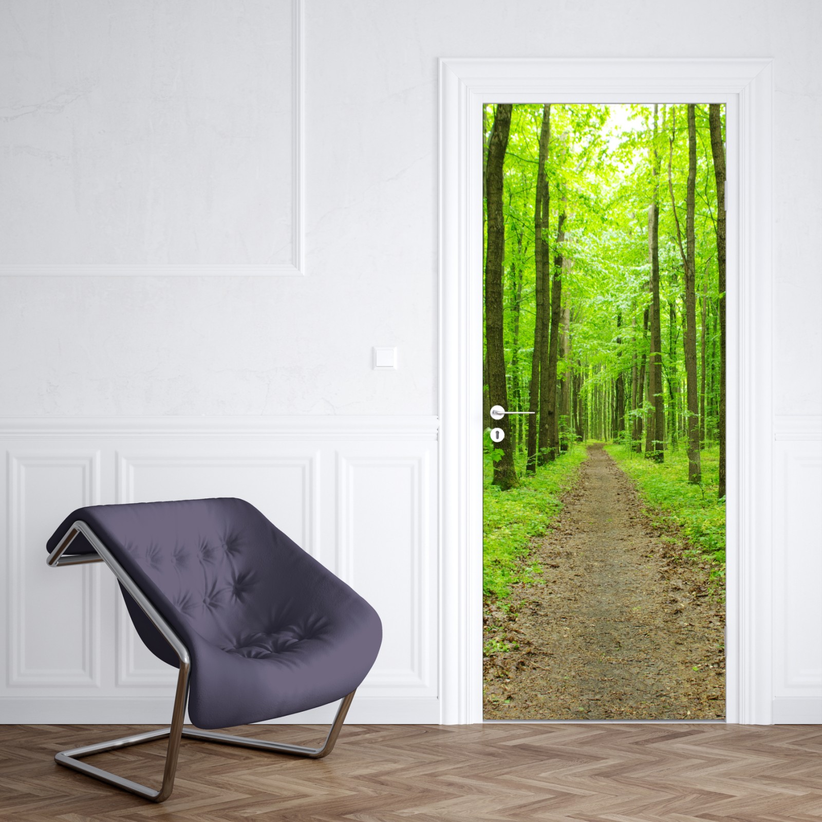Ein ruhiger Weg durch einen lebendig grünen Wald, ideal um einen Hauch Natur und Ruhe in den Raum zu bringen.