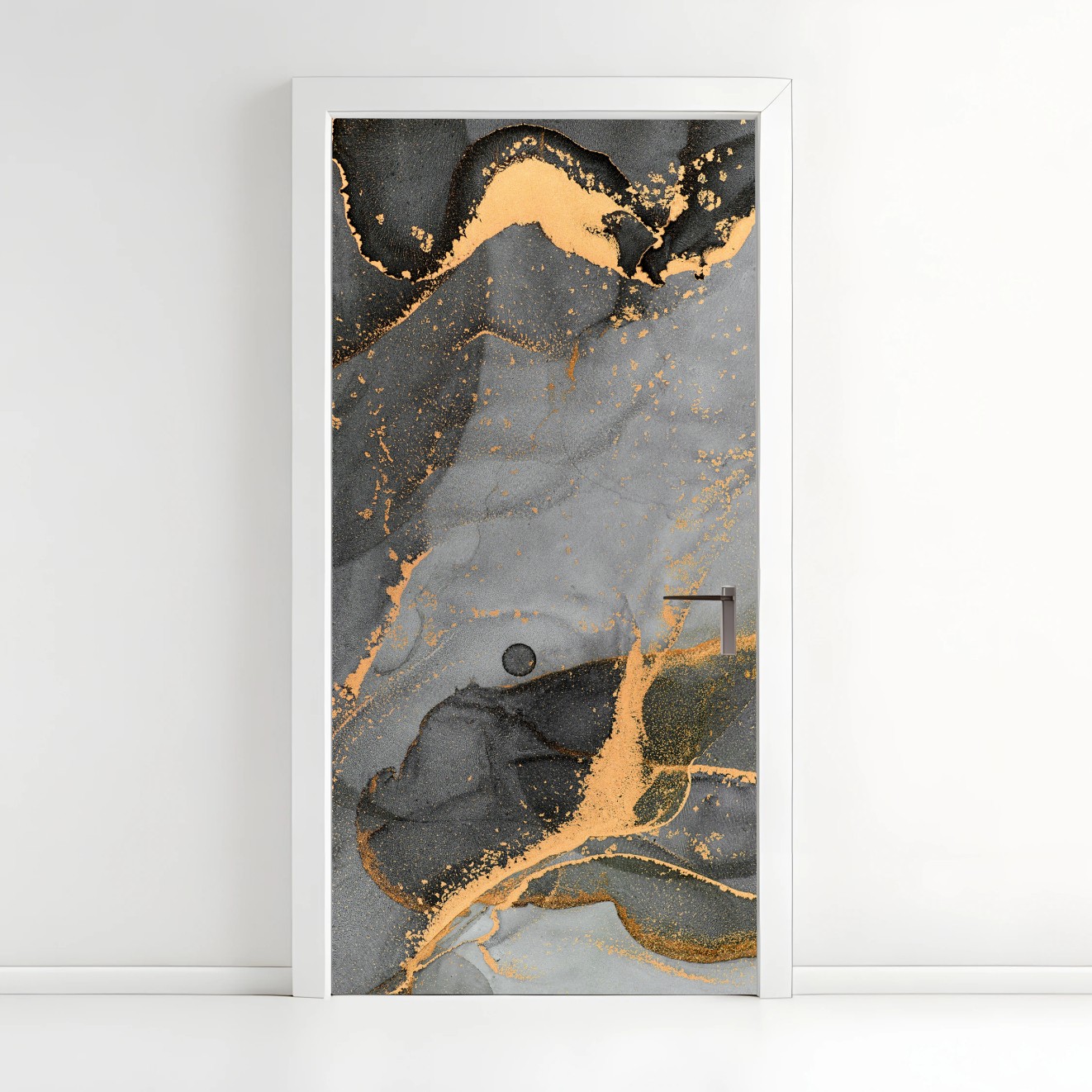 Türaufkleber Rauchiger grauer marmor mit goldenen adern