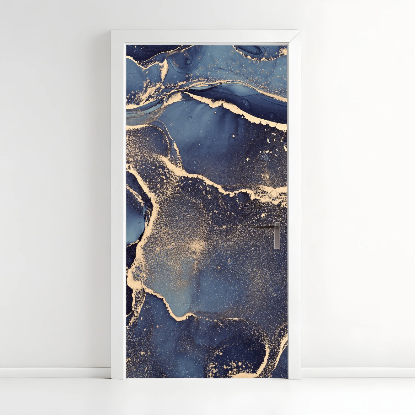 Türaufkleber Traumhafte abstrakte fließmalerei in blau und gold