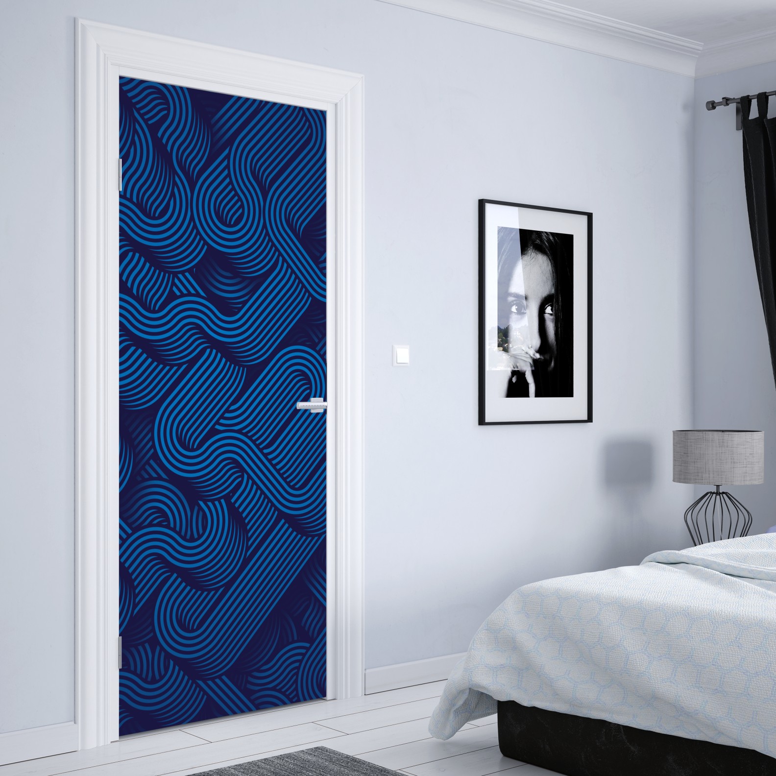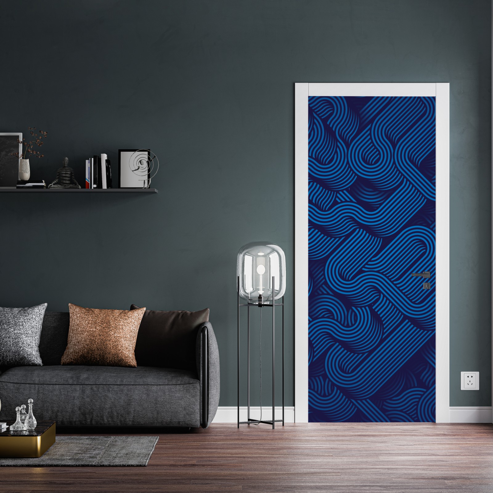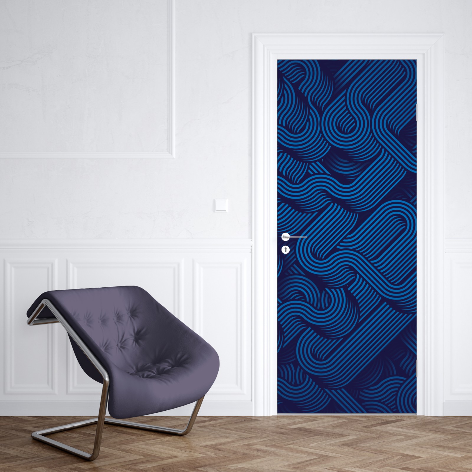 Türaufkleber tiefblaues abstraktes linienmuster