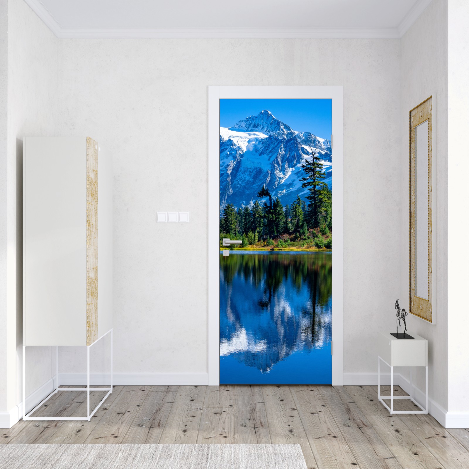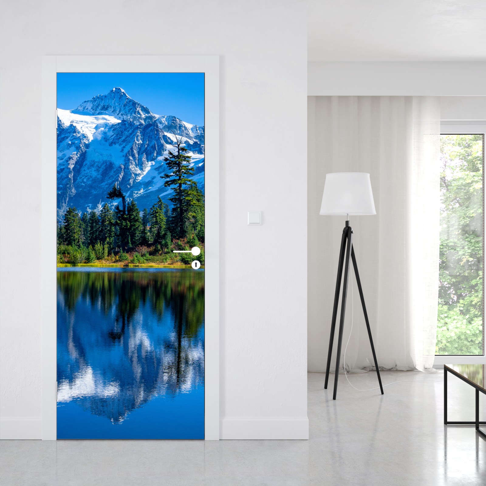 Türaufkleber majestätische bergspiegelung über dem see