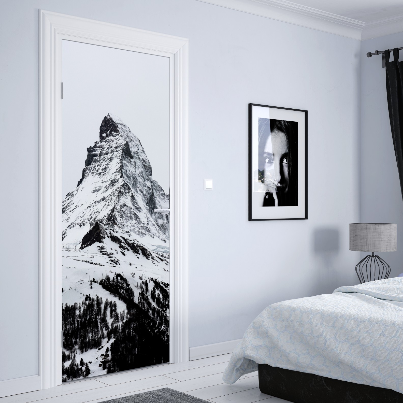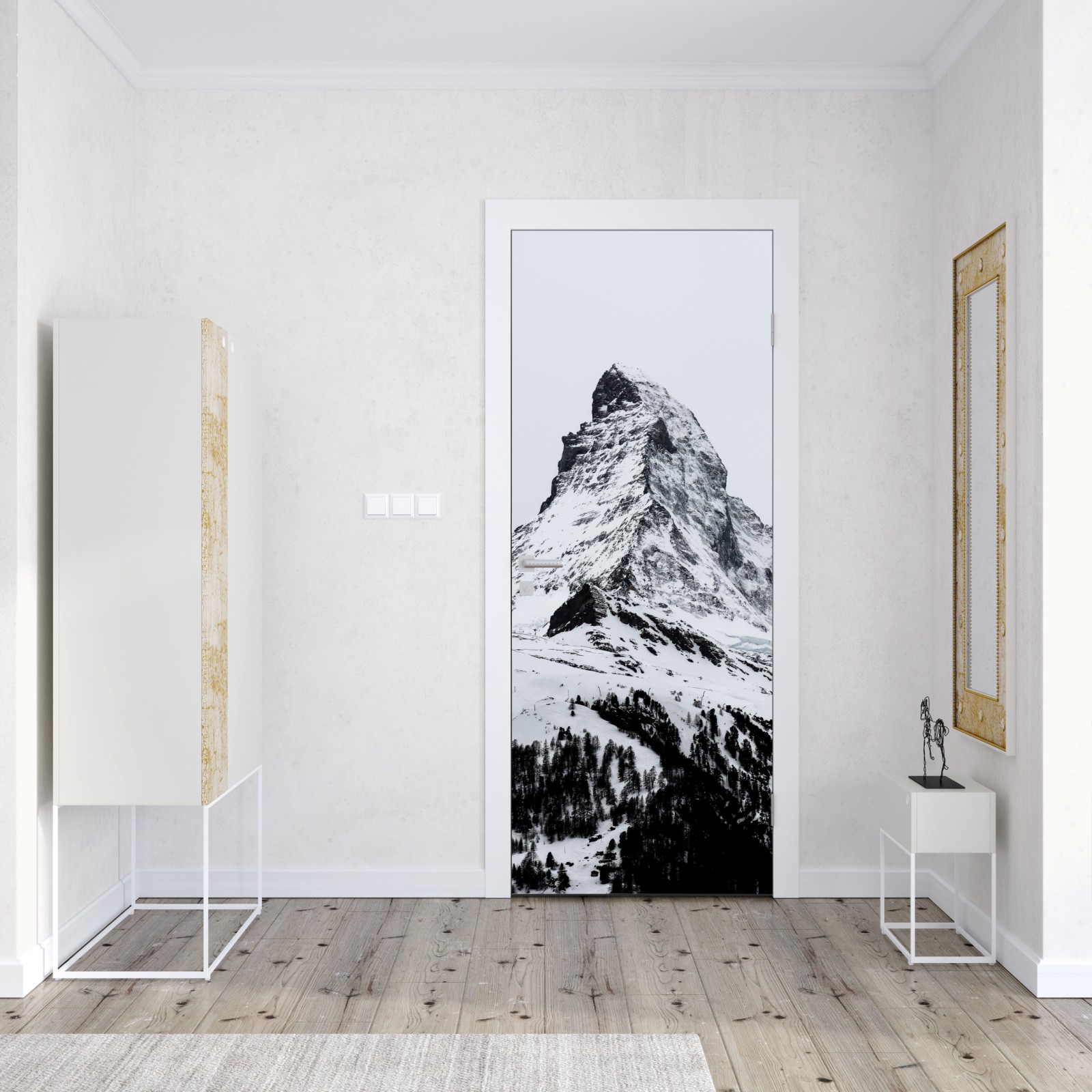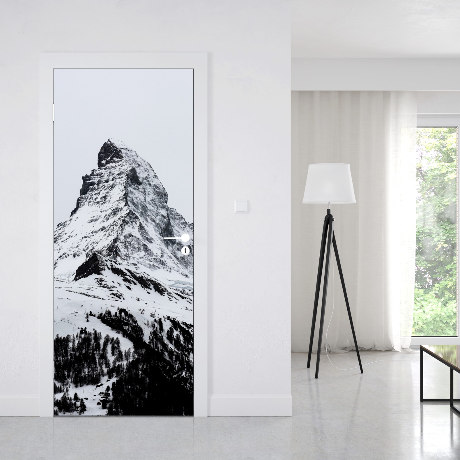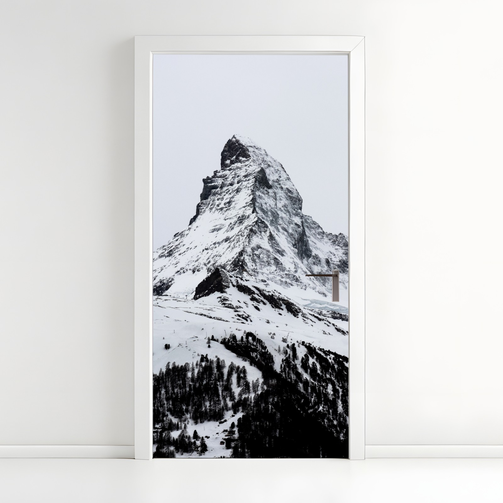 Türaufkleber einsamer schneebedeckter berggipfel