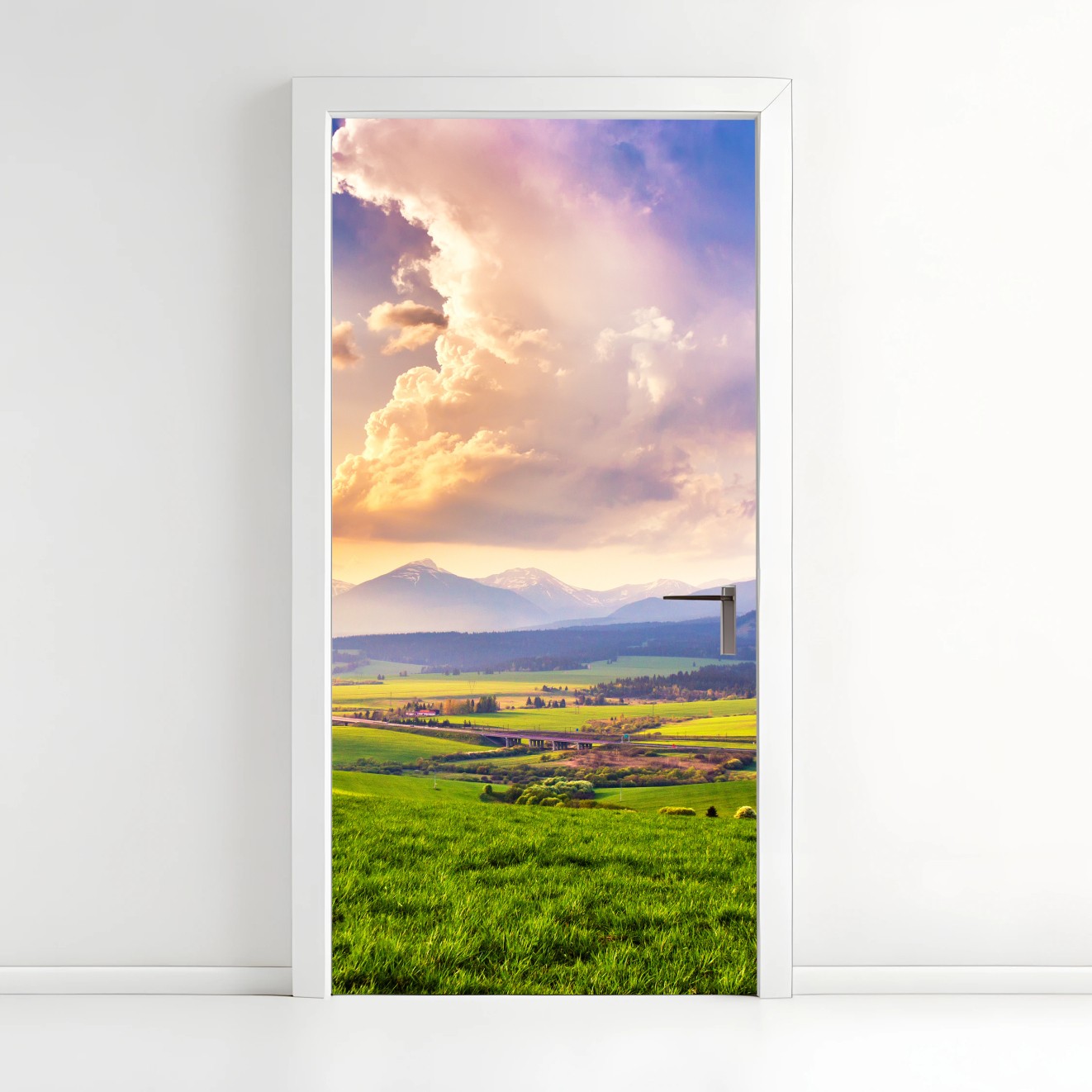 Türaufkleber Frühlingshafte panoramalandschaft der Tatra, Slowakei