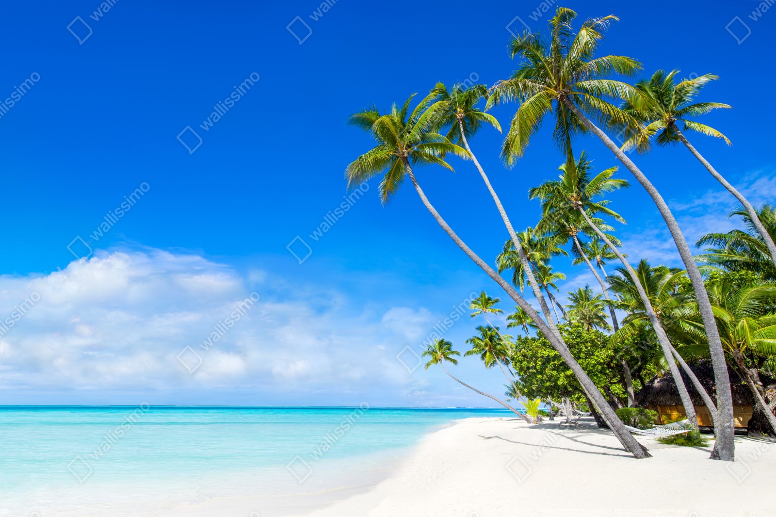 Bringen Sie die beruhigende Atmosphäre eines tropischen Strandes in Ihr Zuhause mit türkisfarbenem Wasser, wiegenden Palmen und makellosem weißem Sand.