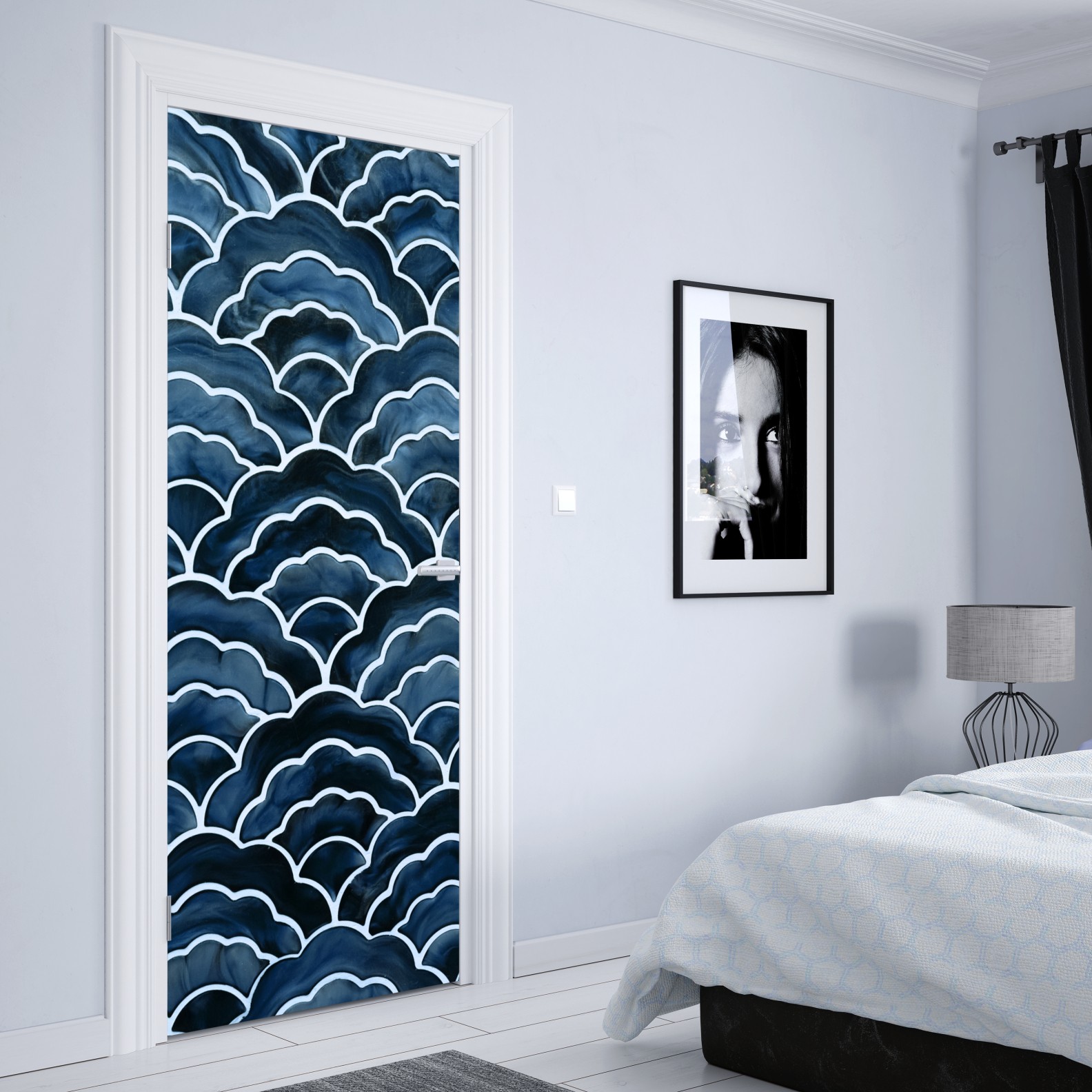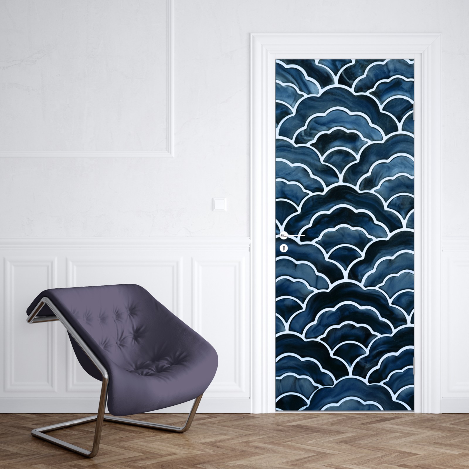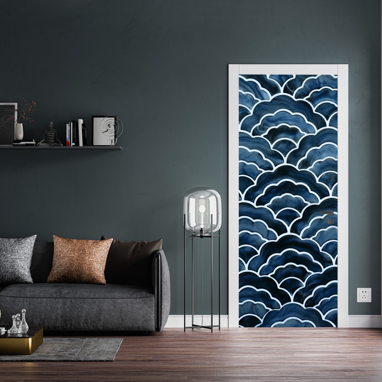 Türaufkleber japanisches blaues seigaiha-wellenmuster