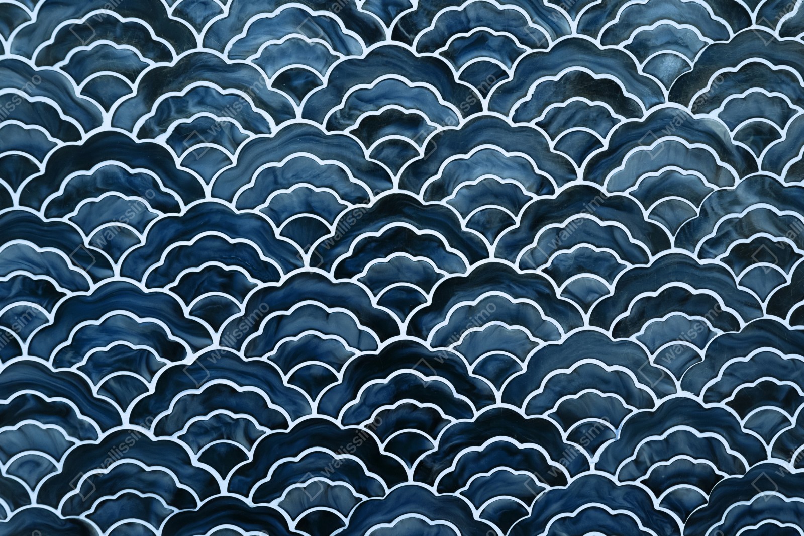 Elegantes japanisches seigaiha-Wellenmuster in tiefen indigotönen, perfekt, um jedem interieur eine ruhige, kulturelle note zu verleihen.