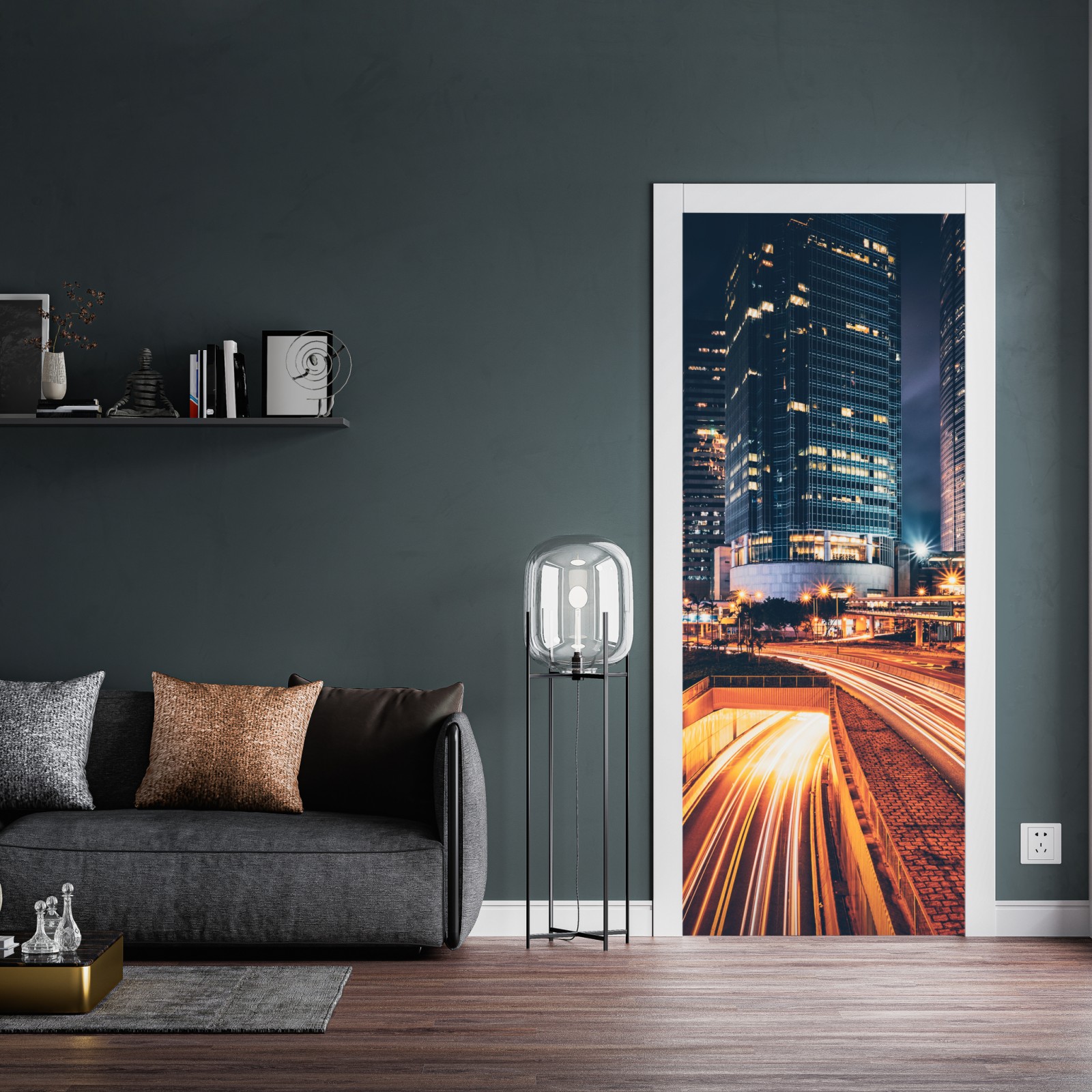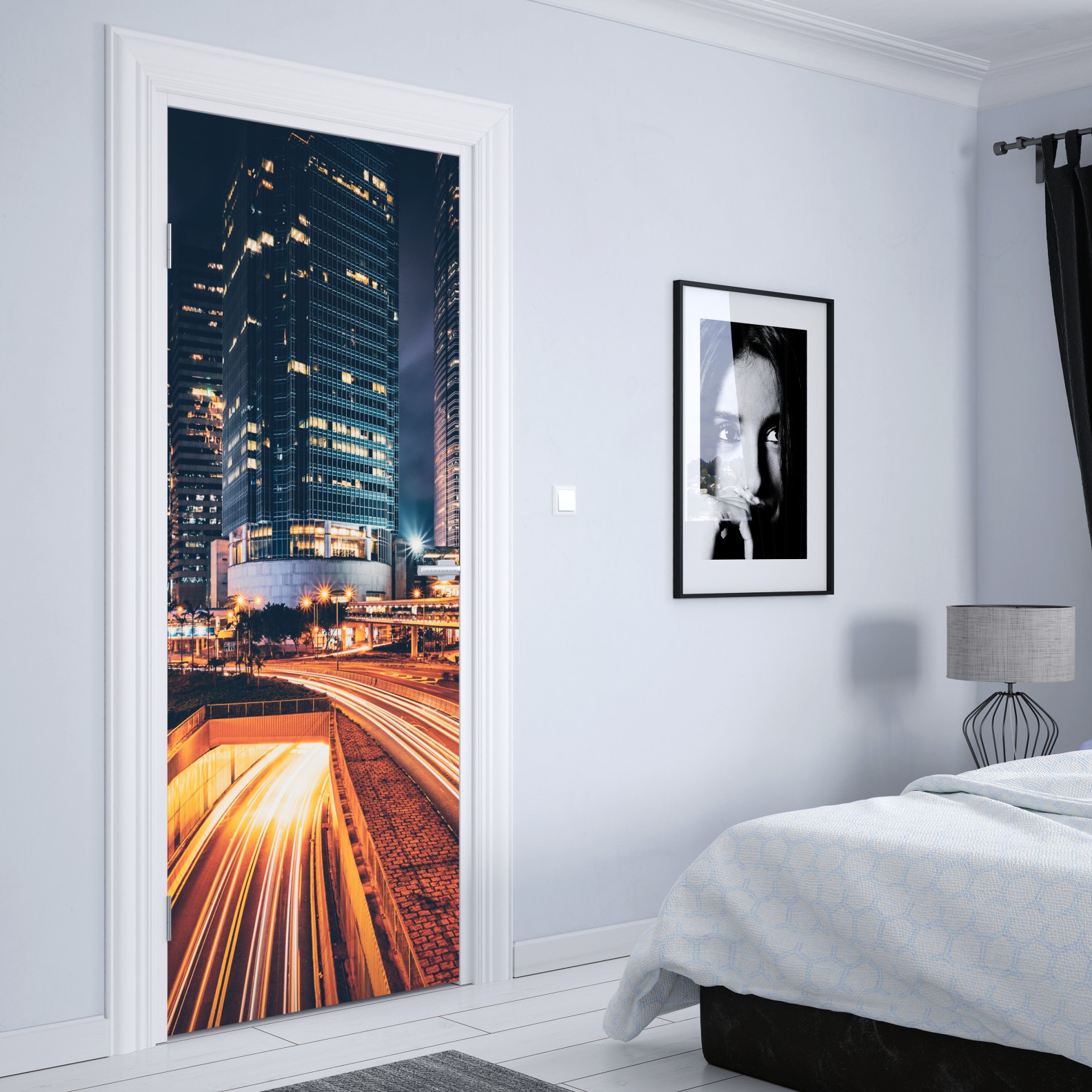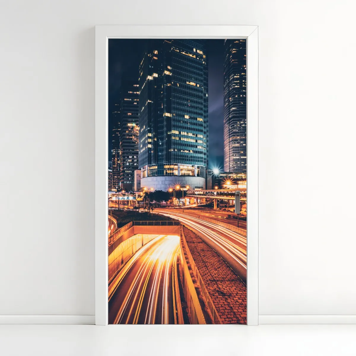 Türaufkleber nächtliche lichtspuren über der stadtautobahn