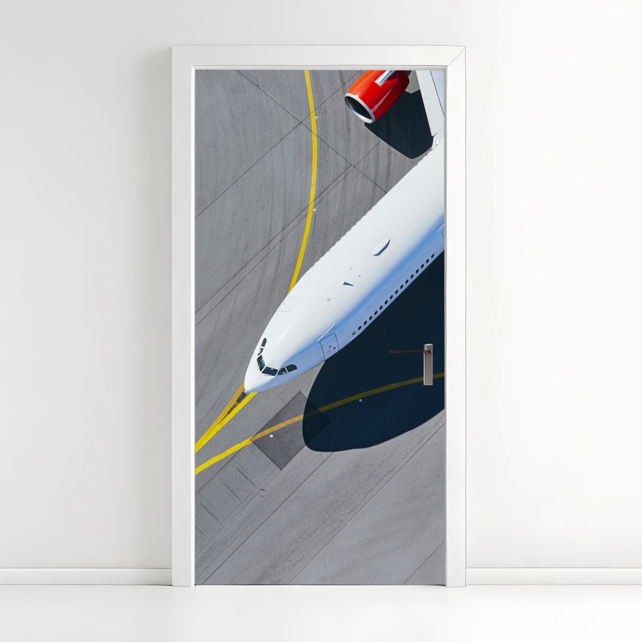 Türaufkleber Luftaufnahme eines flugzeugs auf dem rollfeld