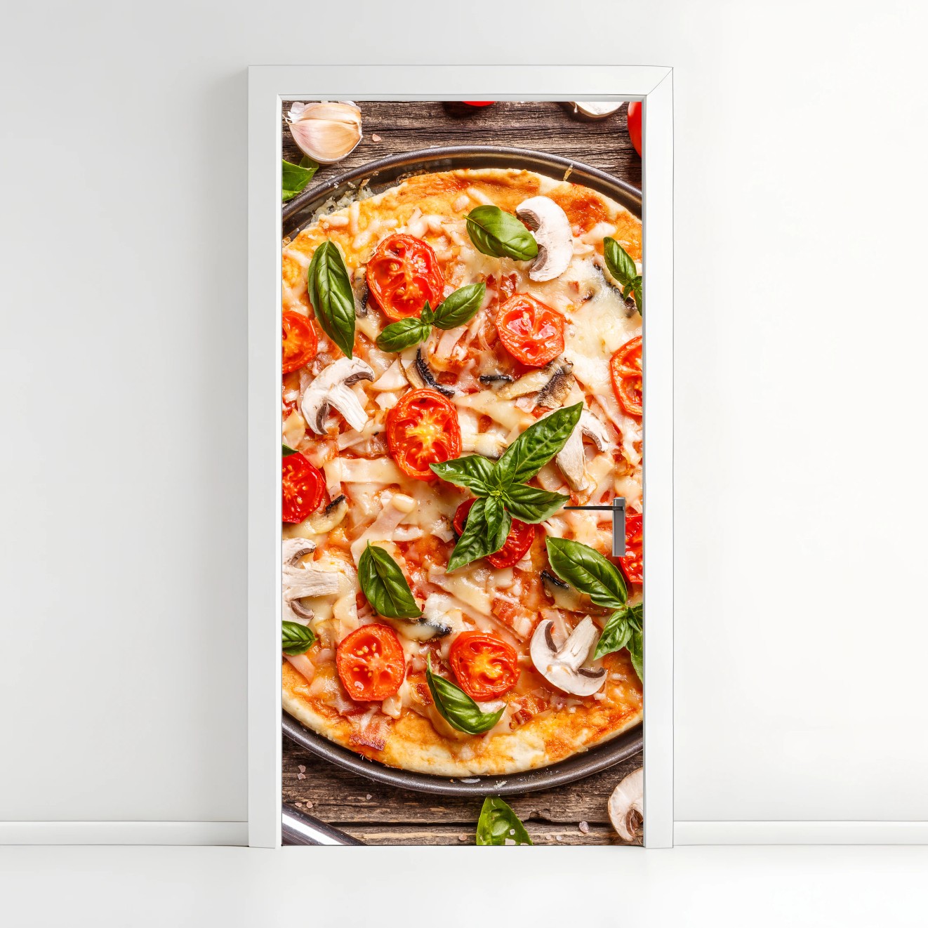 Türaufkleber Frische pizza mit basilikum und cherrytomaten