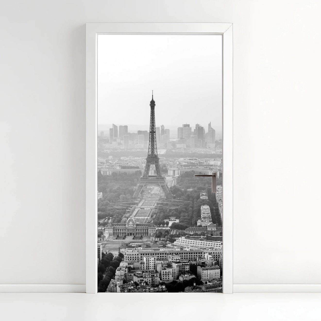 Türaufkleber Elegante Eiffelturm luftaufnahme in graustufen