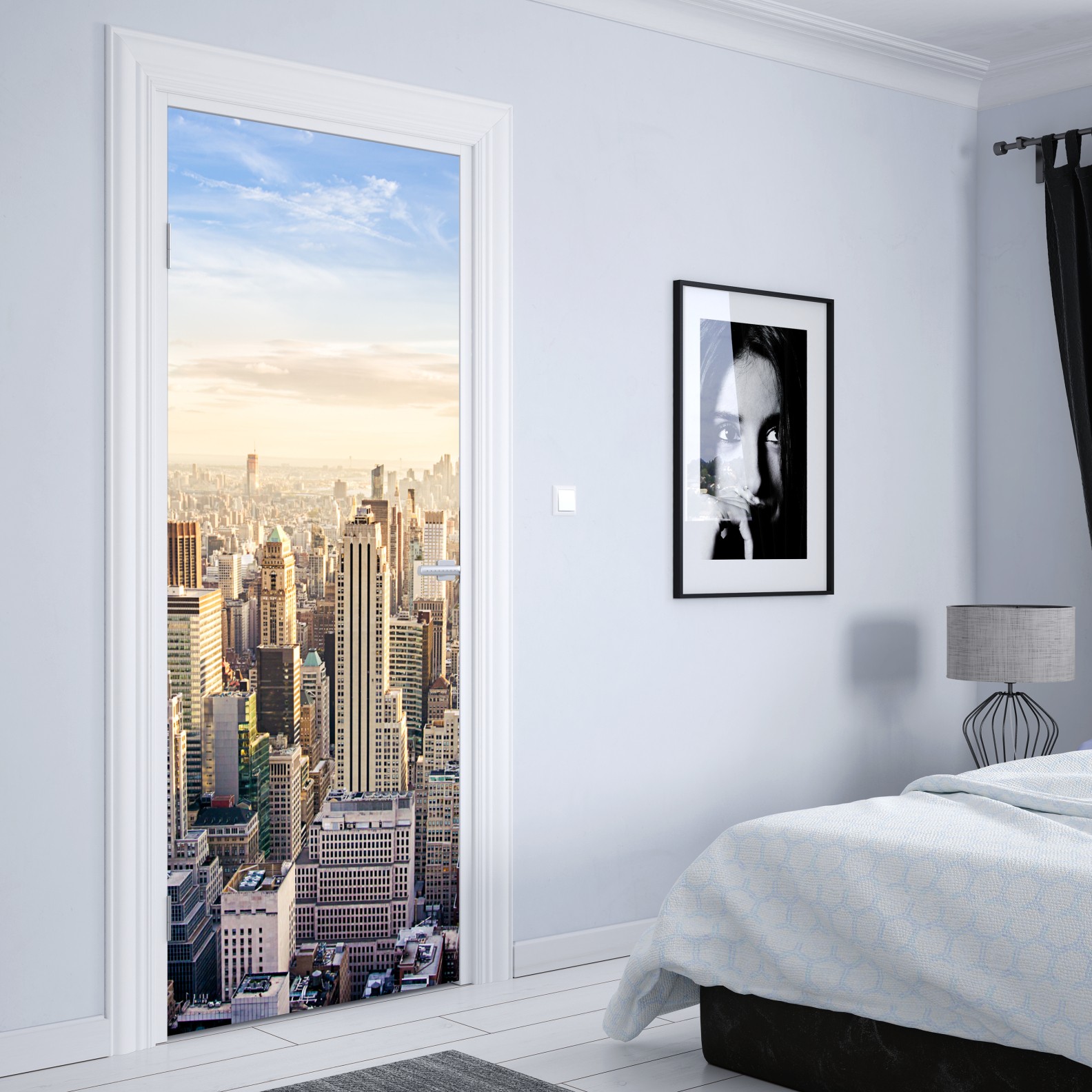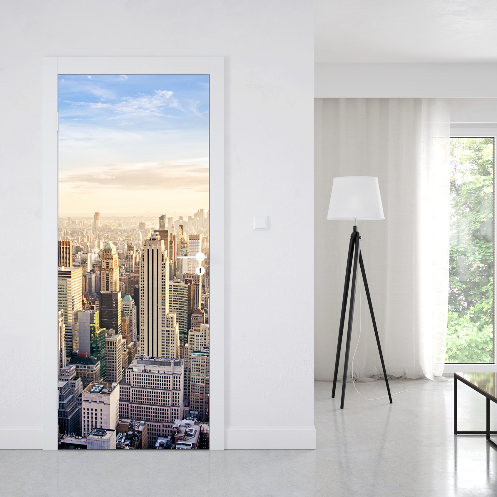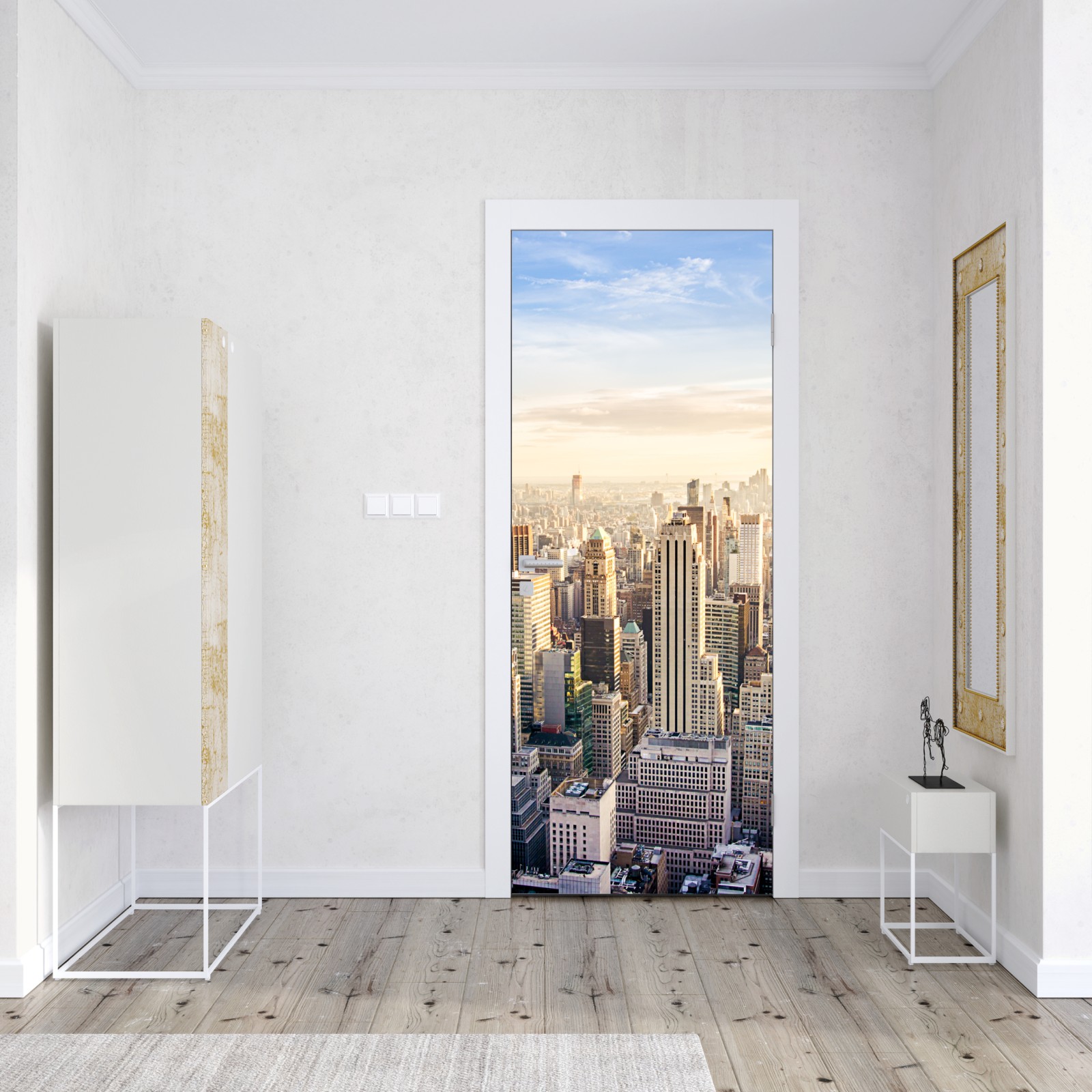 Beeindruckende Ansicht der New York Skyline im warmen Morgenlicht, perfekt um urbanes Flair in Ihren Raum zu bringen.