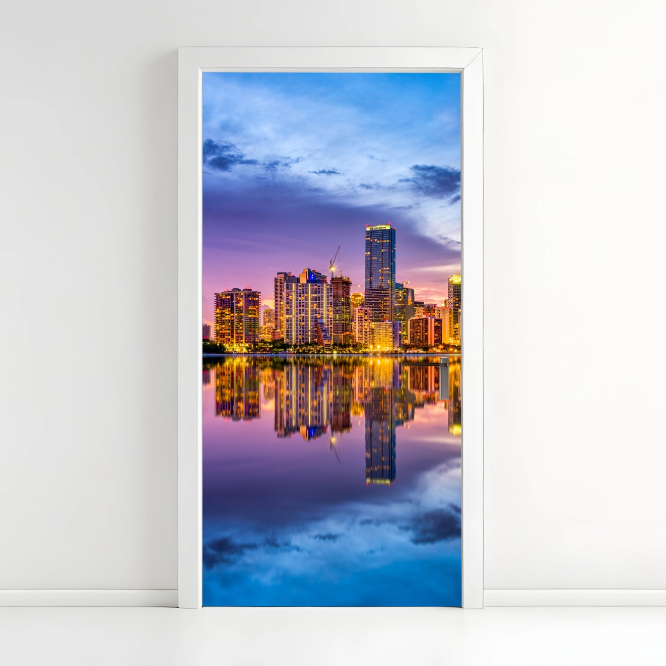 Türaufkleber Miami skyline gespiegelt in Biscayne Bay