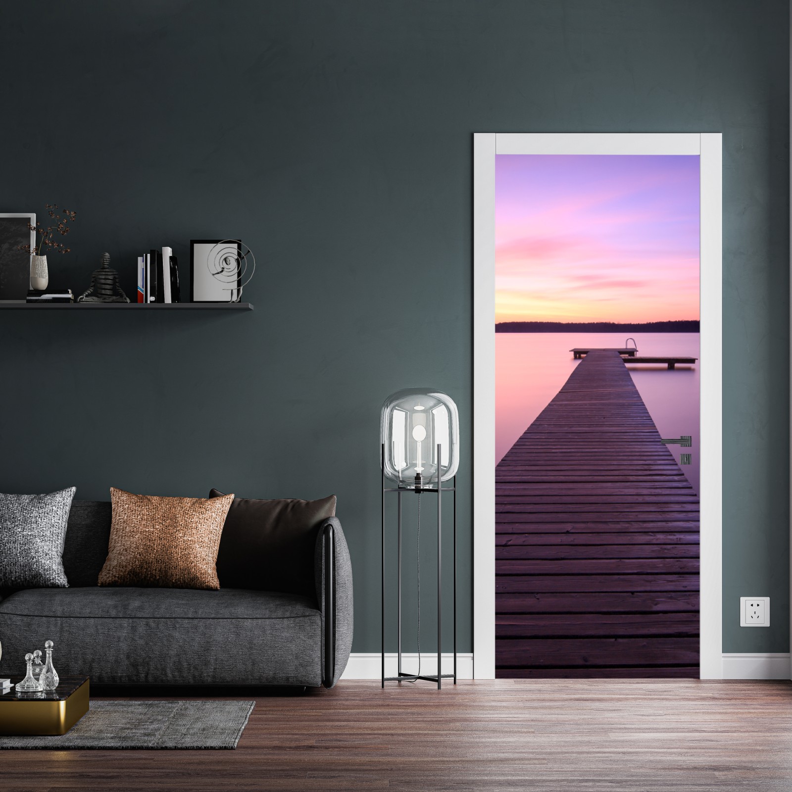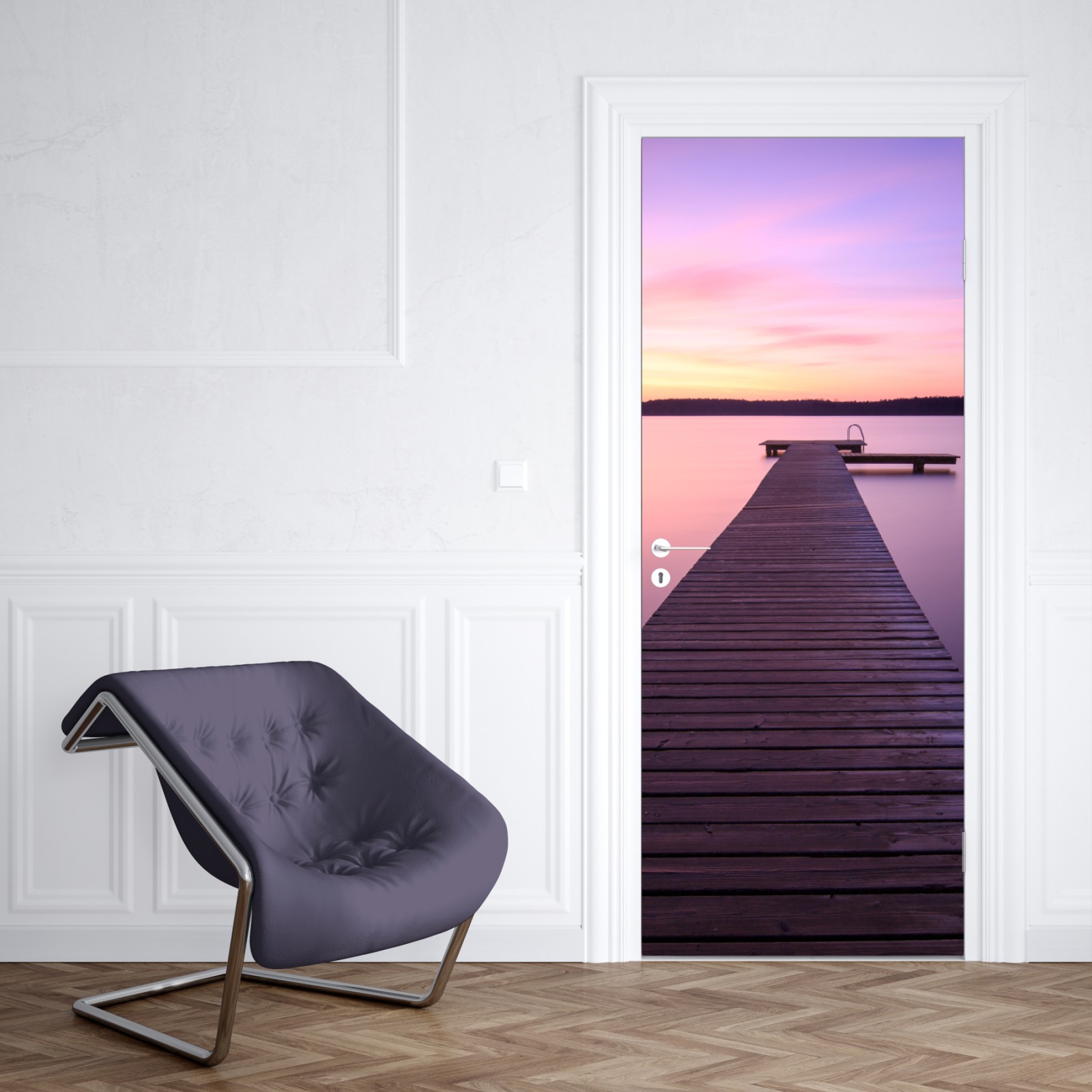 Türaufkleber ruhiger pastellsonnenuntergang am see mit steg
