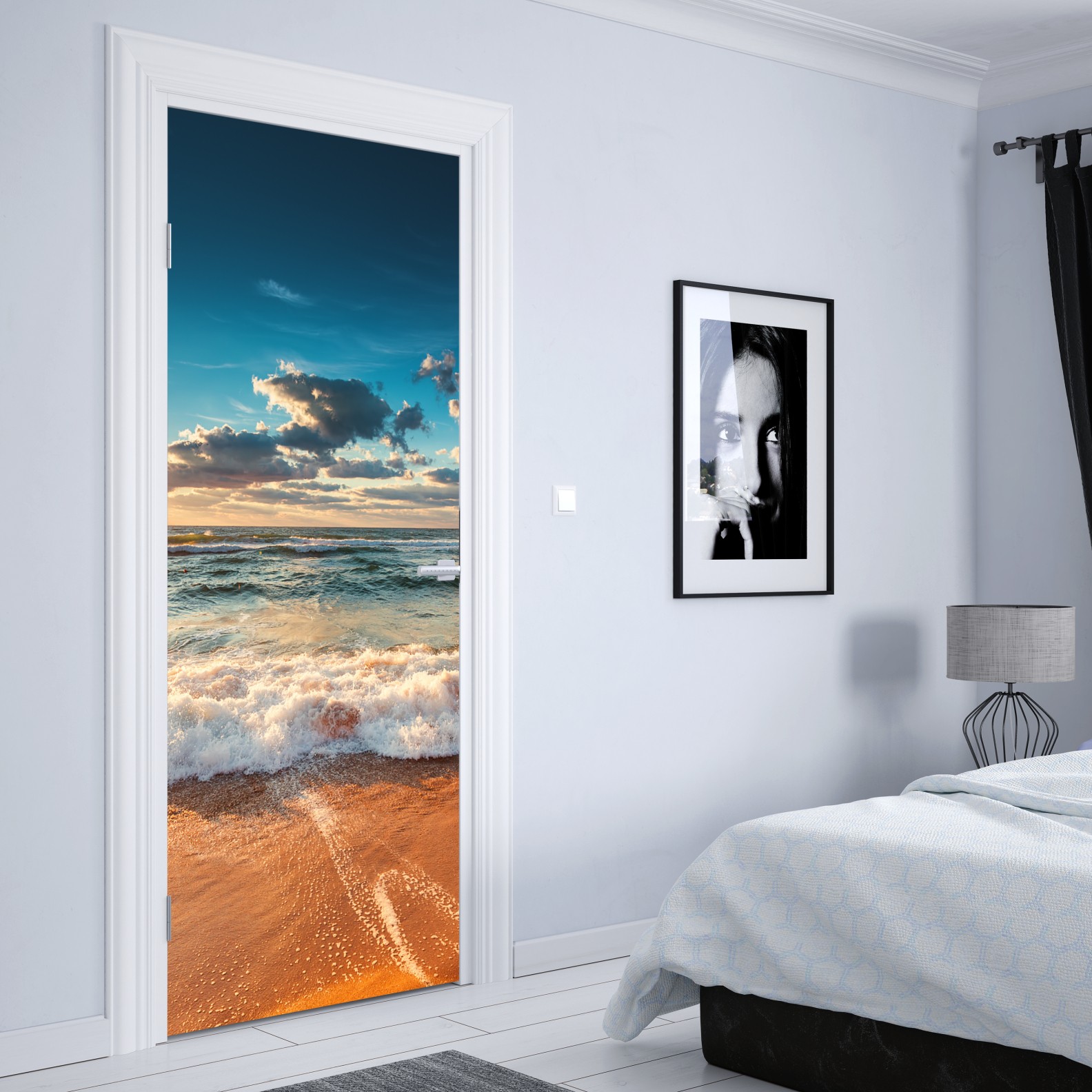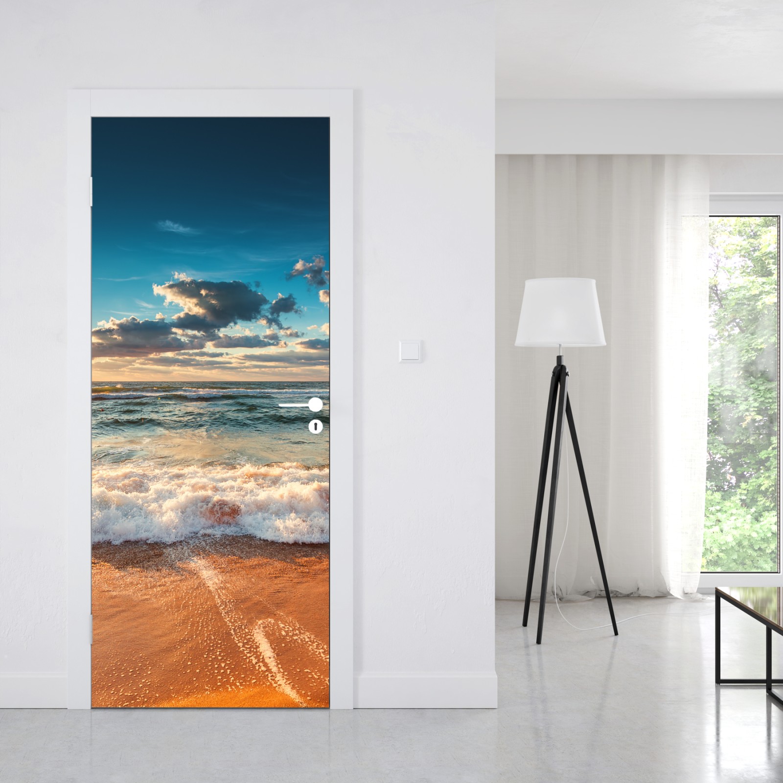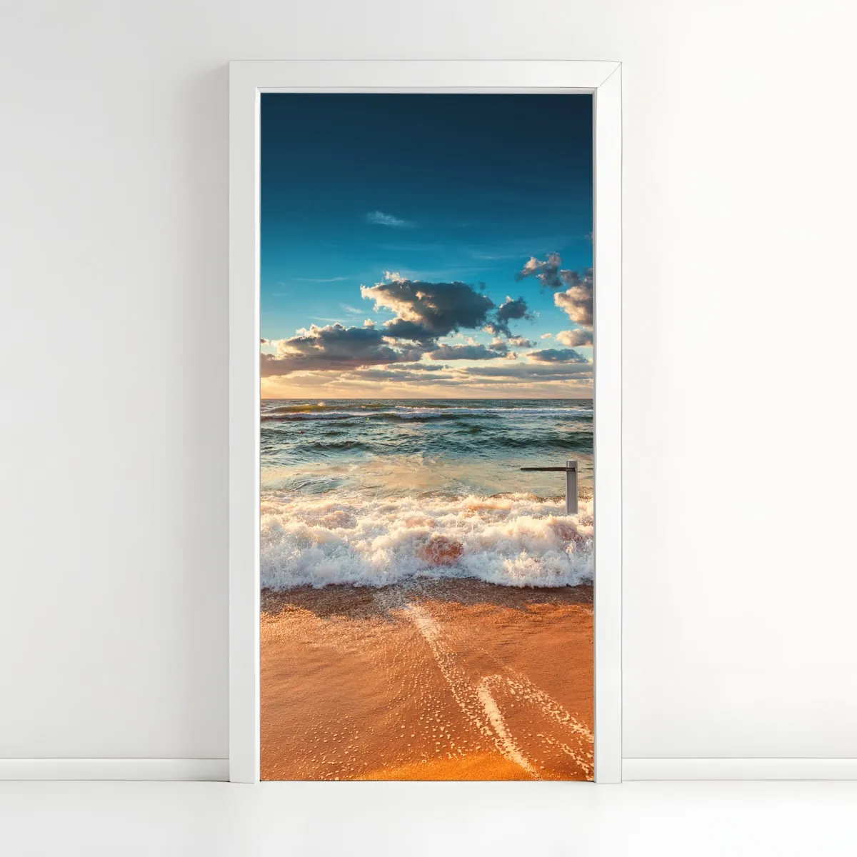 Türaufkleber goldener sonnenaufgang über der meeresküste