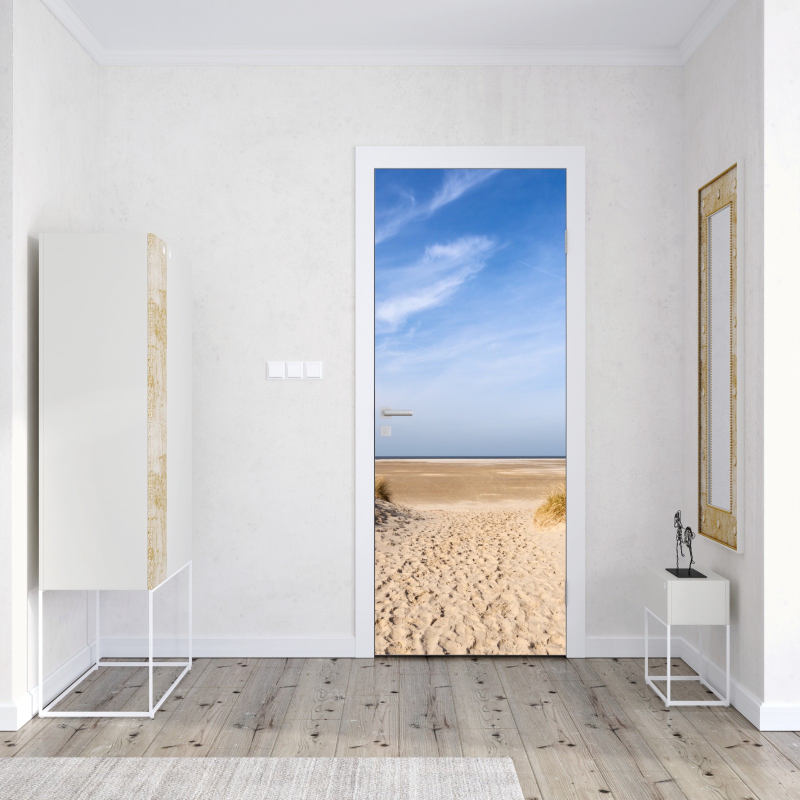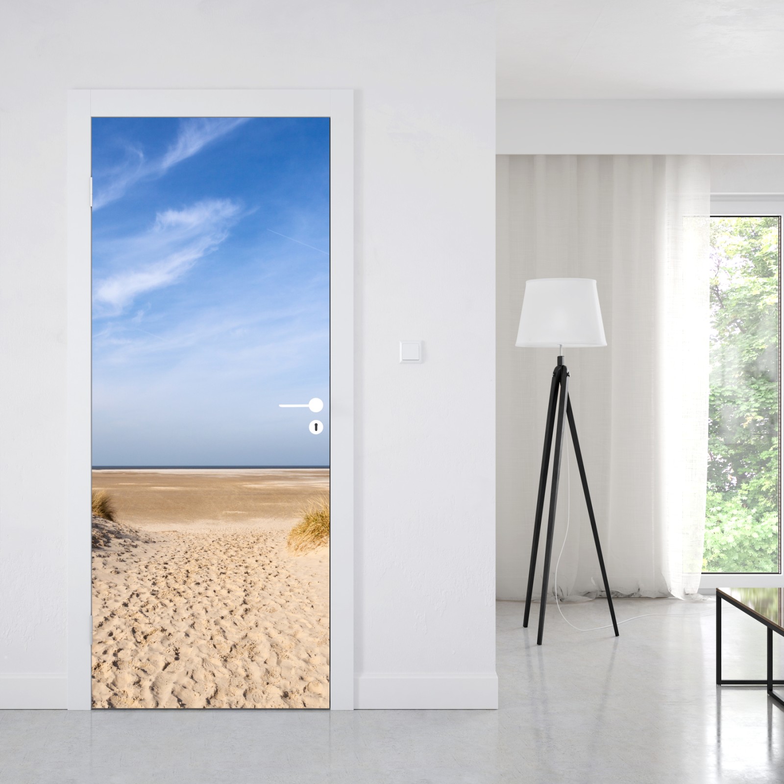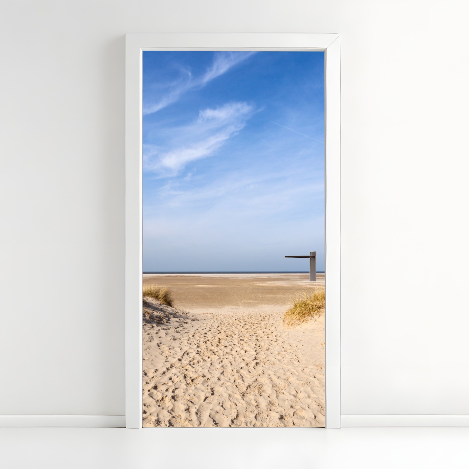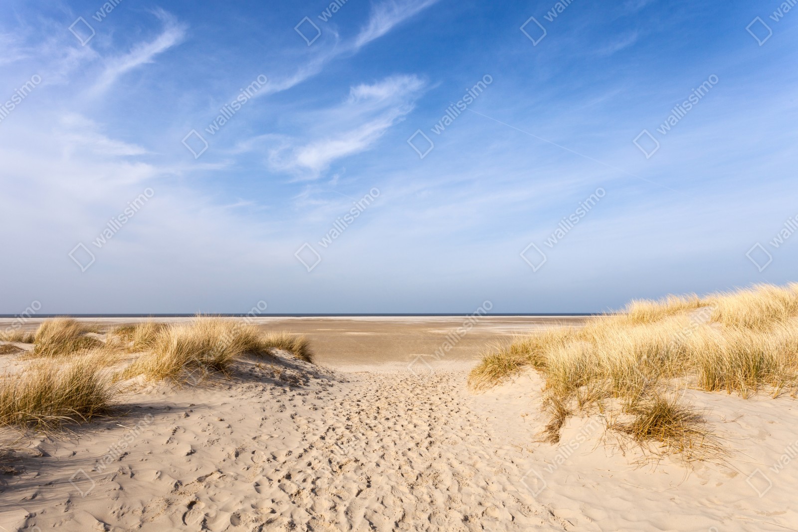 Eine ruhige Küstenszene mit Sanddünen und weitem Himmel, die Ruhe und Weite an Ihre Wände bringt.
