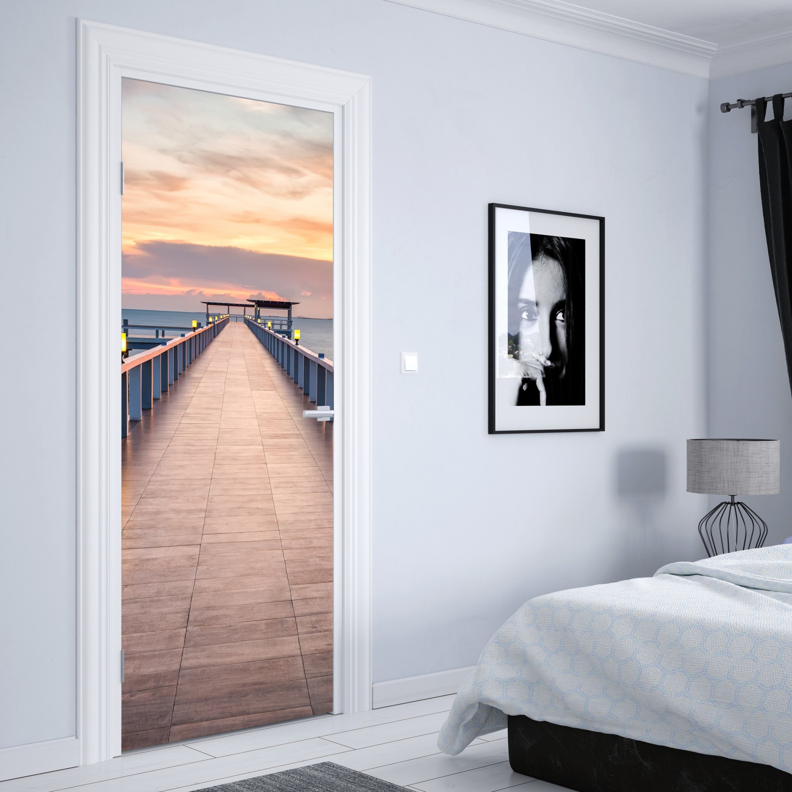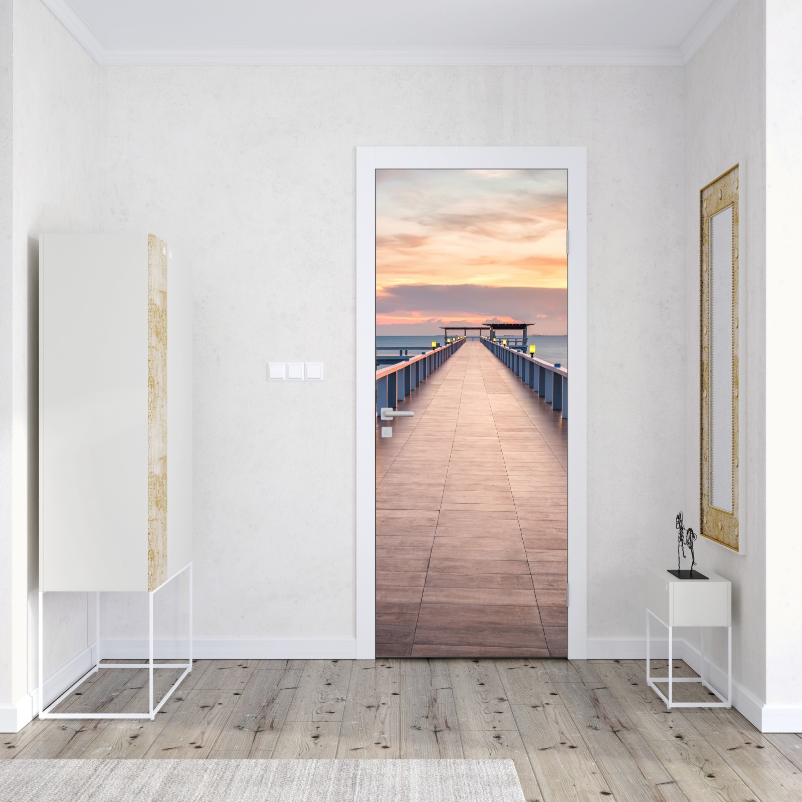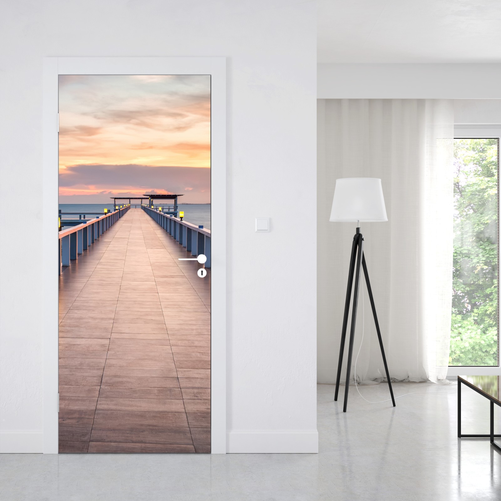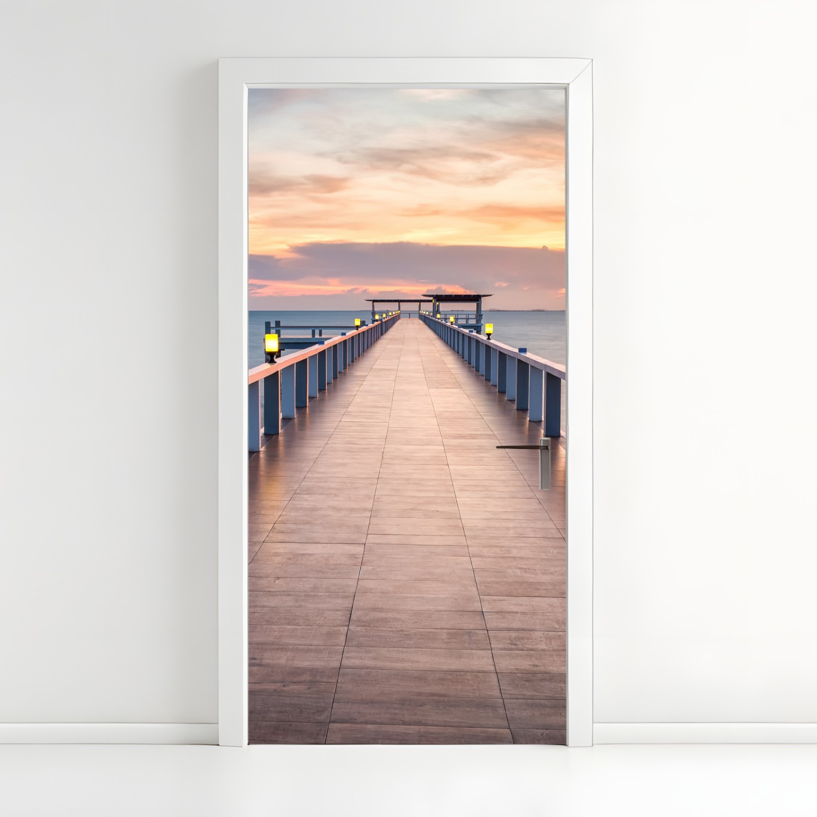 Eine ruhige Seebrücke bei Sonnenuntergang, die sanfte Farben und eine entspannte Atmosphäre in Ihr Zuhause bringt.
