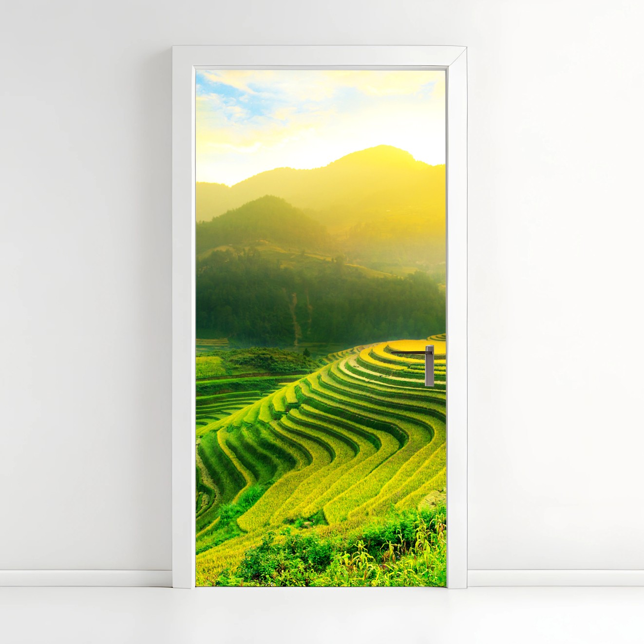 Türaufkleber Goldene reisterrassen im morgenlicht