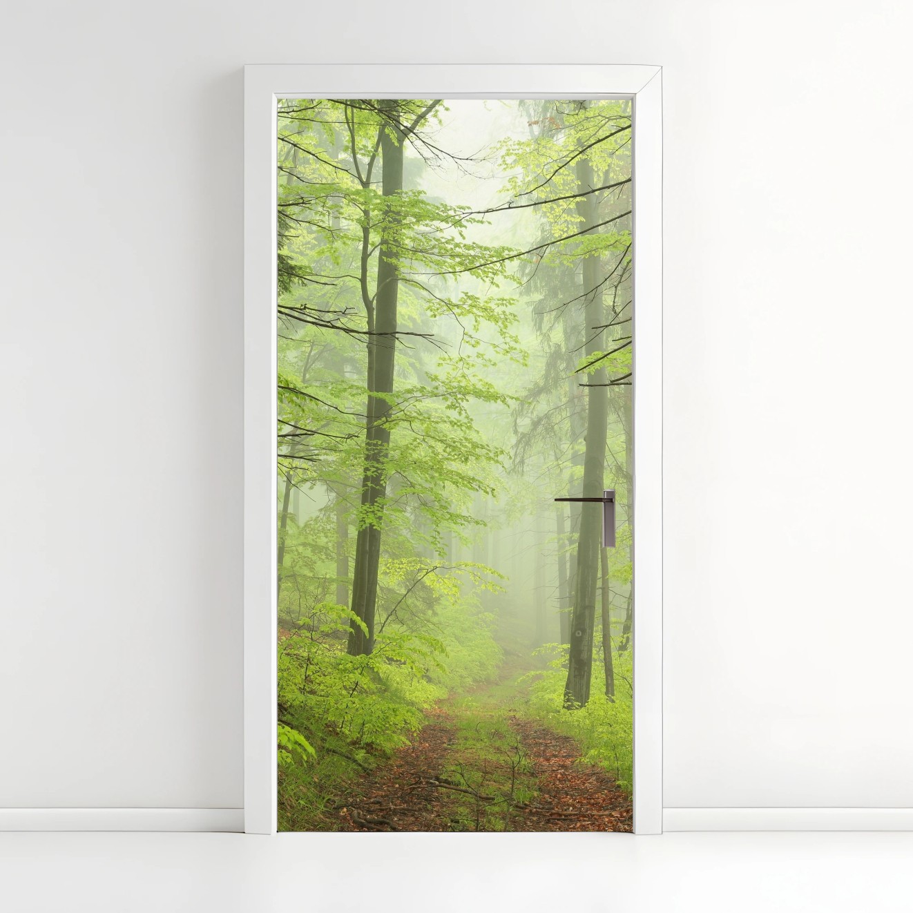 Türaufkleber Nebliger grüner waldpfad