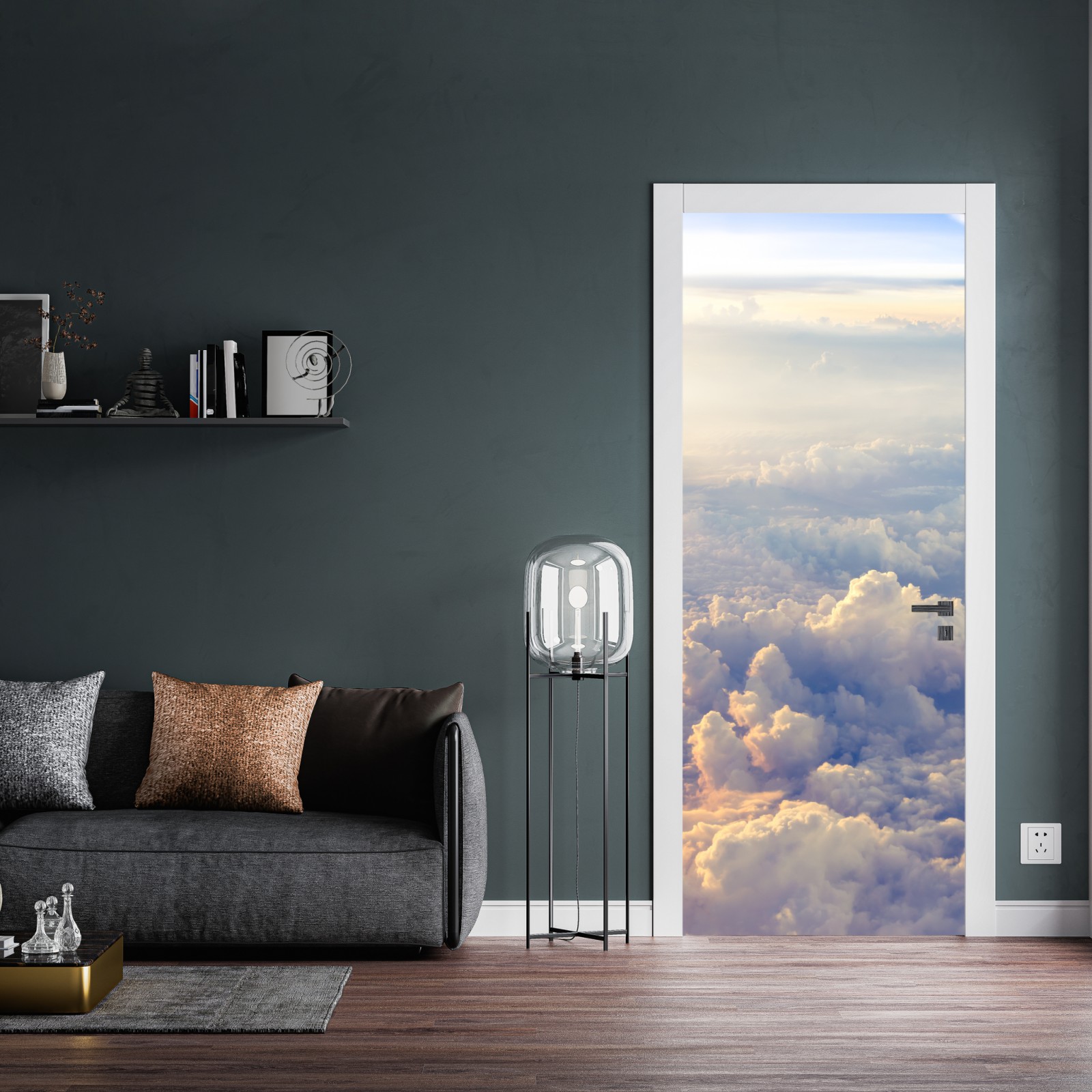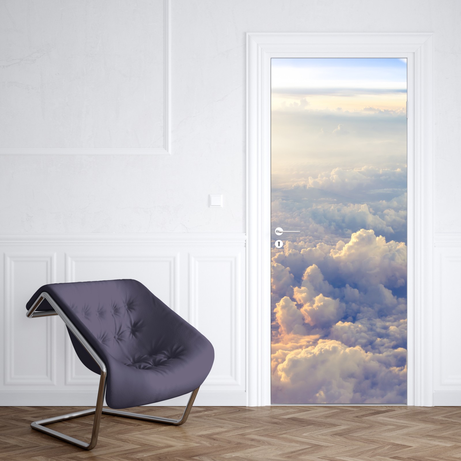 Türaufkleber sonnenbeschienene wolken über dem horizont