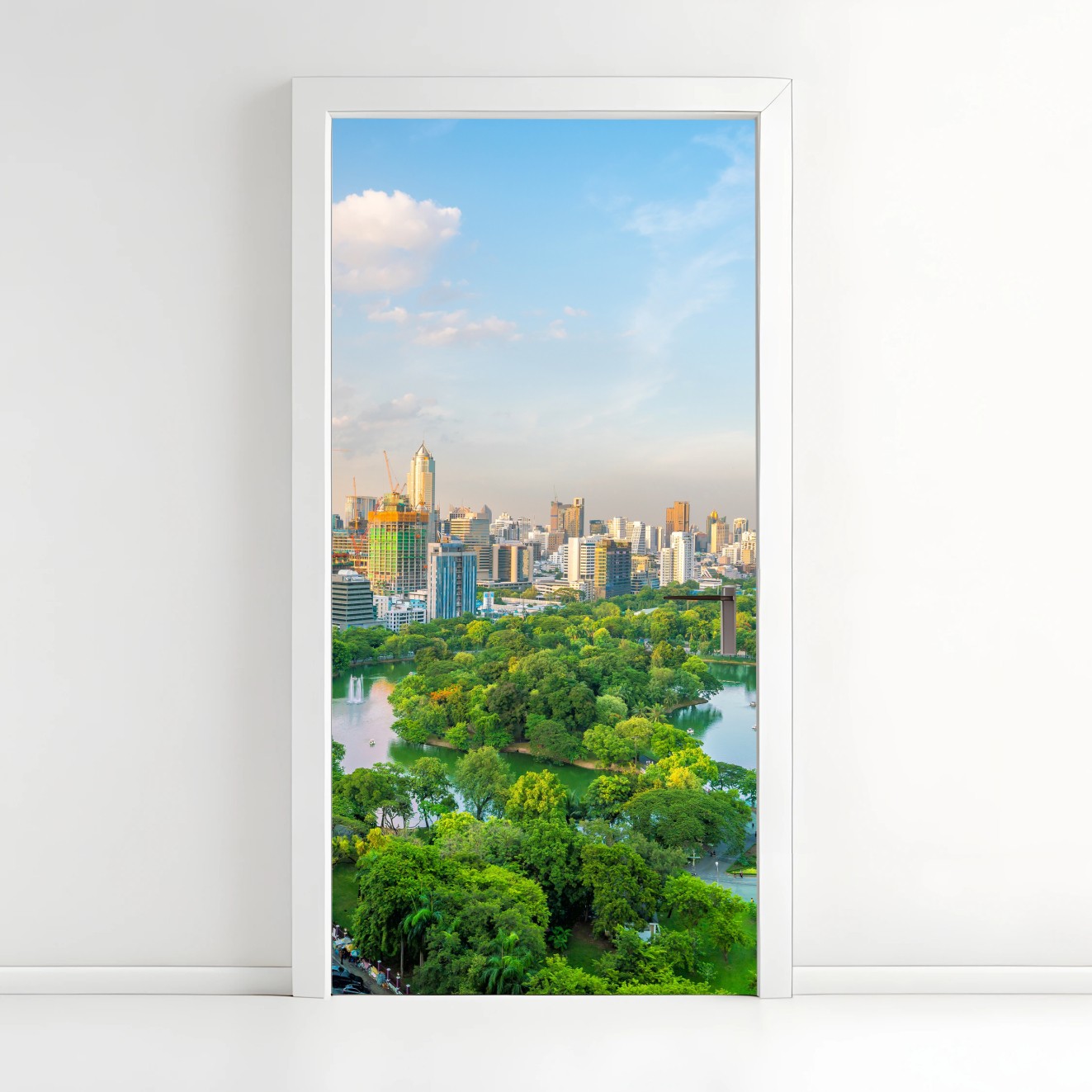 Türaufkleber Bangkok skyline über dem Lumpini Park